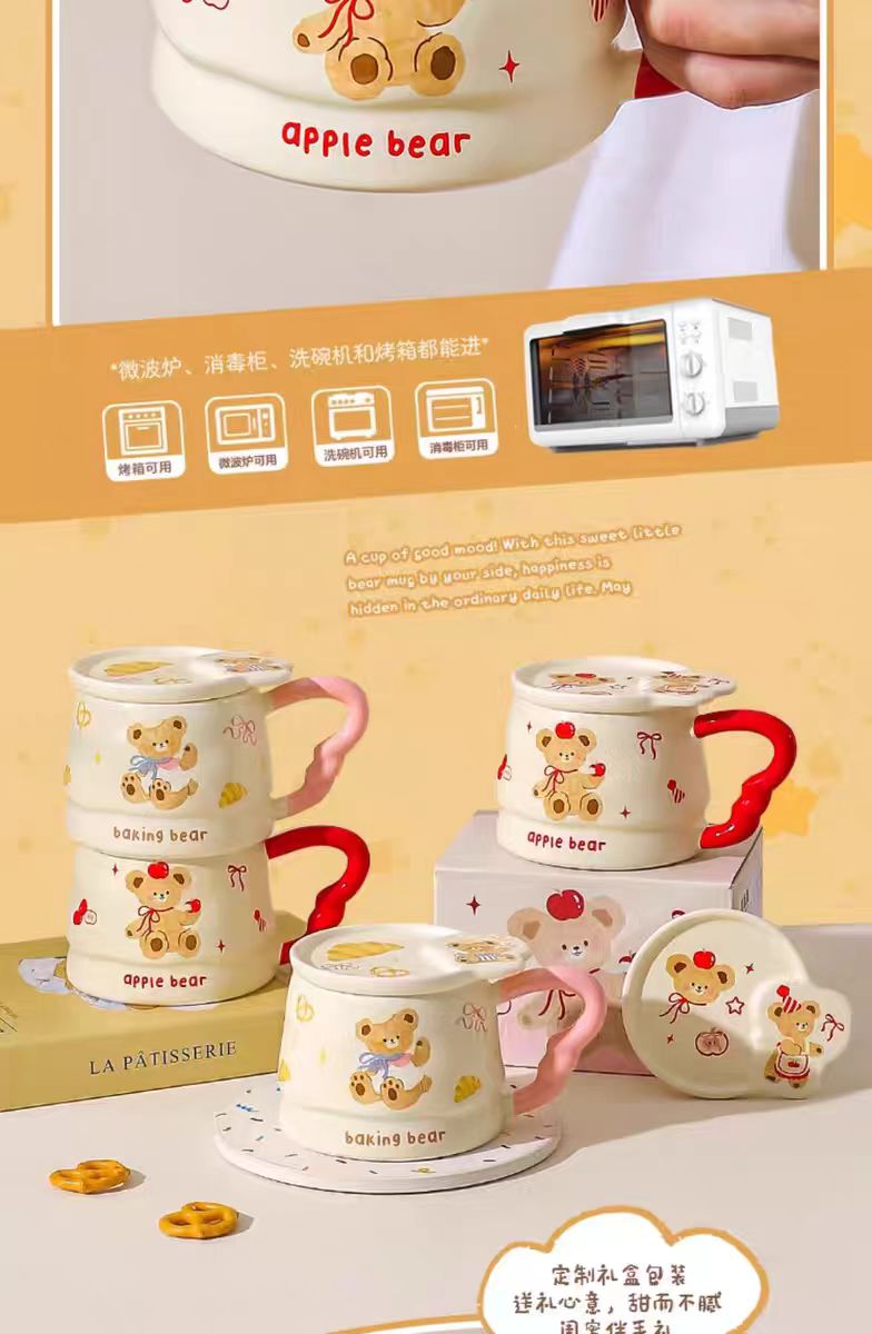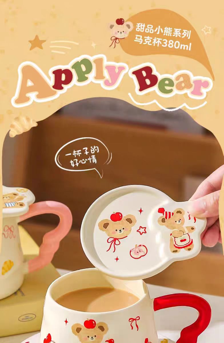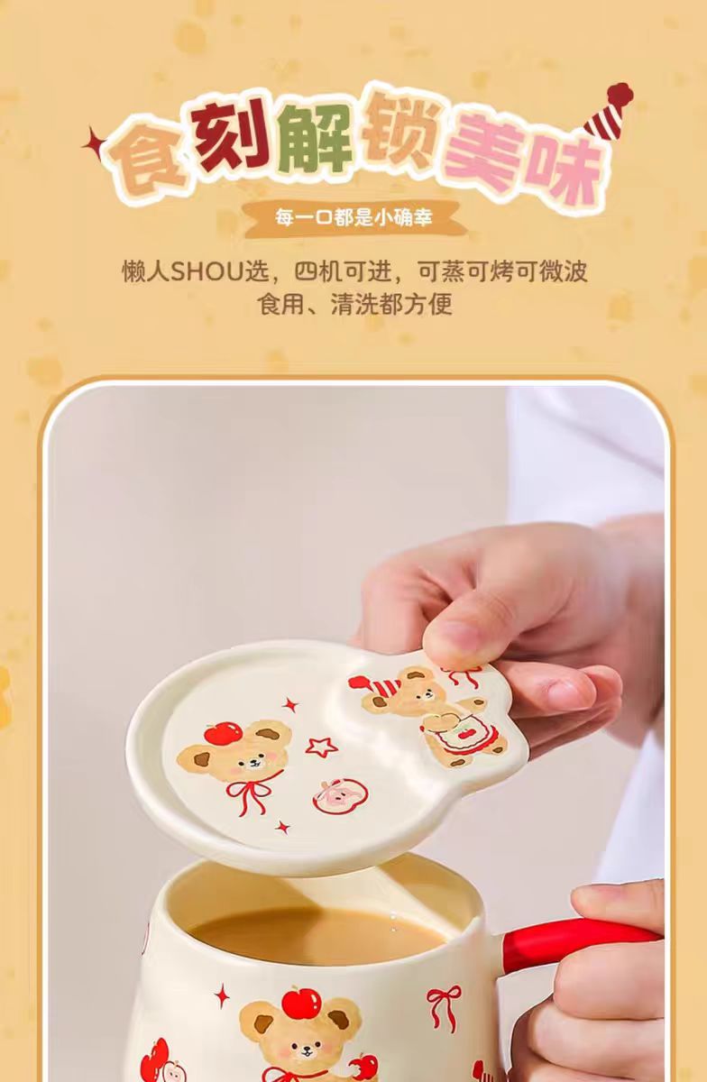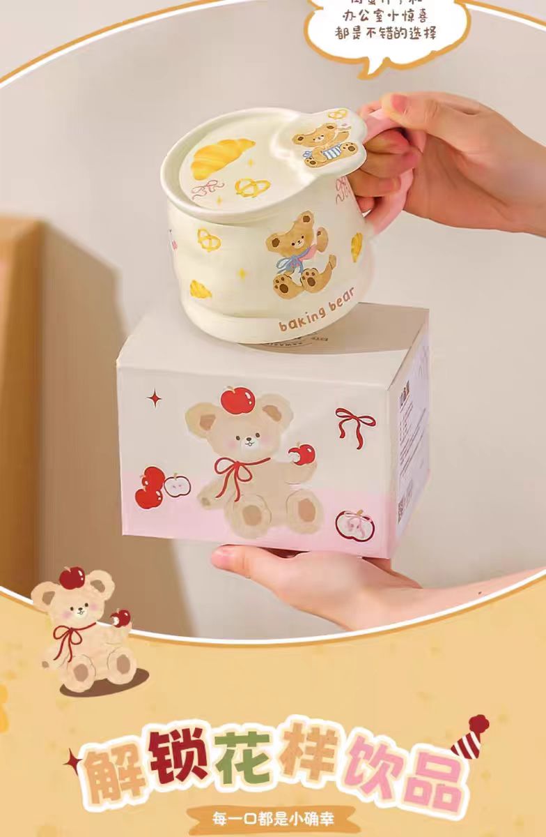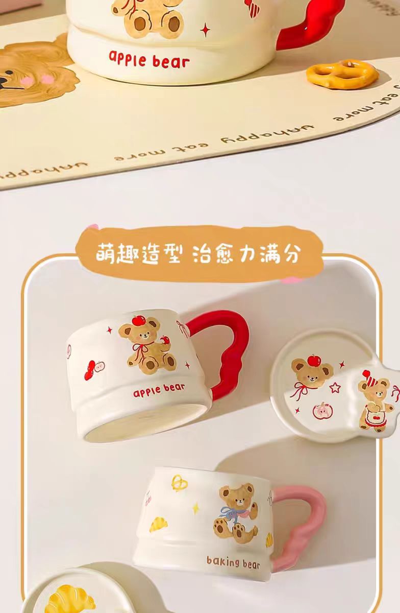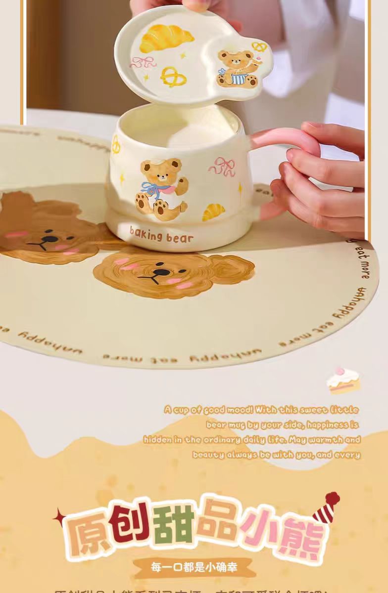 4楼Eubelle欧蓓 川岛屋原创甜品小熊系列马克杯380ml 带盖 办公室咖啡杯 活动价:35.8元
