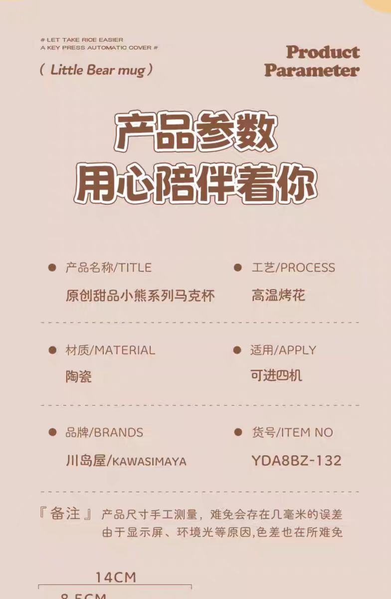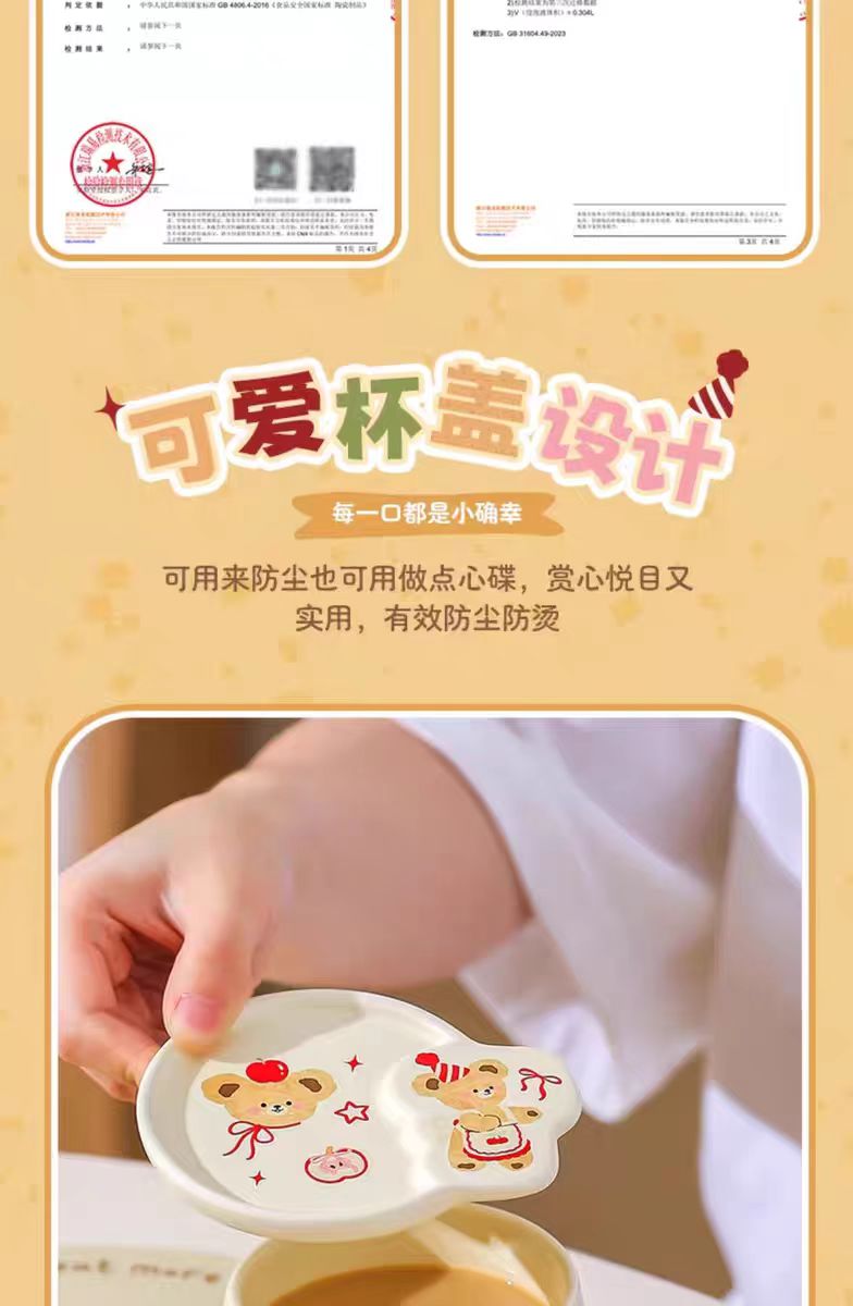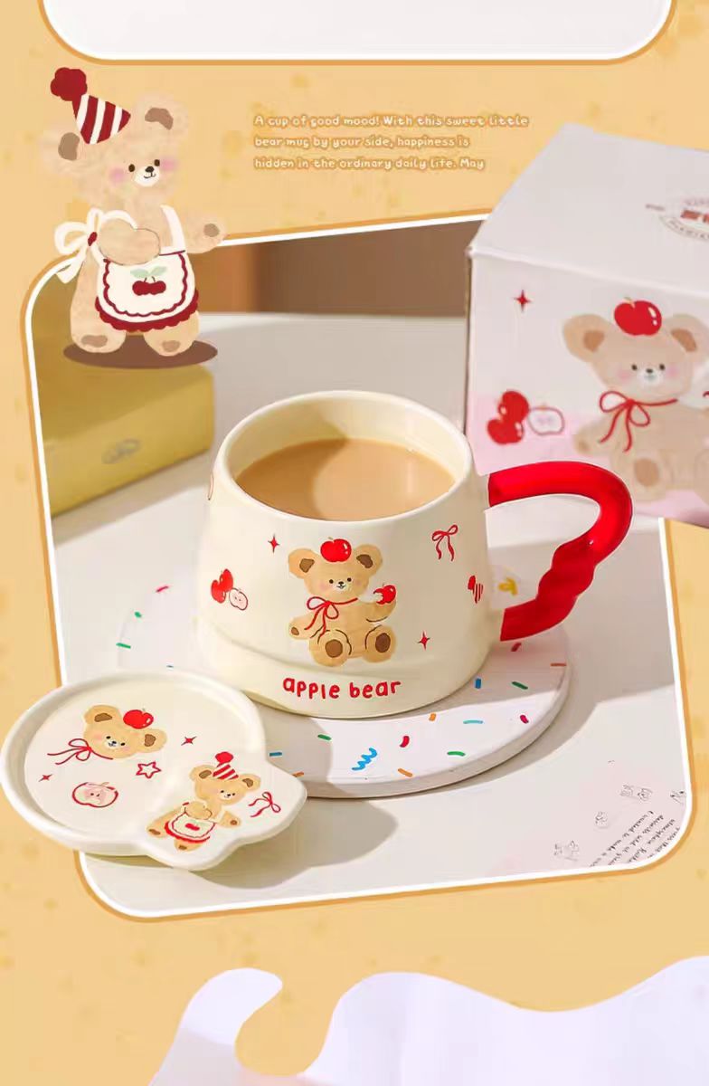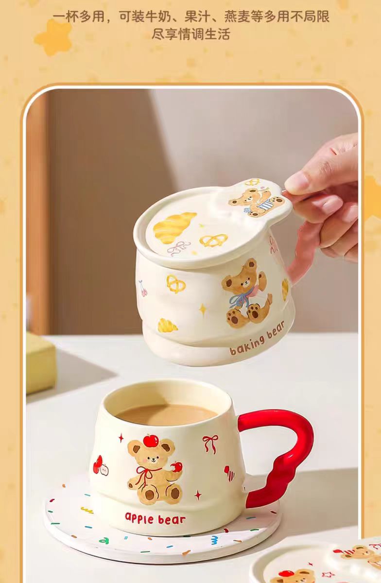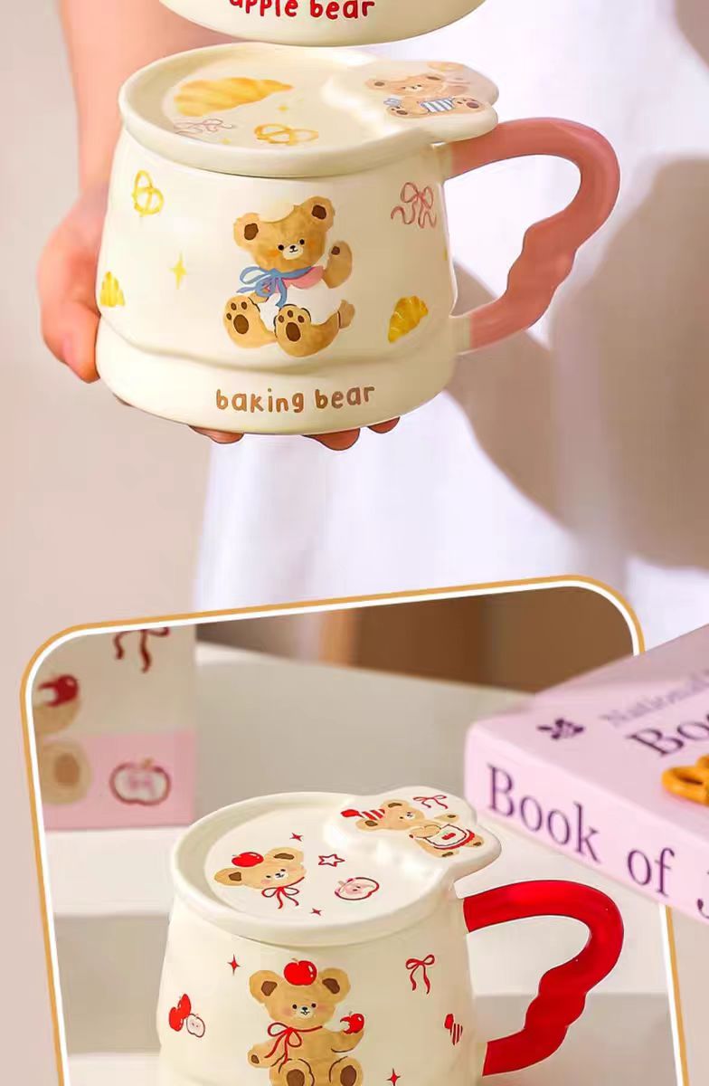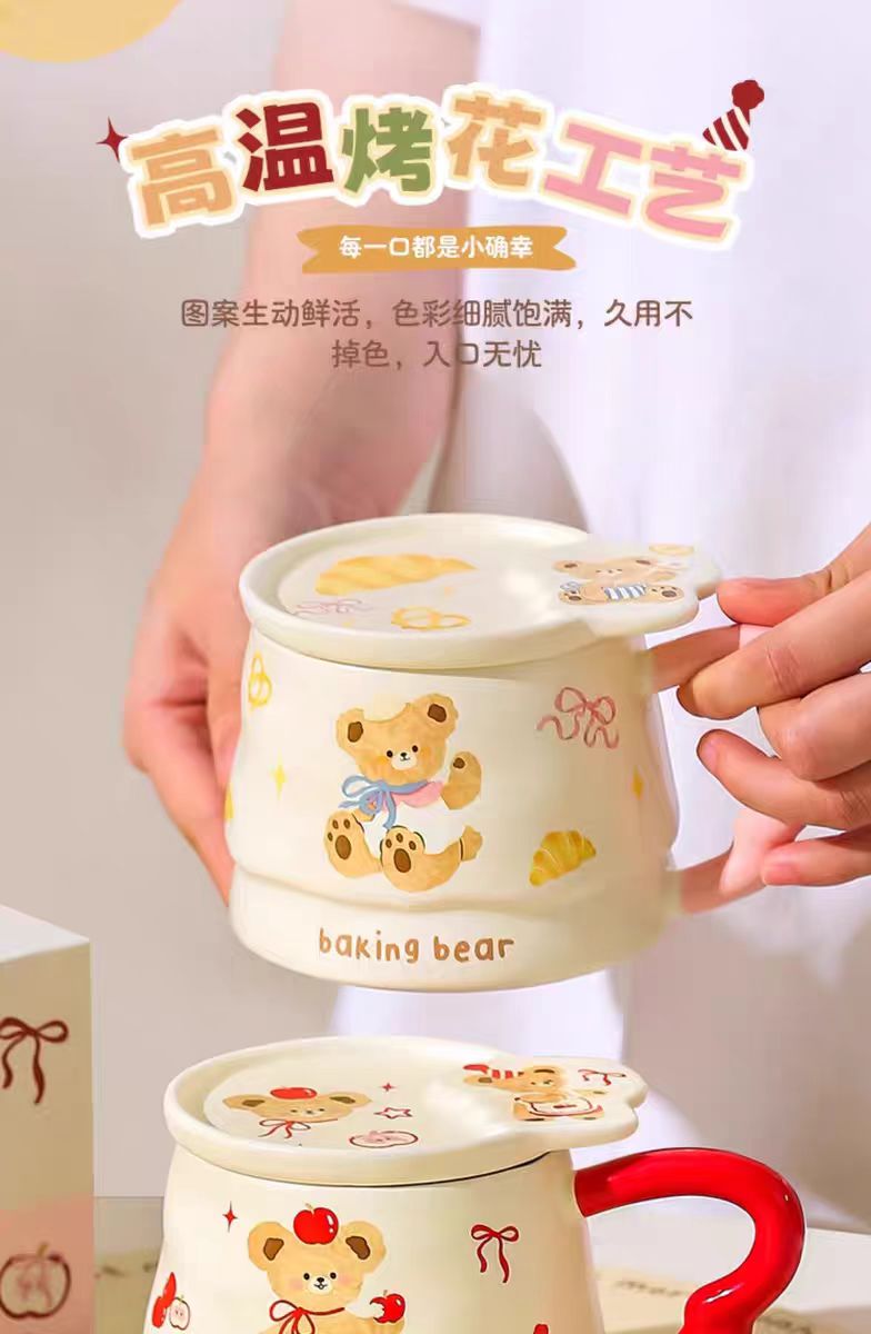 4楼Eubelle欧蓓 川岛屋原创甜品小熊系列马克杯380ml 带盖 办公室咖啡杯 活动价:35.8元