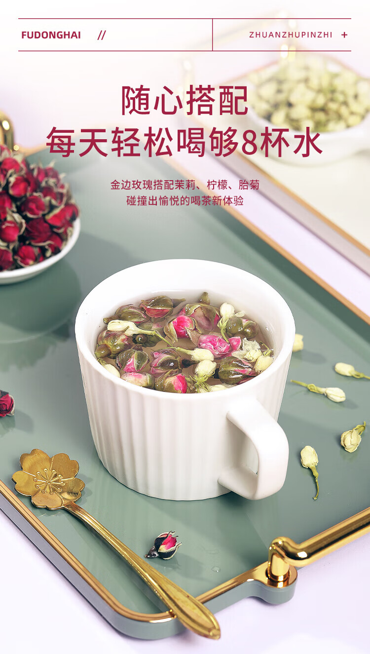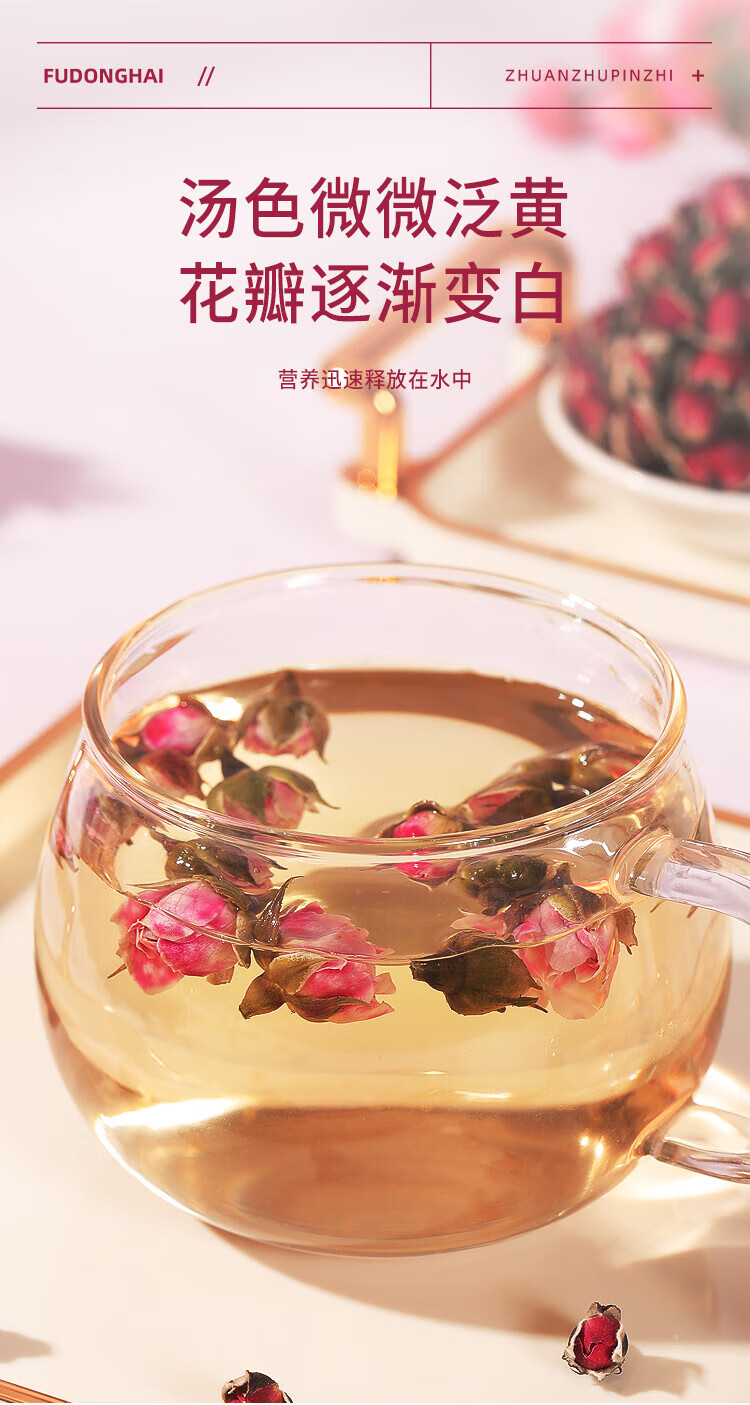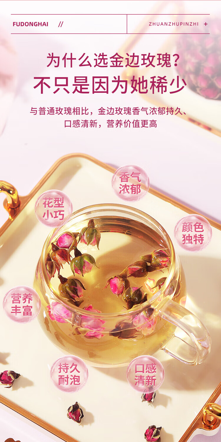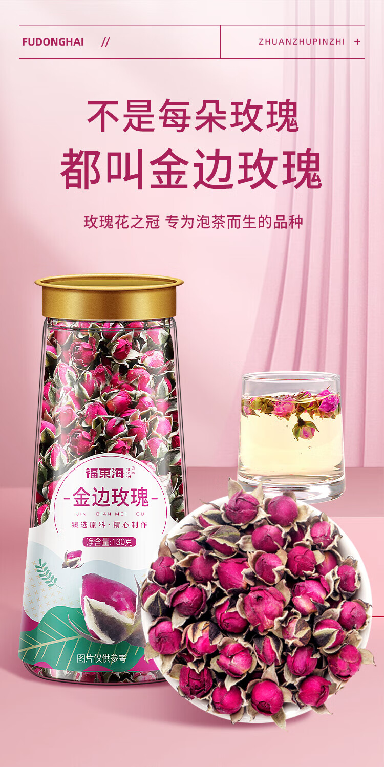 福东海 金边玫瑰花130克 云南玫瑰花茶花干玫瑰花蕾花草茶养生花茶
