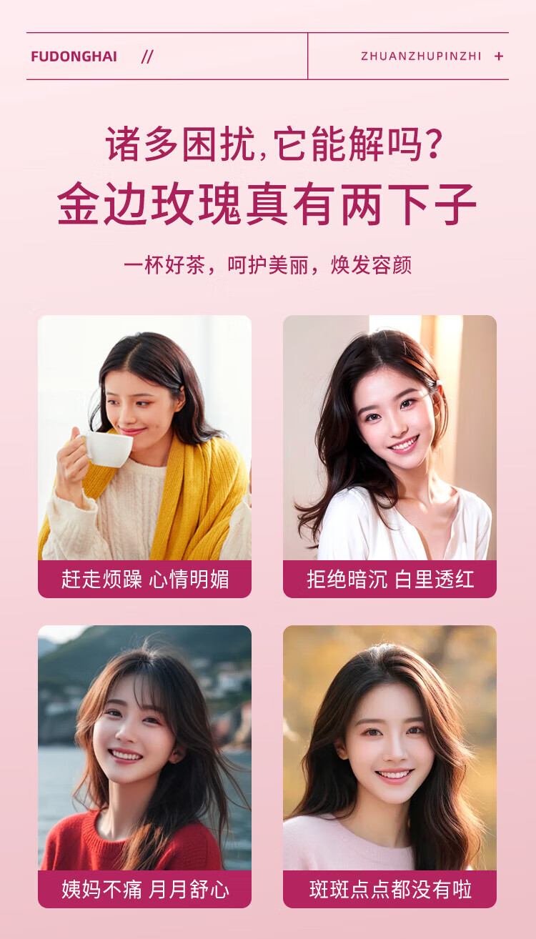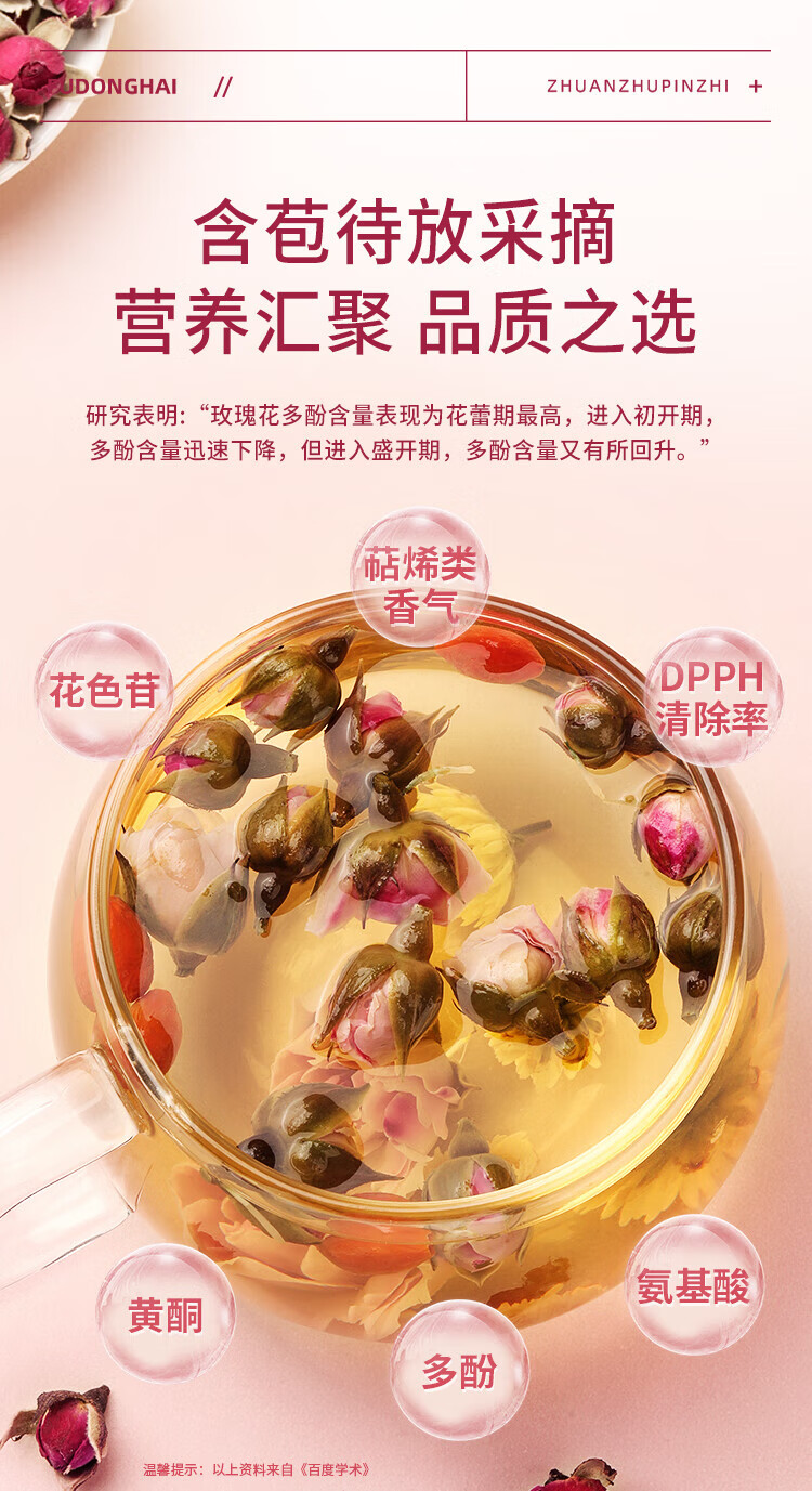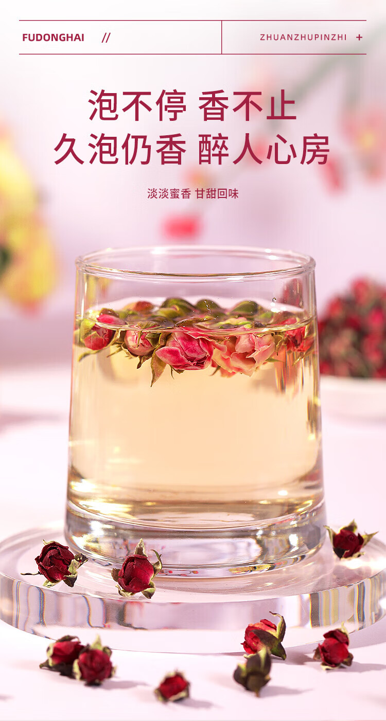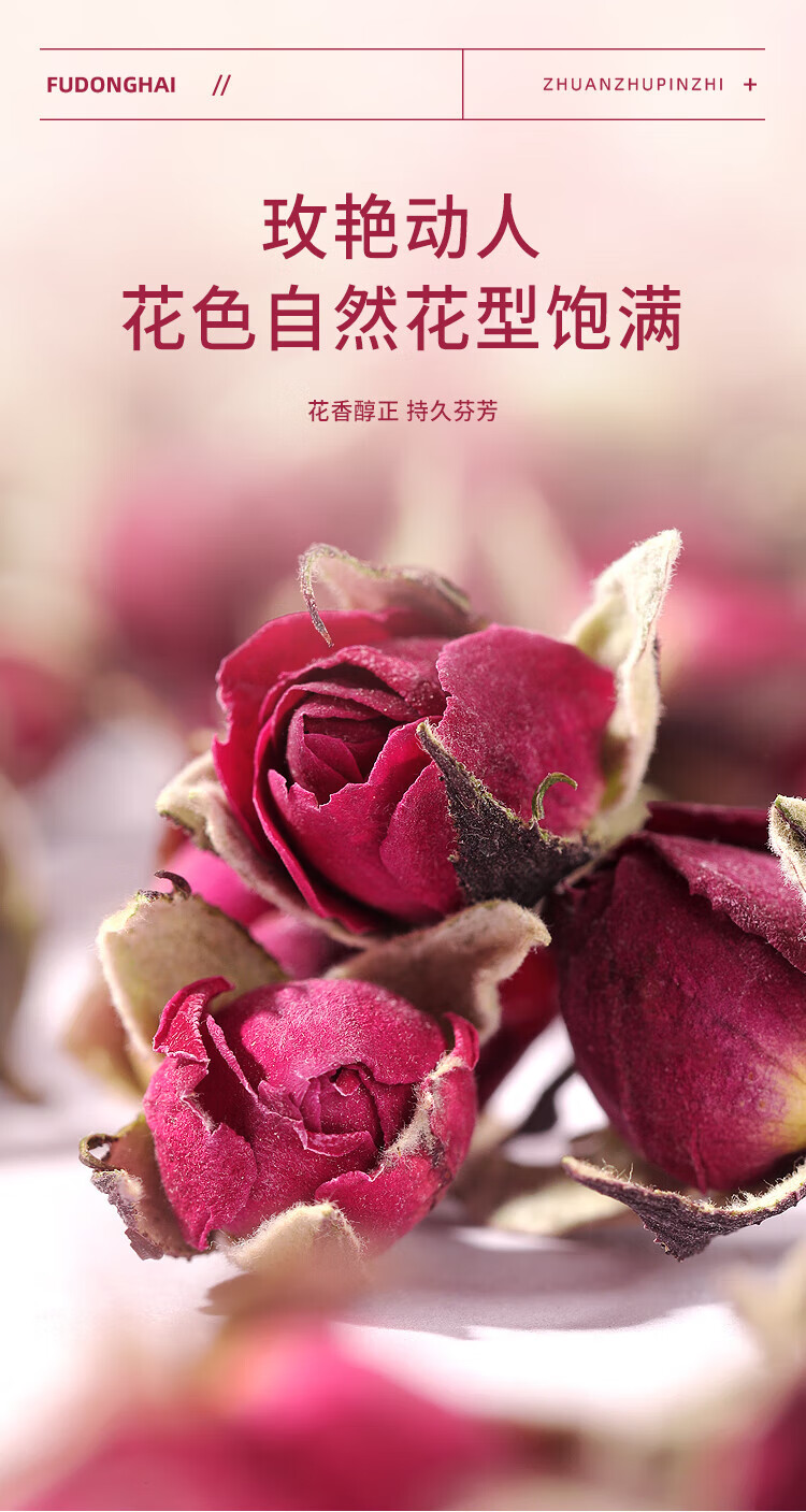 福东海 金边玫瑰花130克 云南玫瑰花茶花干玫瑰花蕾花草茶养生花茶