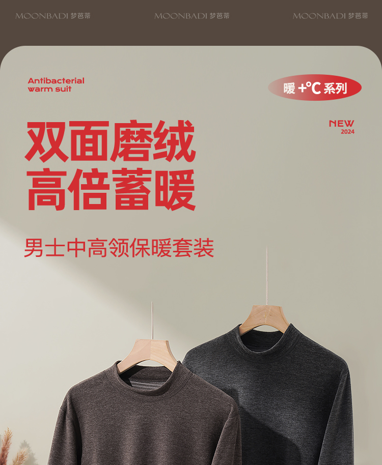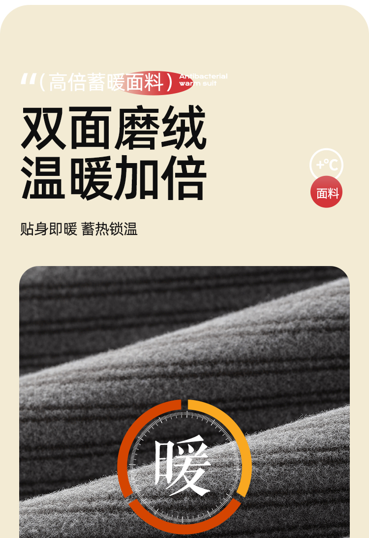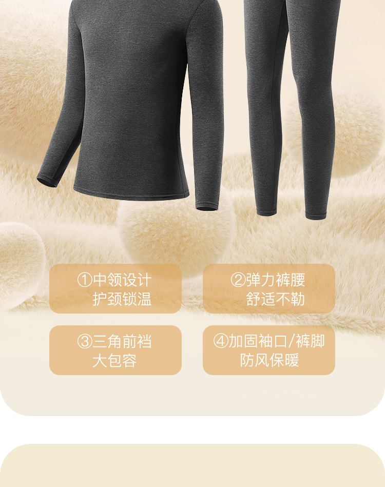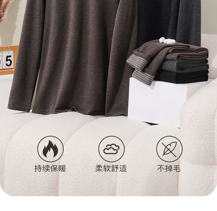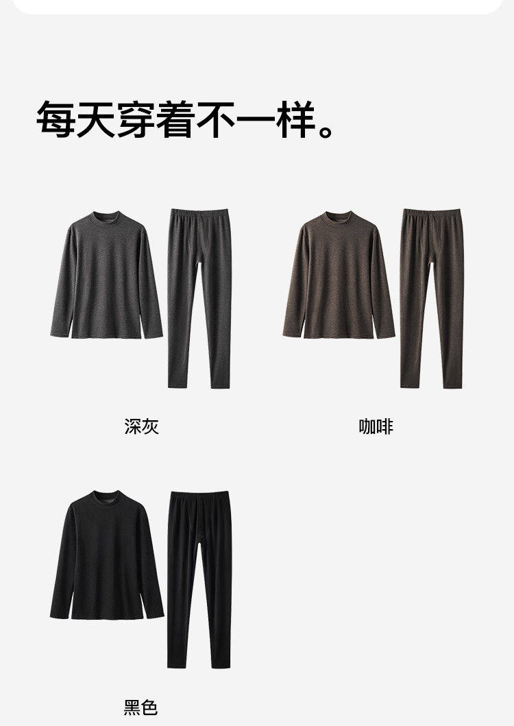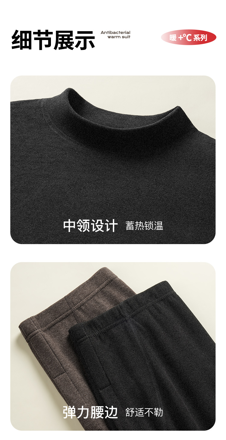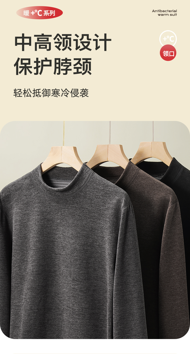 【半高领】280g秋冬男士保暖套装内搭叠穿双面磨绒秋衣秋裤套男士中领保暖套装