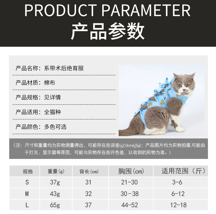严选宠物绝育服猫咪绝育术后恢复防创口接触外物防舔绑带服透气蓝色猫猫服