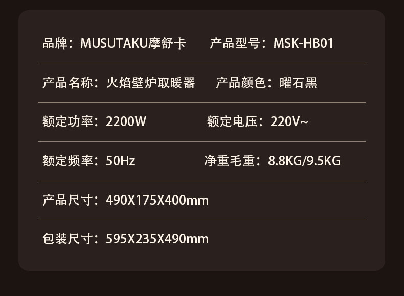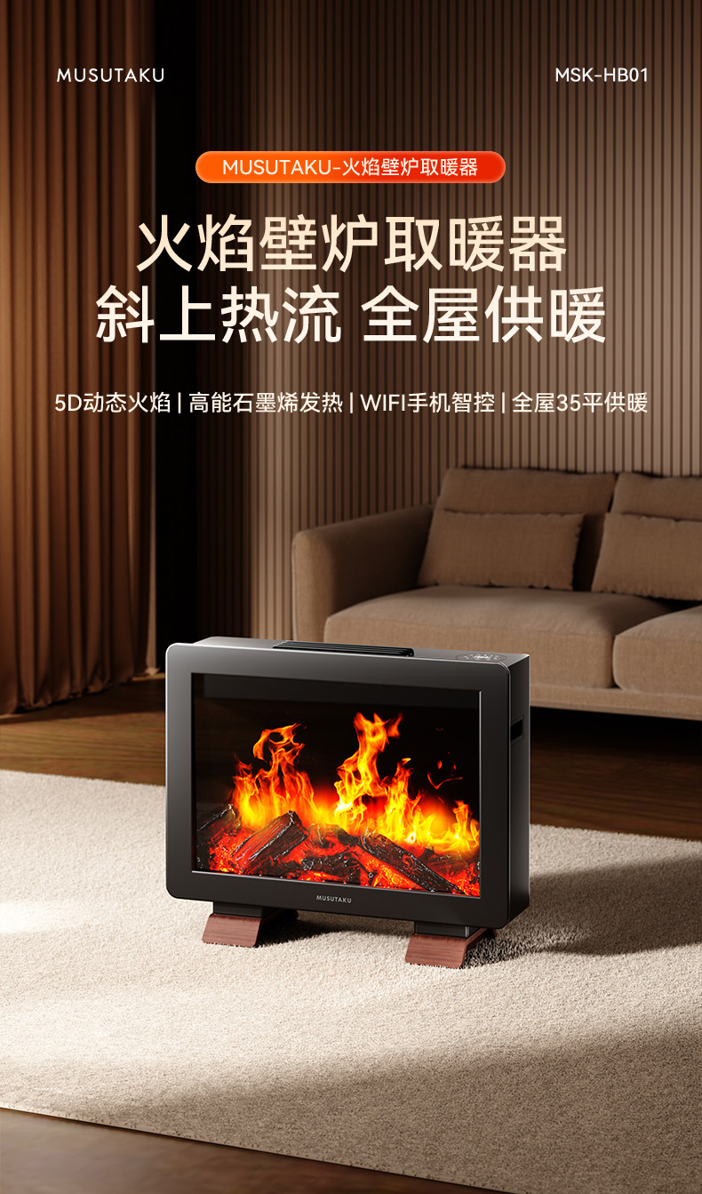 MUSUTAKU摩舒卡仿真火焰壁炉式电暖气