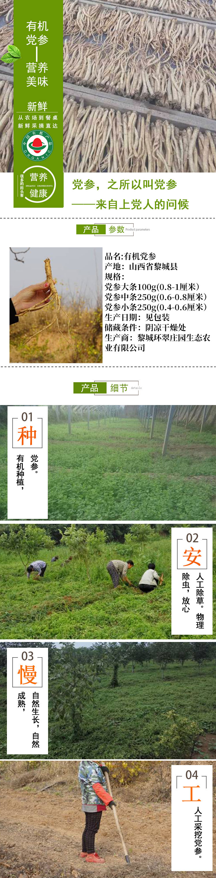 【厂商直发】有机党参 煲汤 泡水100g/250g 有机认证