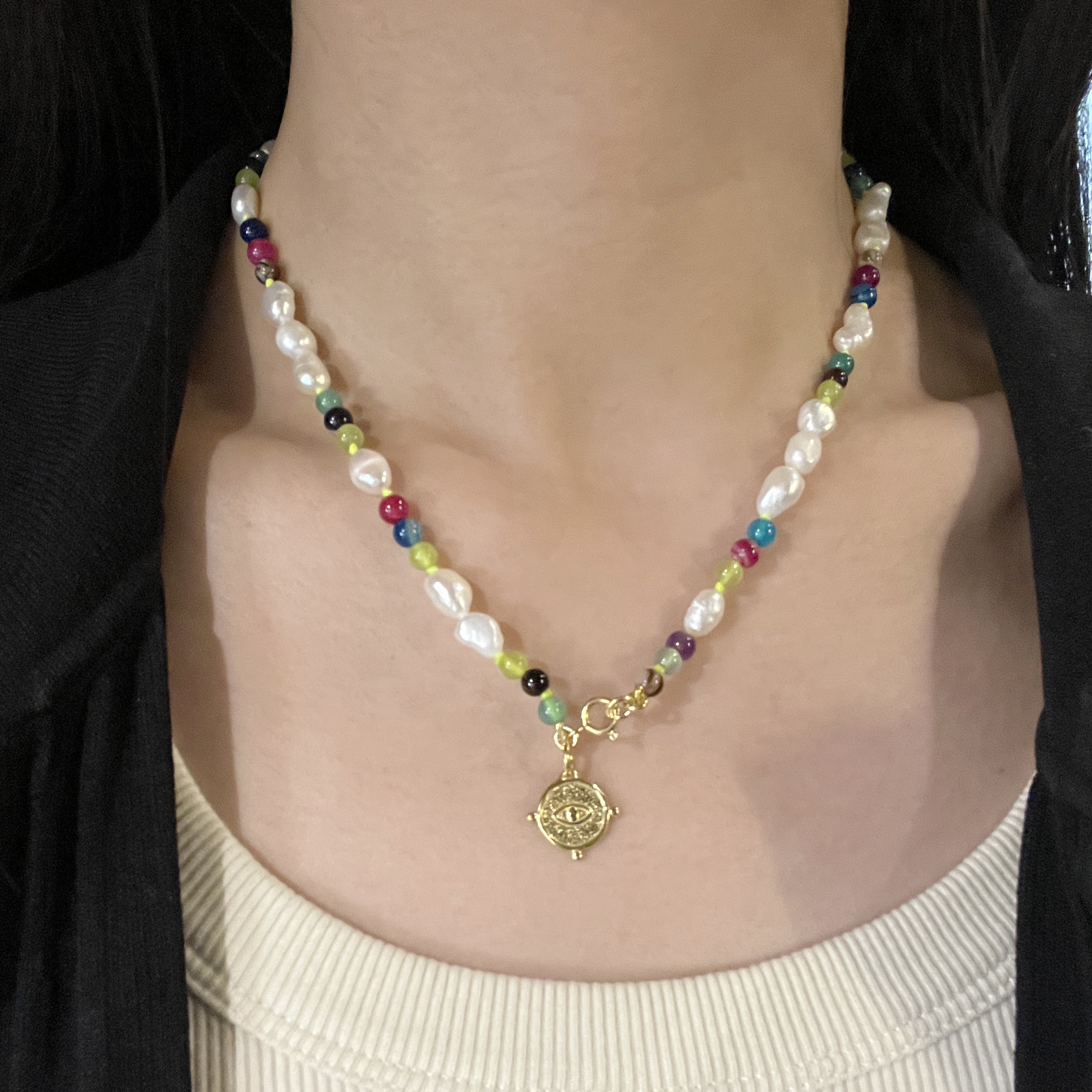 北京仓|Barbóra-Eye-眼睛金币 绿色 项链[希腊设计师]