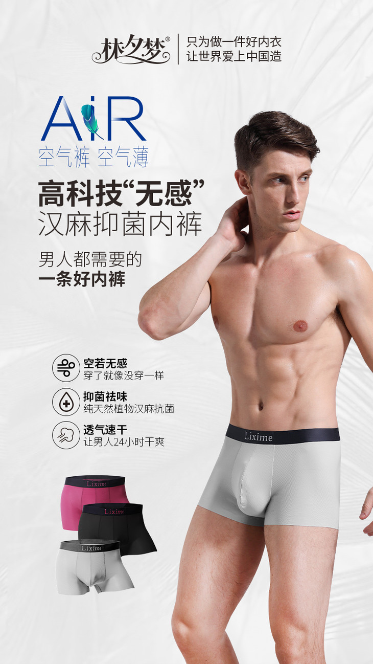 【空气裤-男款】黑科技“无感” 汉麻抑菌内裤 空气裤 空气薄 顺滑如丝 空若无感 抑菌祛味 透气速干_1811