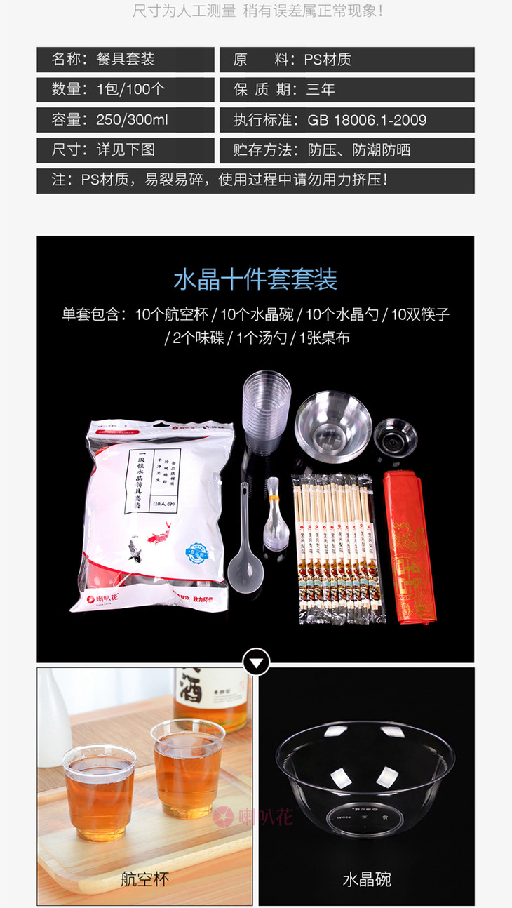 喇叭花一次性ps水晶碗调味碟塑料酱料碟塑料小菜碟醋碟甜品碗碟子500只