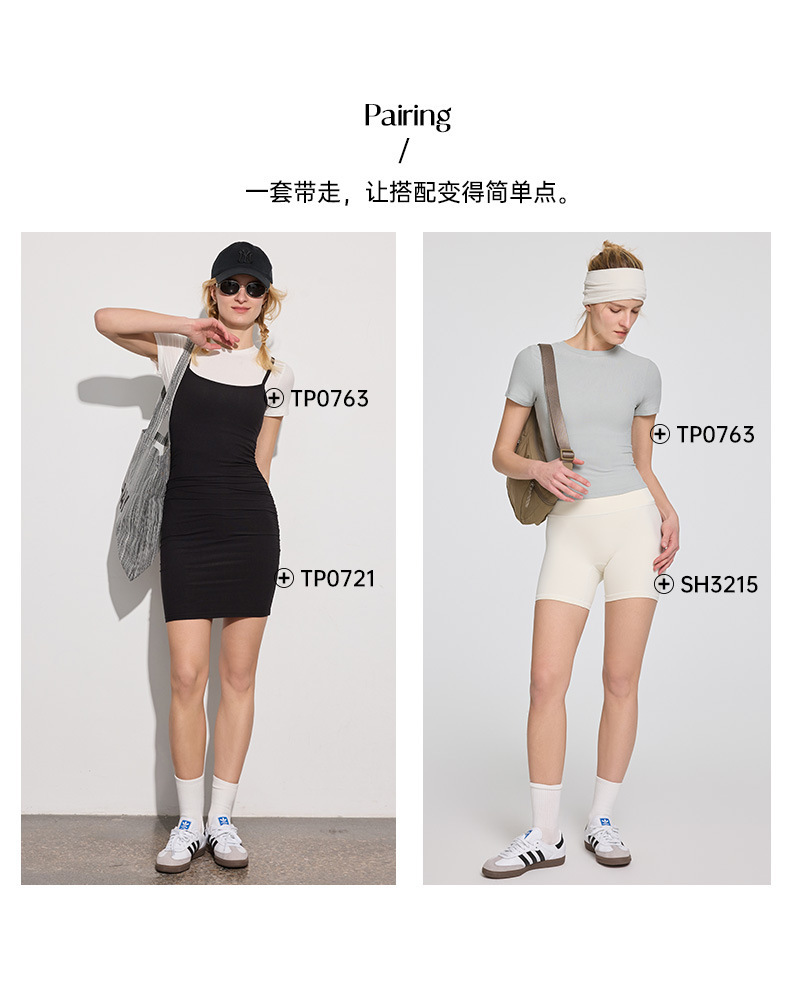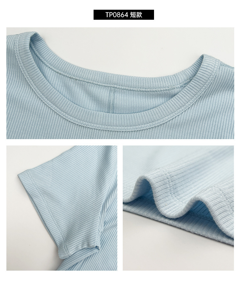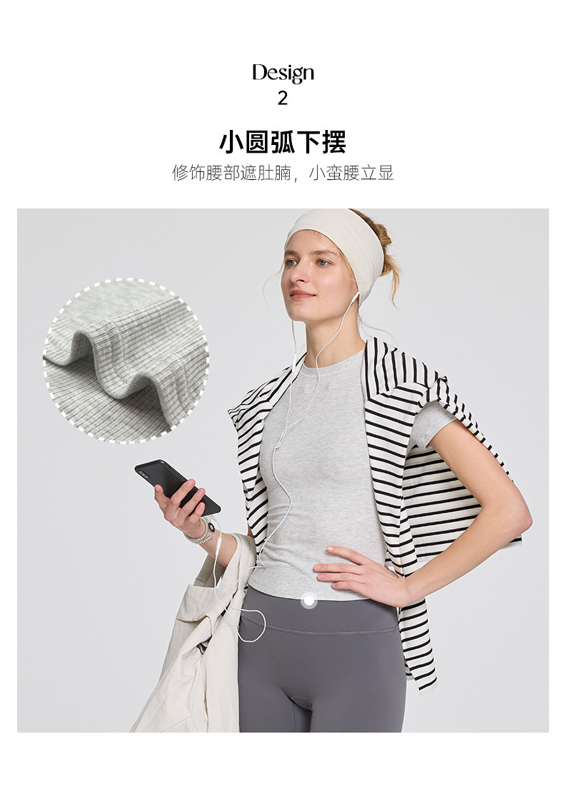 唤醒身心~天丝莫代尔螺纹小圆领T恤长款运动上衣 休闲可外穿健身服基础款背心