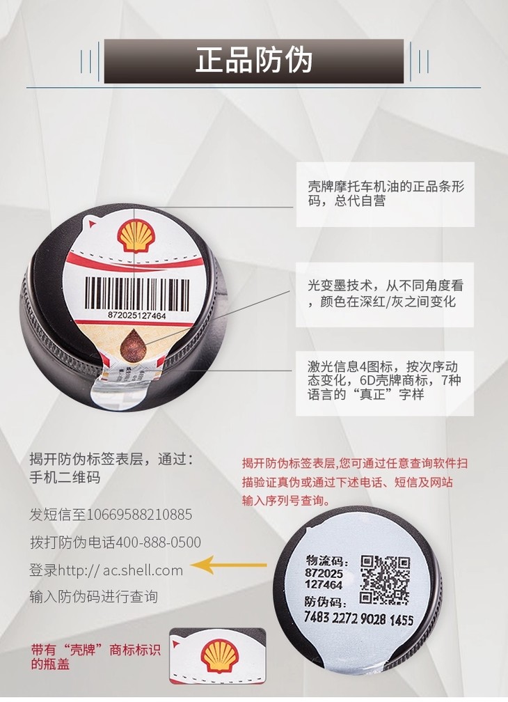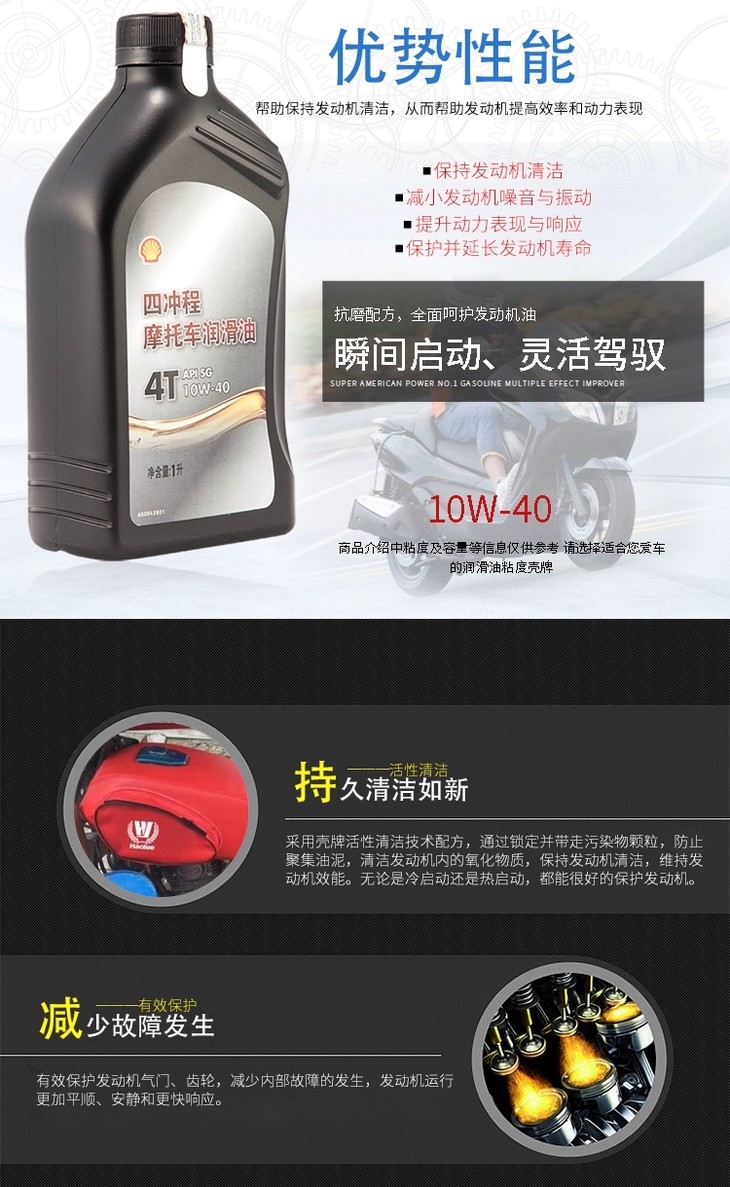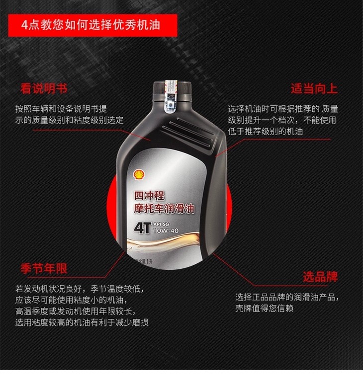 壳牌四冲程摩托车润滑油4T 10W-40 900ML装