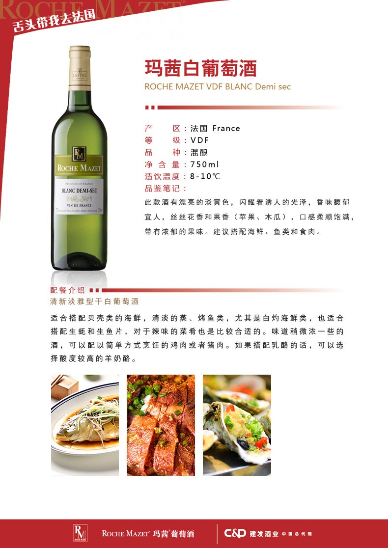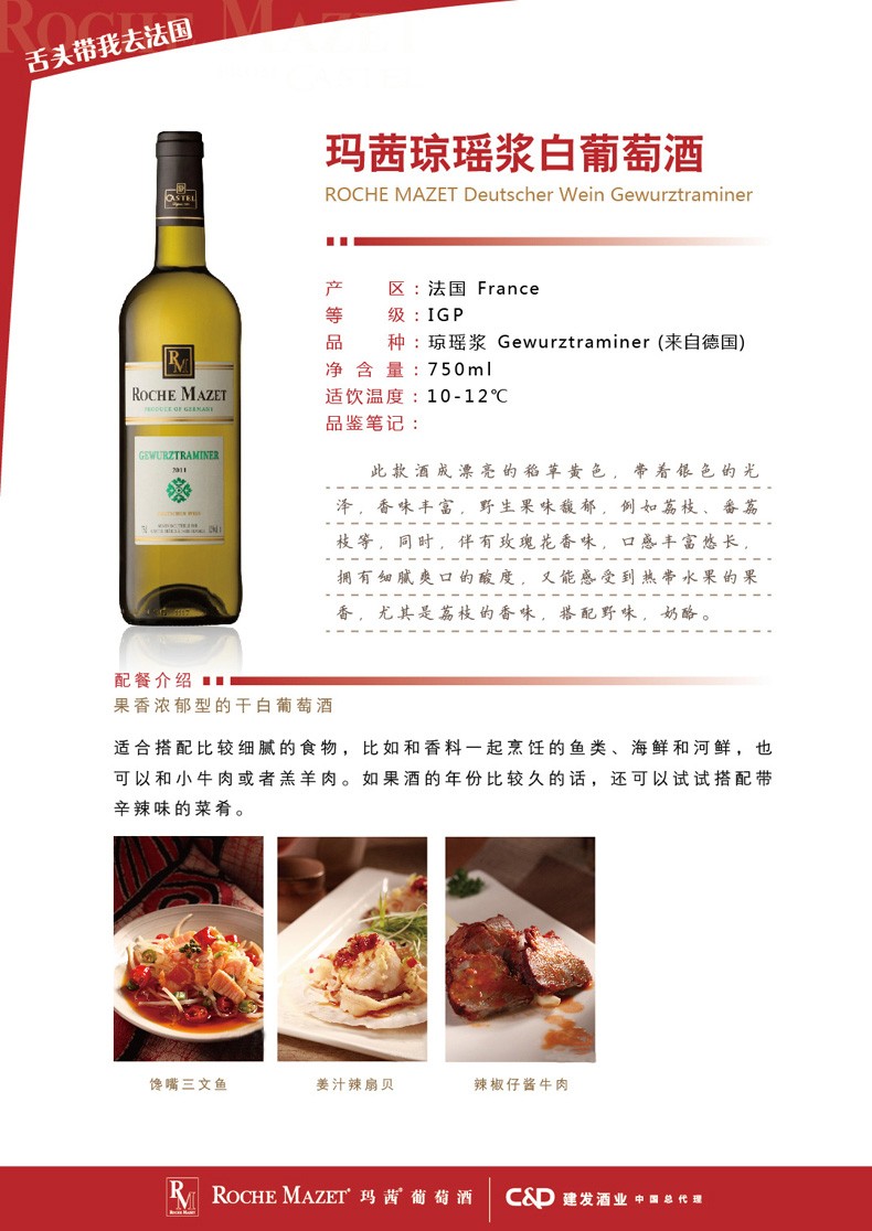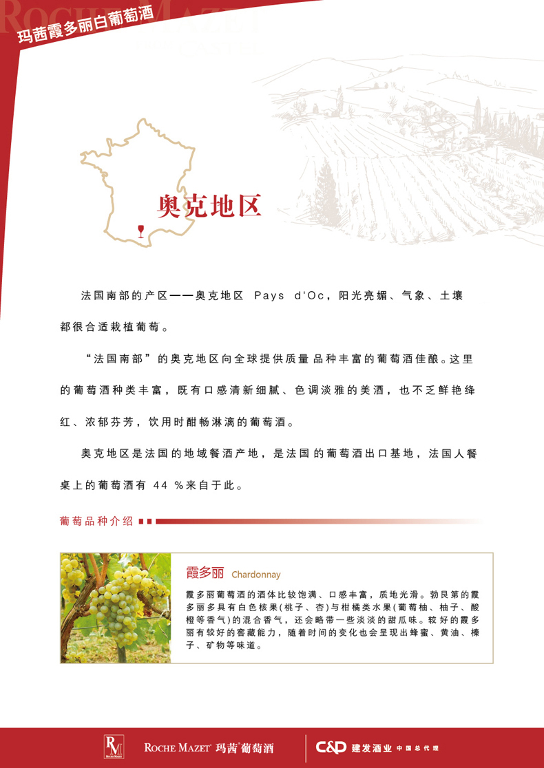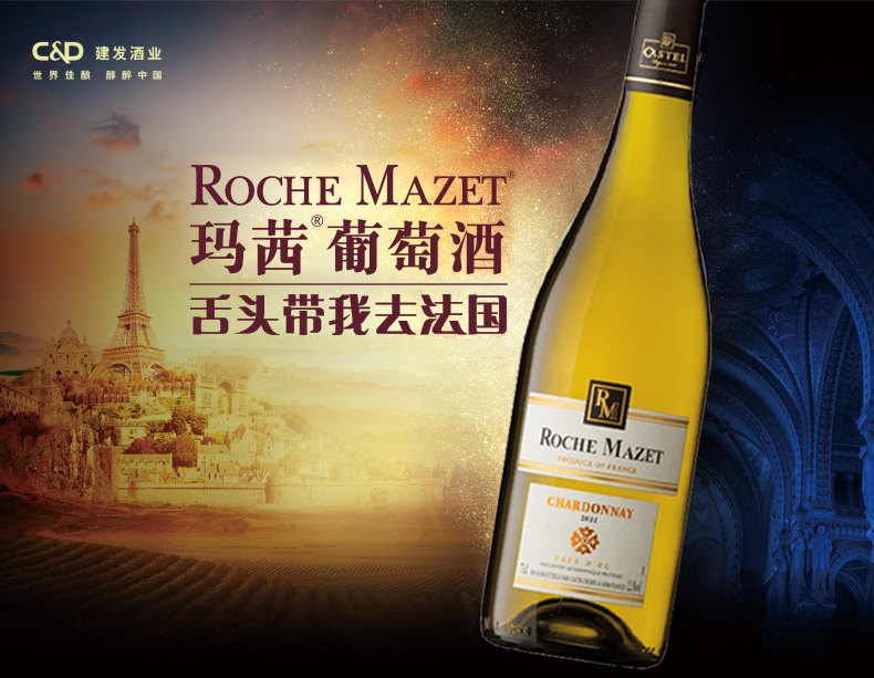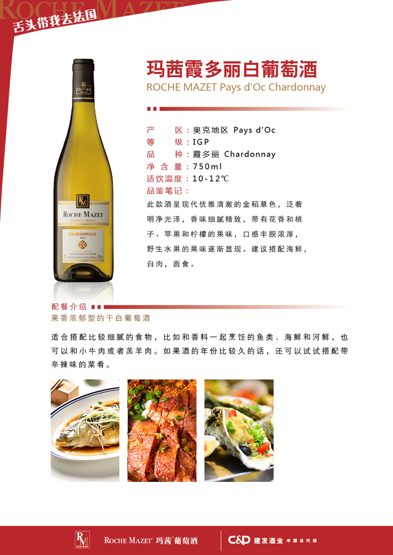 建发酒业 法国原瓶进口 卡思黛乐castel玛茜霞多丽 琼瑶浆白葡萄酒 黑品乐 罗纳河谷村庄 西拉 玛茜白葡萄酒