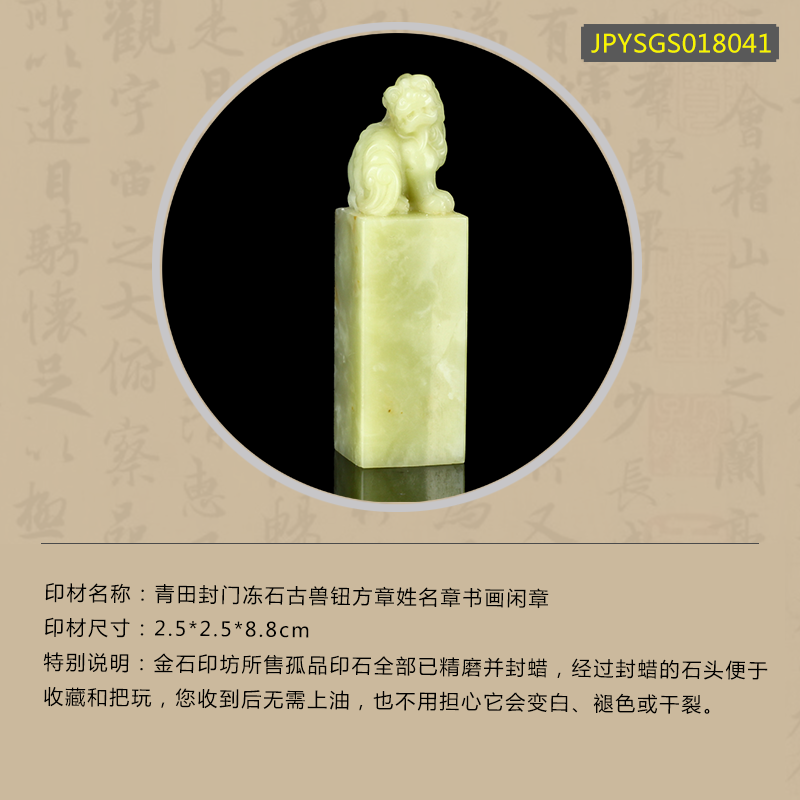 孤品18041青田封门冻石古兽钮方章姓名章书画闲章2.5*2.5*8.8cm