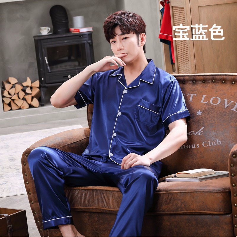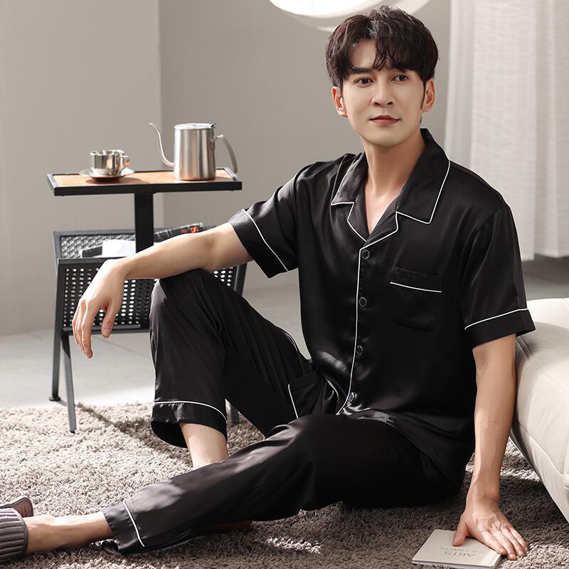 【舒服得像裸穿❗️冰丝轻奢睡衣套装】冰丝材质自带凉感,透气不闷汗,触感如绸缎般顺滑,自带高级光泽感,上身尽显优雅格调,男士丝绸家居服两件套装大码L