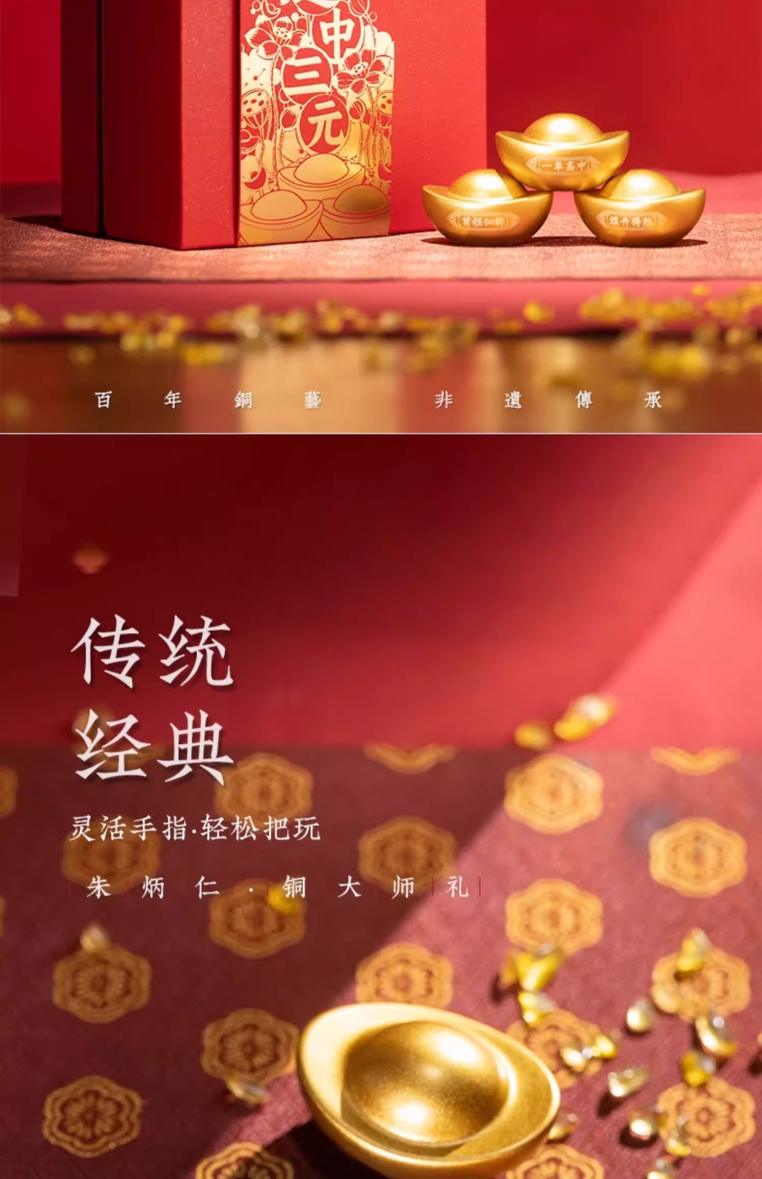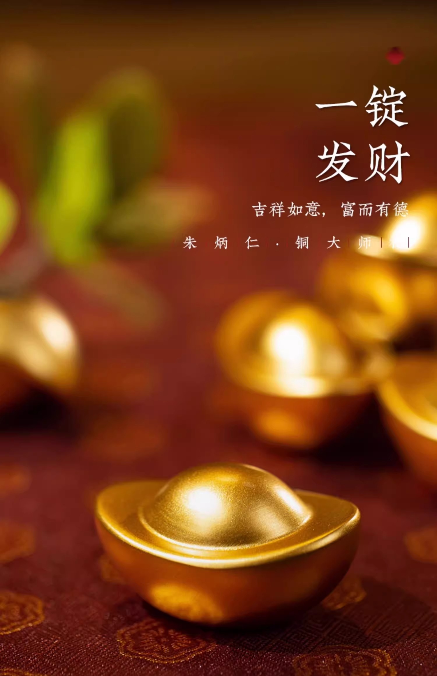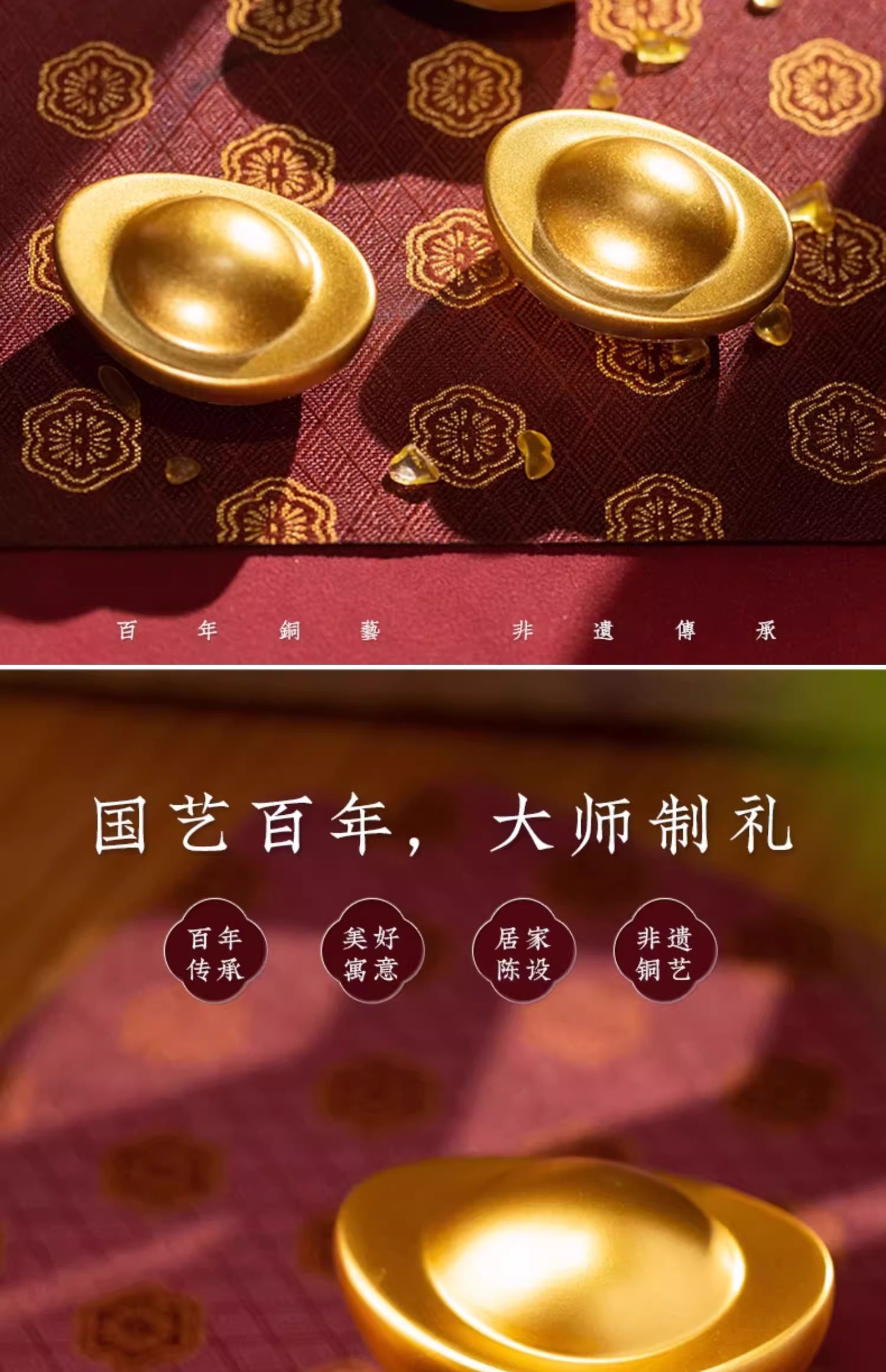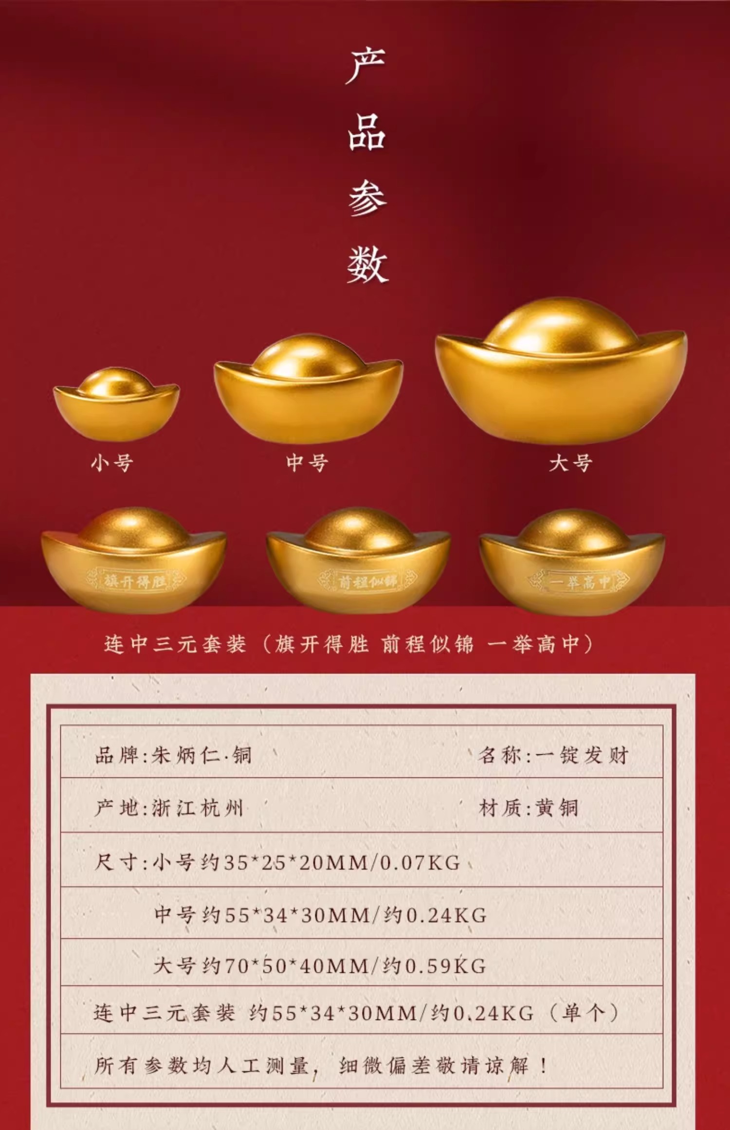 朱炳仁铜 黄铜元宝(中号)礼盒 套装 名称:连中三元