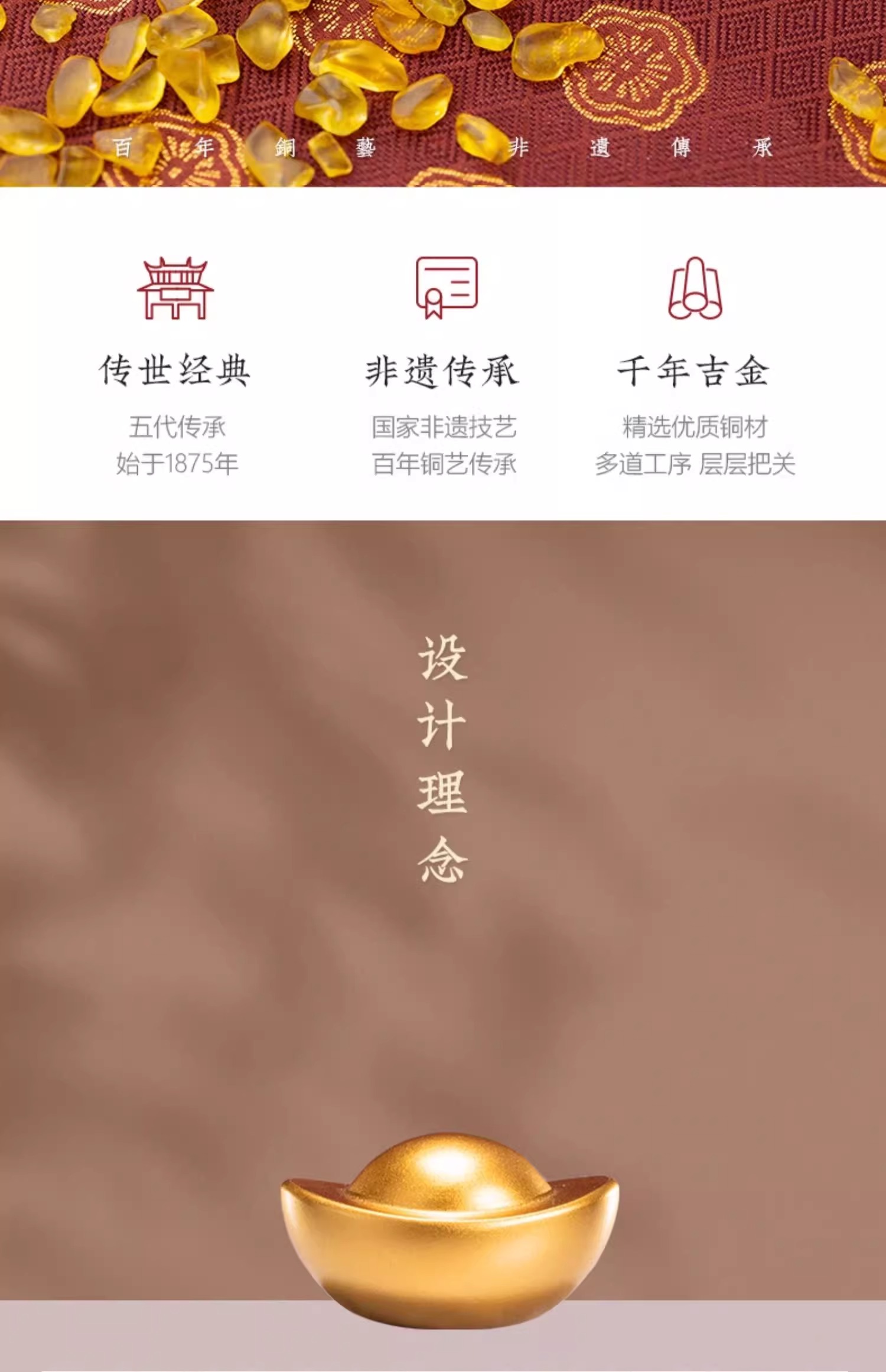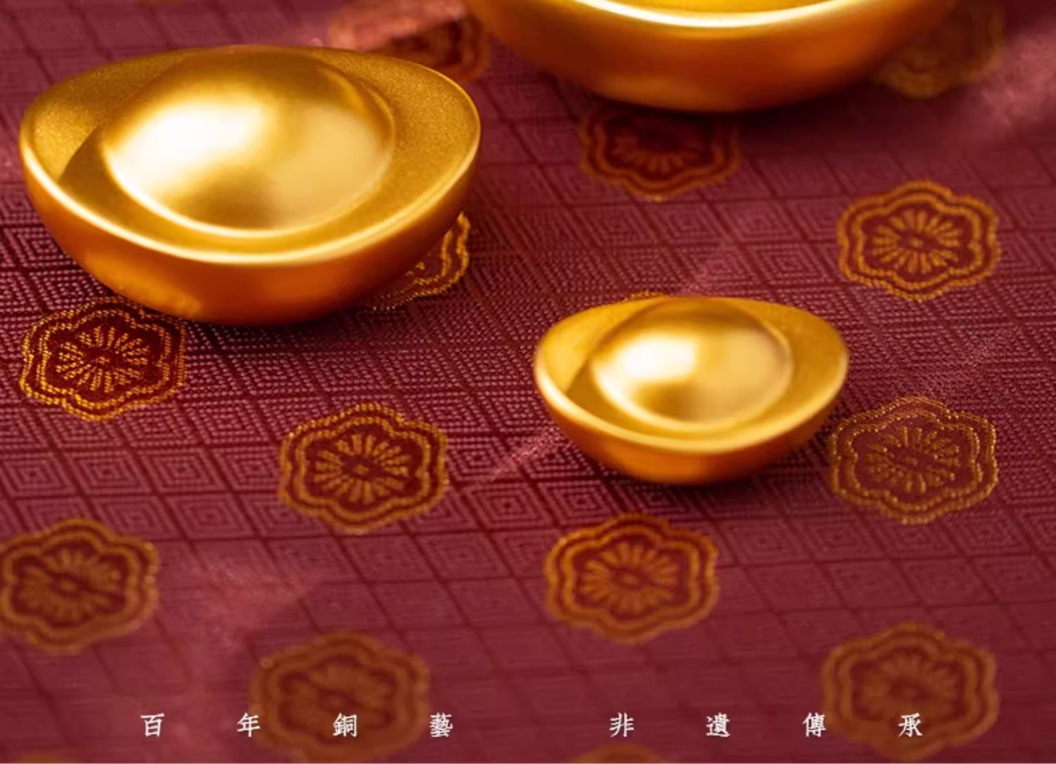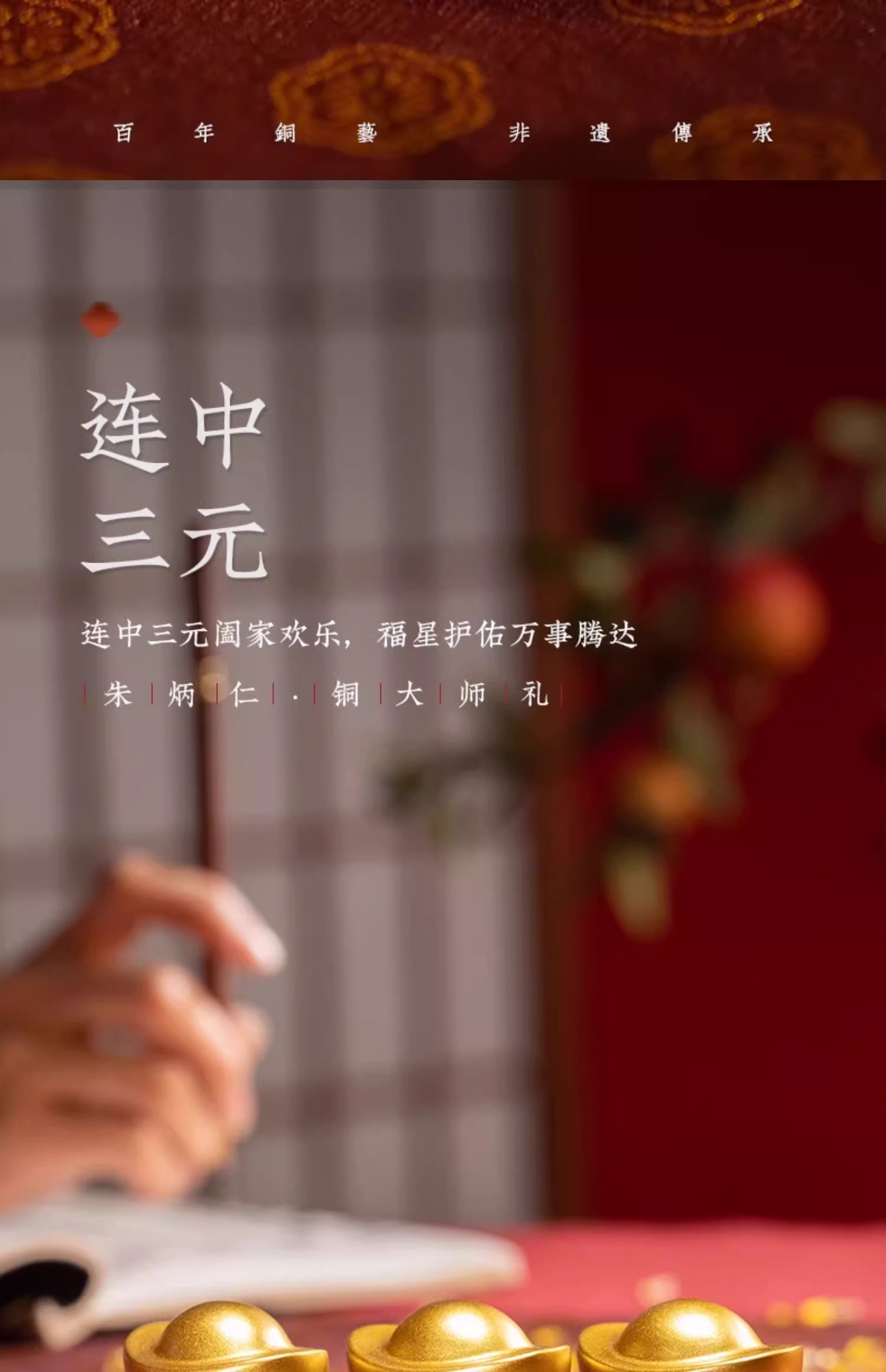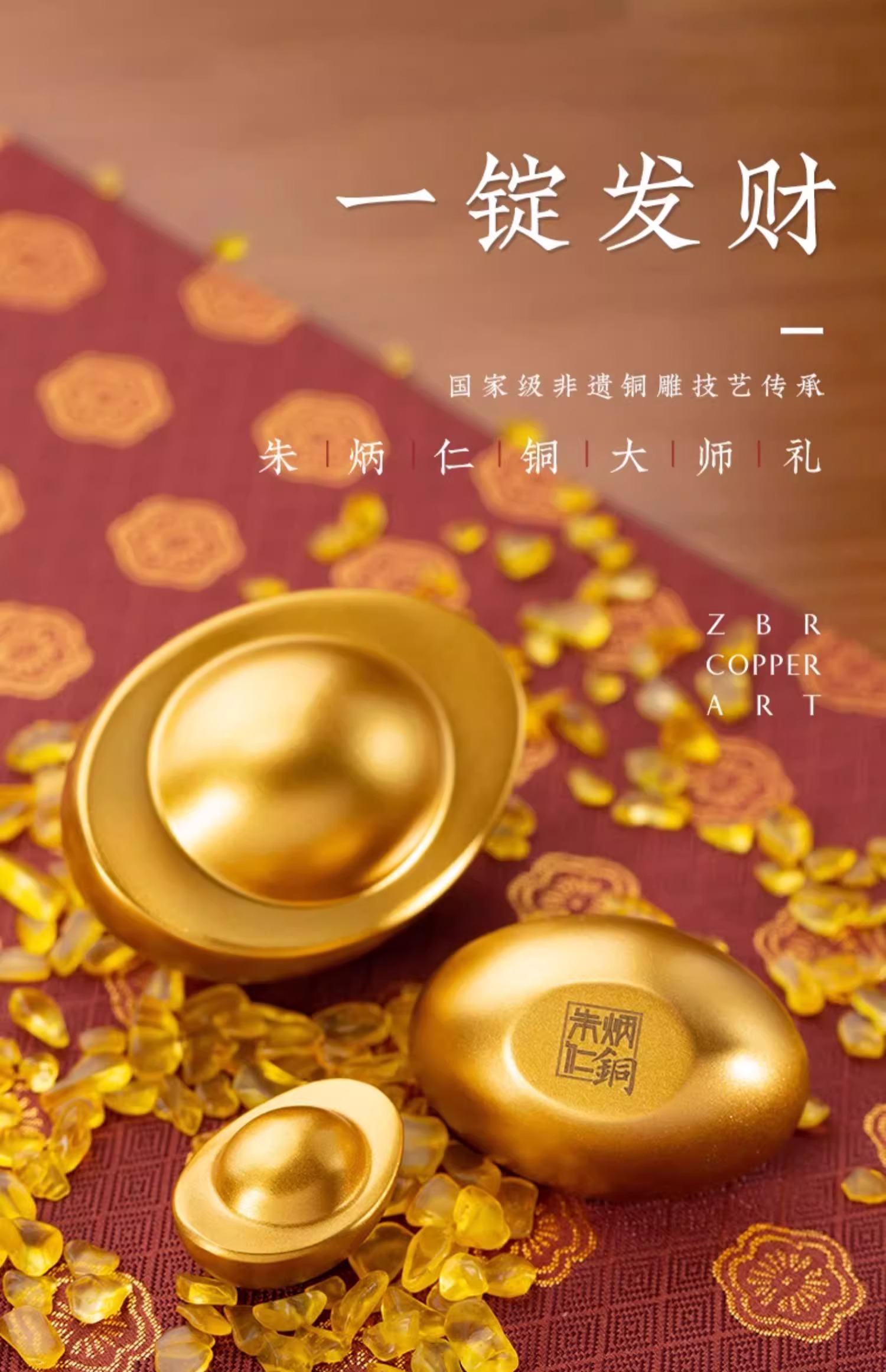 朱炳仁铜 黄铜元宝(中号)礼盒 套装 名称:连中三元