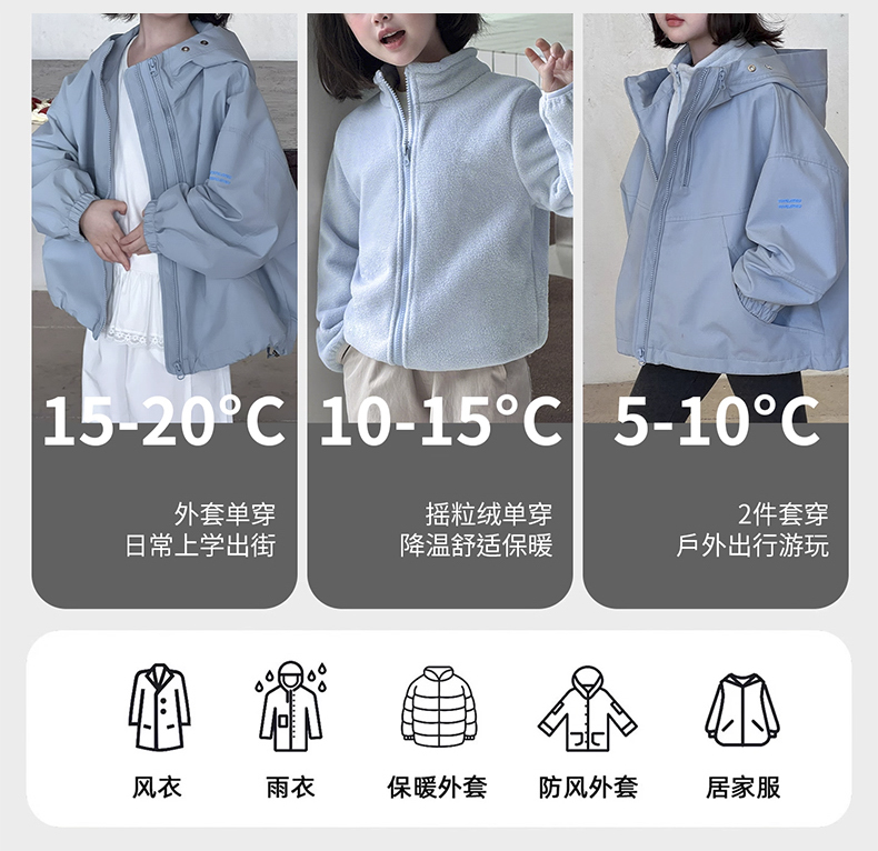 裁缝学苑TH14童装冲锋衣纸样儿童抓绒内胆软壳连帽上衣样板图纸