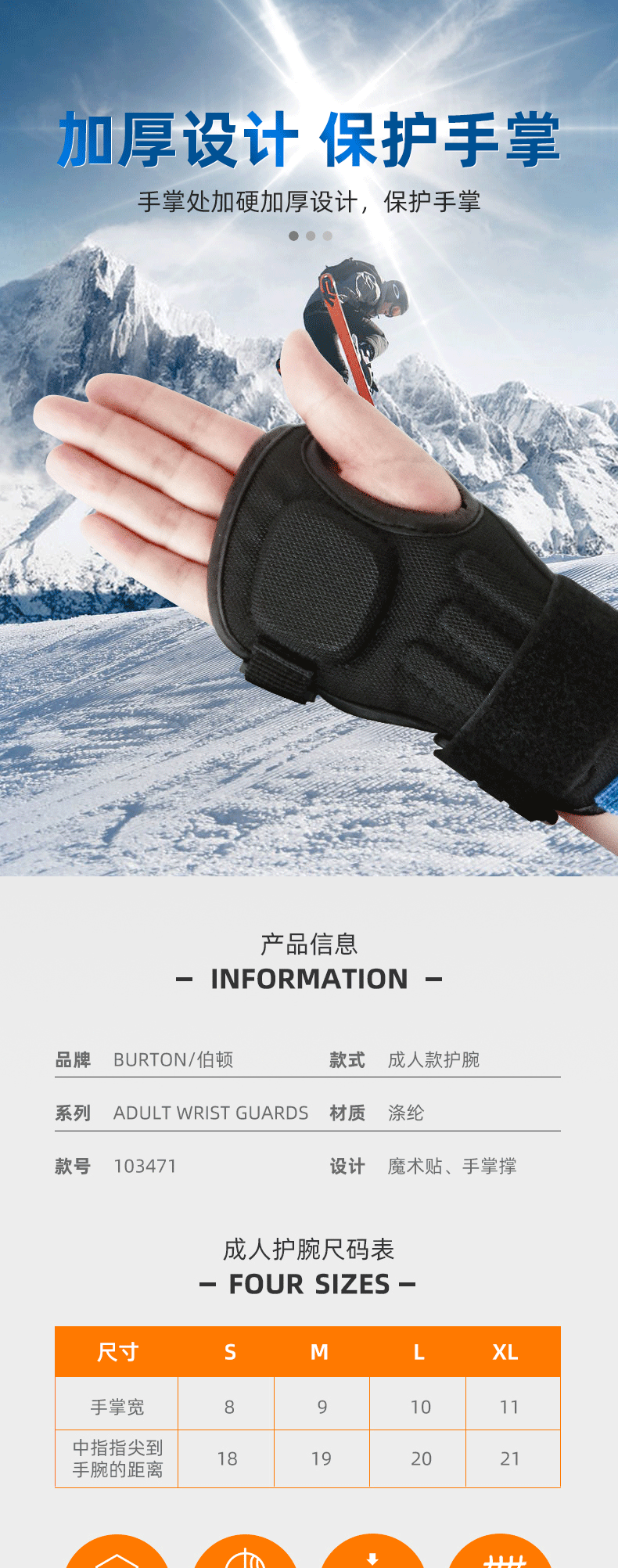 【六折清仓】美国Burton伯顿 ADULT WRIST GUARDS护具滑雪防摔护腕护掌成人款双层保护 103471