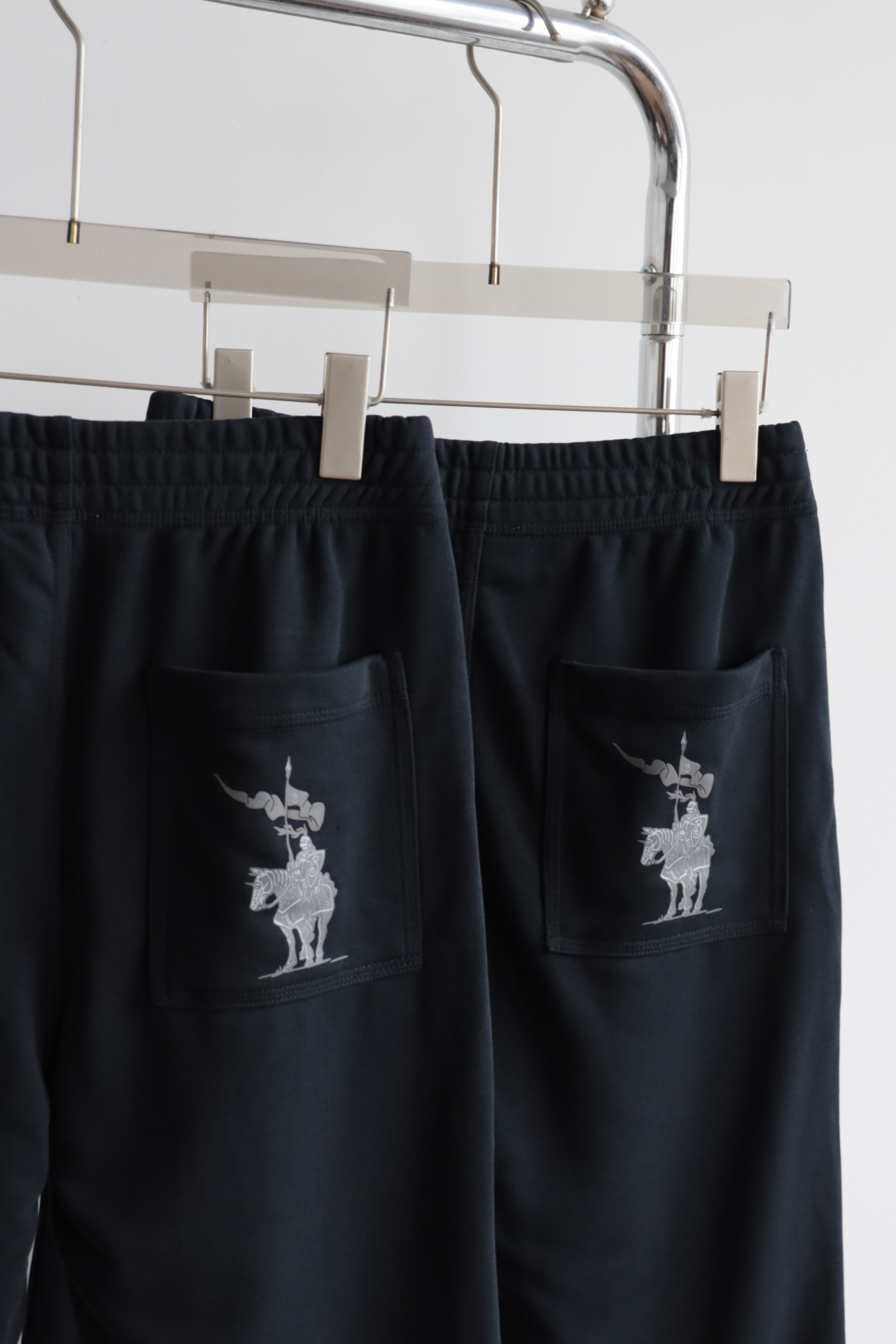 内侧抽绳式松紧弹力腰部-侧插袋;后侧贴袋-战马印花徽标,进口胶浆,不会脱落