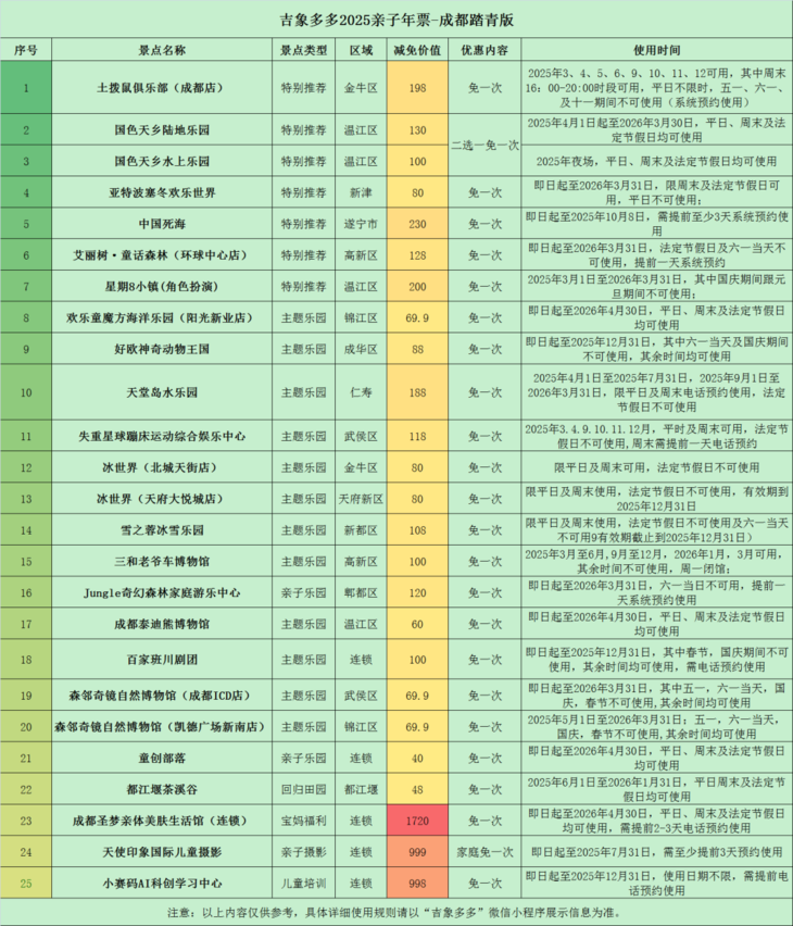 《吉象多多2025亲子年票-成都踏青版》仅99元!超高性价比,近25家热门亲子场馆,玩一个就赚翻了~爆款上线,心动预警