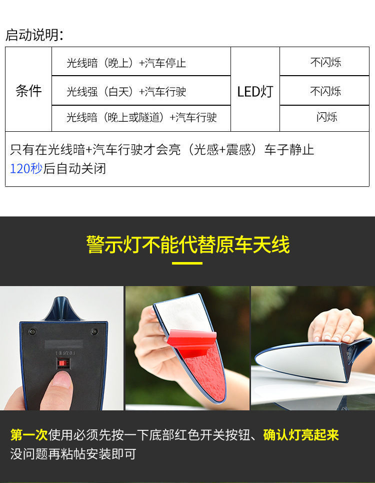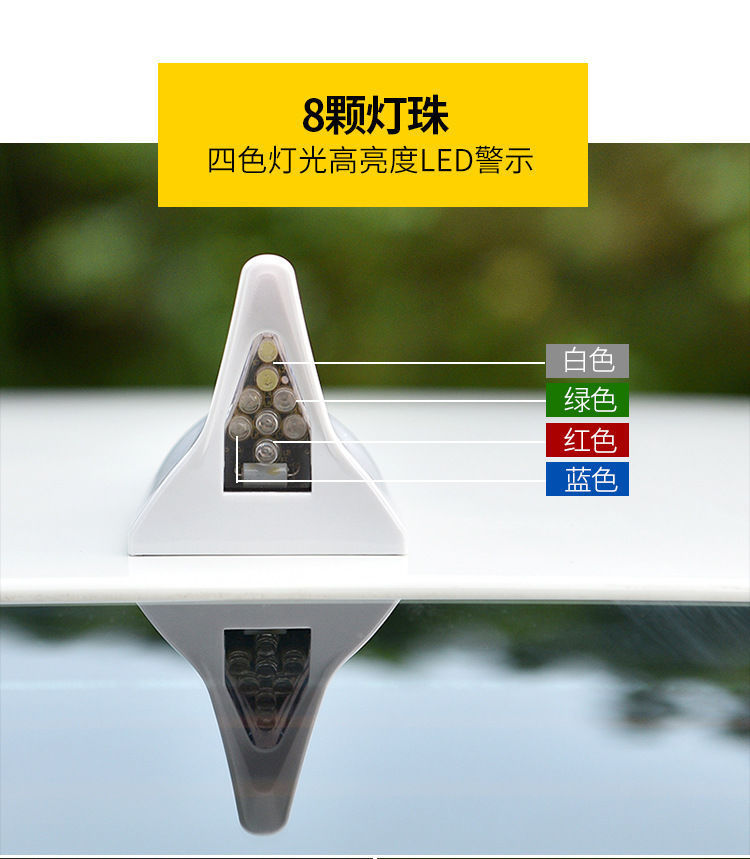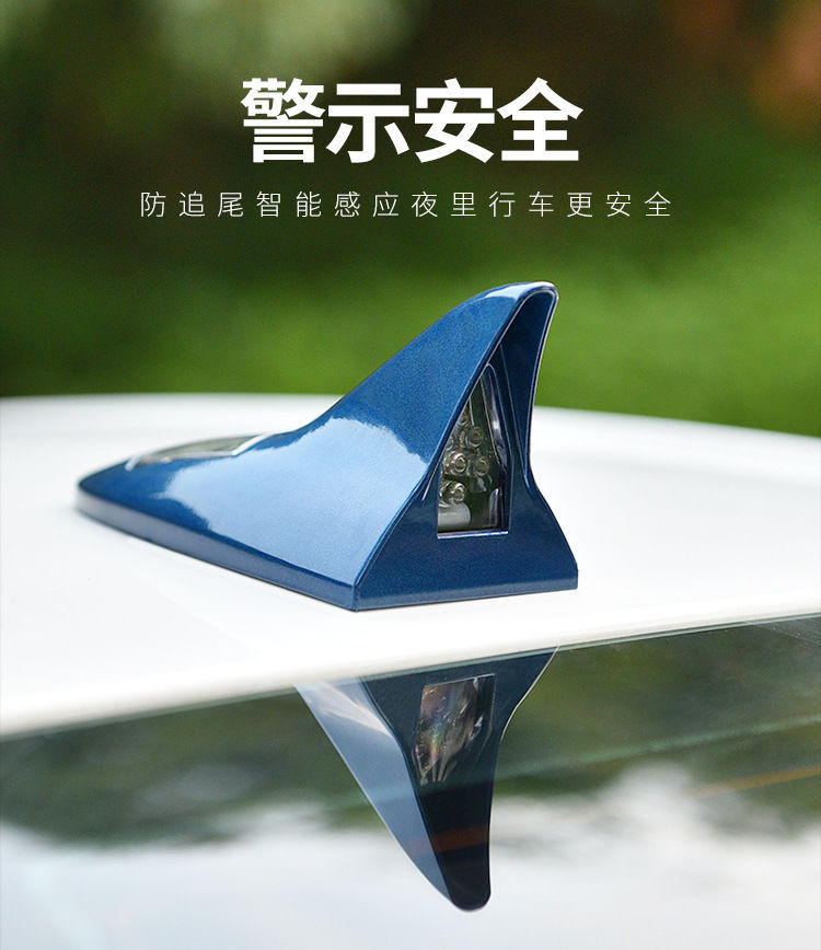太阳能激光防追尾灯鲨鱼鳍雾灯追尾后汽车防撞爆闪警示灯LED装饰