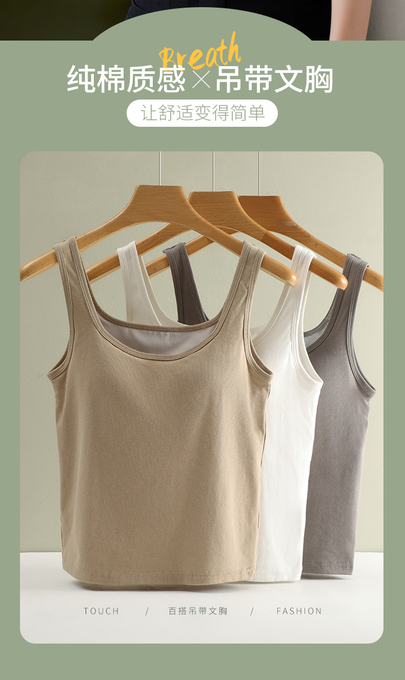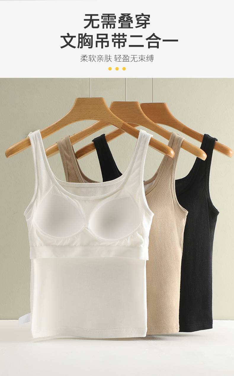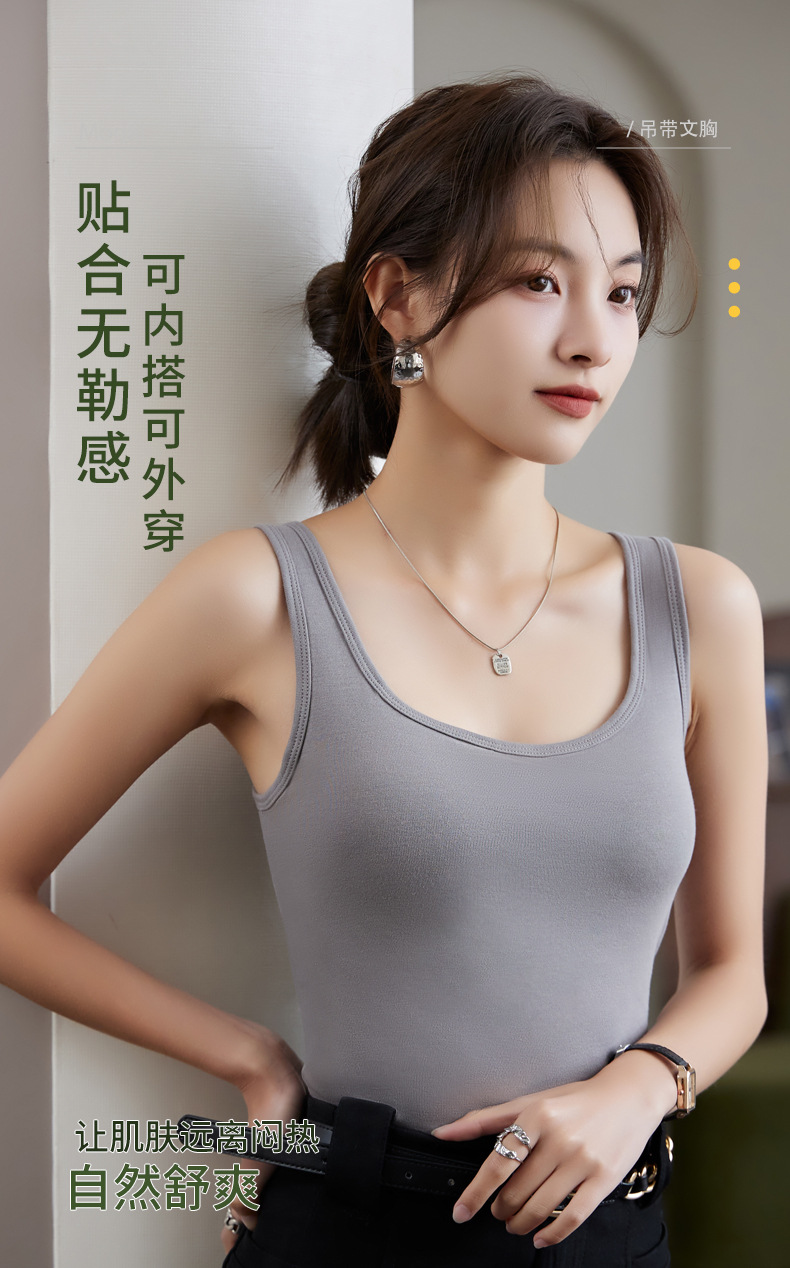 【买1送1】免Bra纯棉吊带背心 7A纯棉K菌面料,内置3D立体固定杯垫 一秒聚拢,经典H版型+加长下摆=视觉显瘦显高,大U领、一字型加宽肩带纯欲风满满