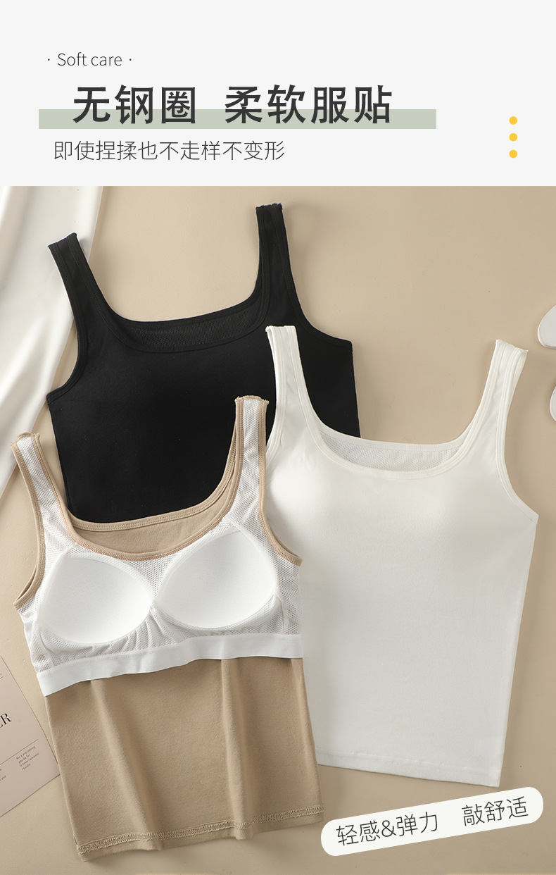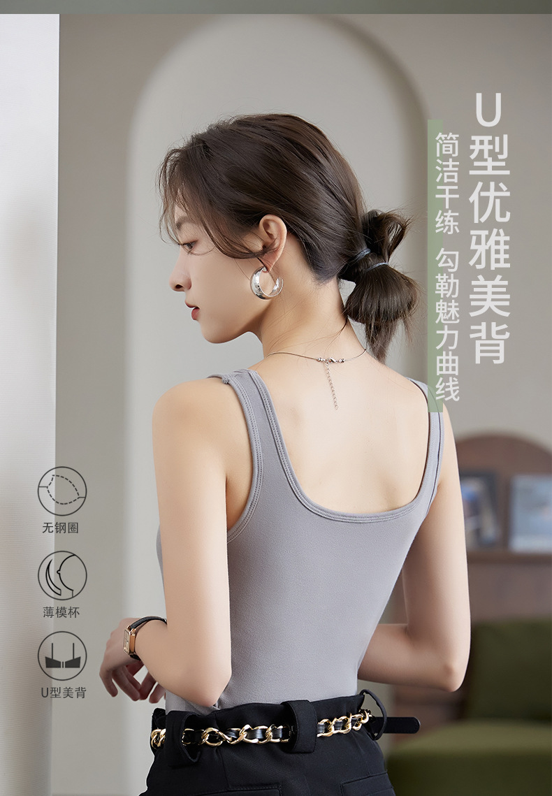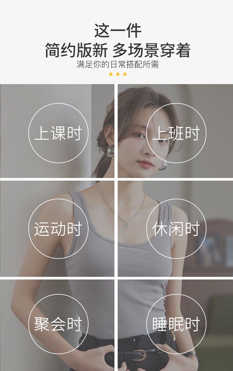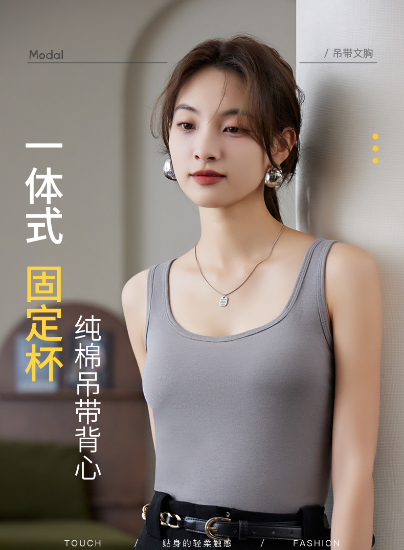 【买1送1】免Bra纯棉吊带背心 7A纯棉K菌面料,内置3D立体固定杯垫 一秒聚拢,经典H版型+加长下摆=视觉显瘦显高,大U领、一字型加宽肩带纯欲风满满