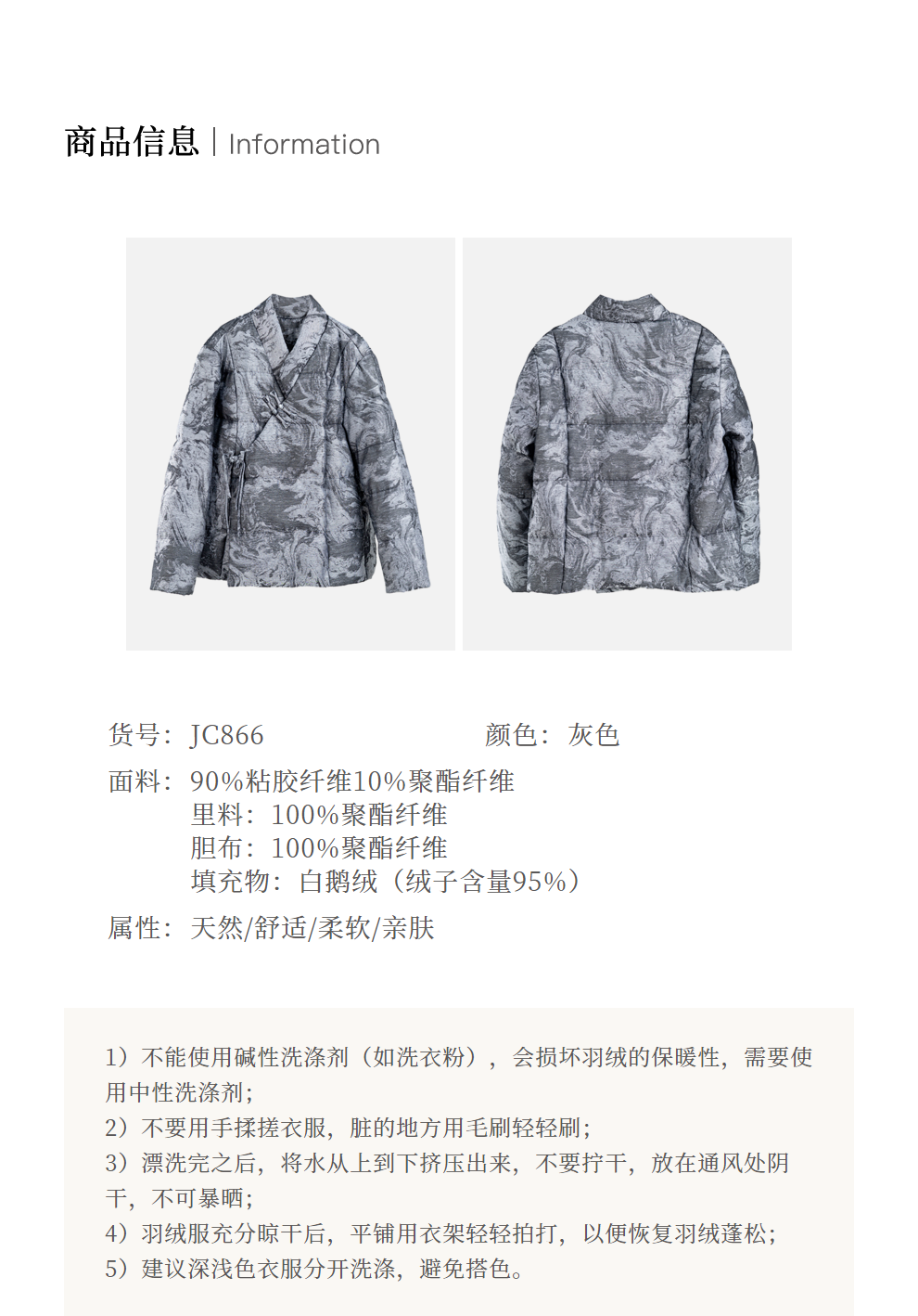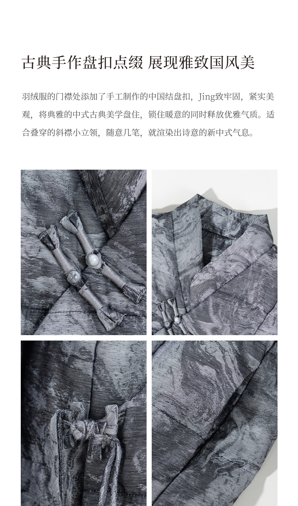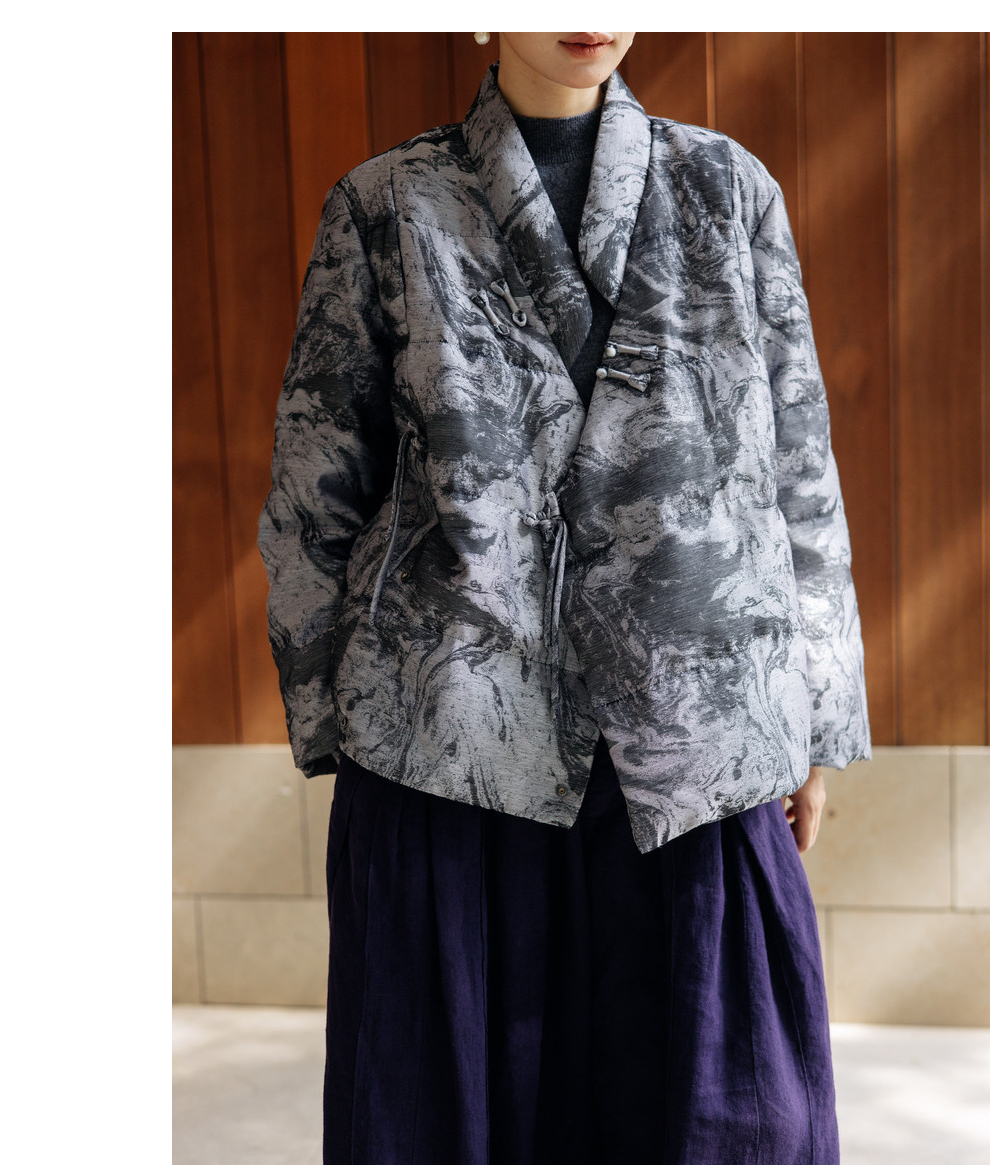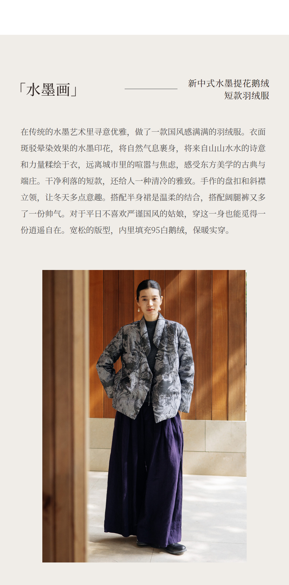 绽放旅行女装866朵/95白鹅绒冬季新中式水墨提花鹅绒短款羽绒服