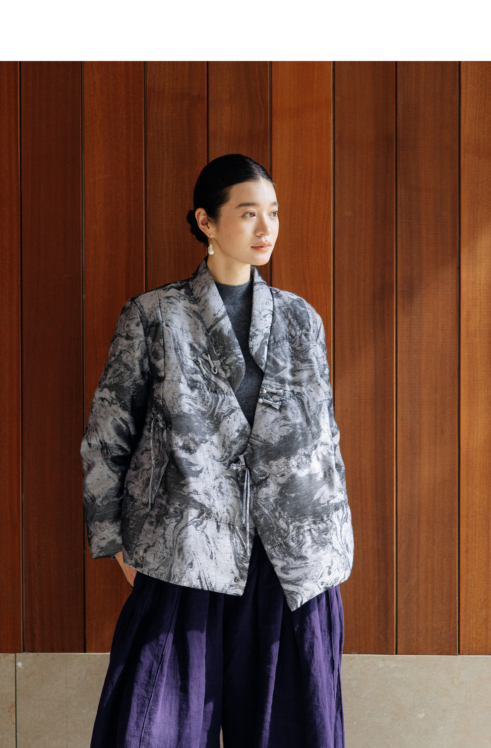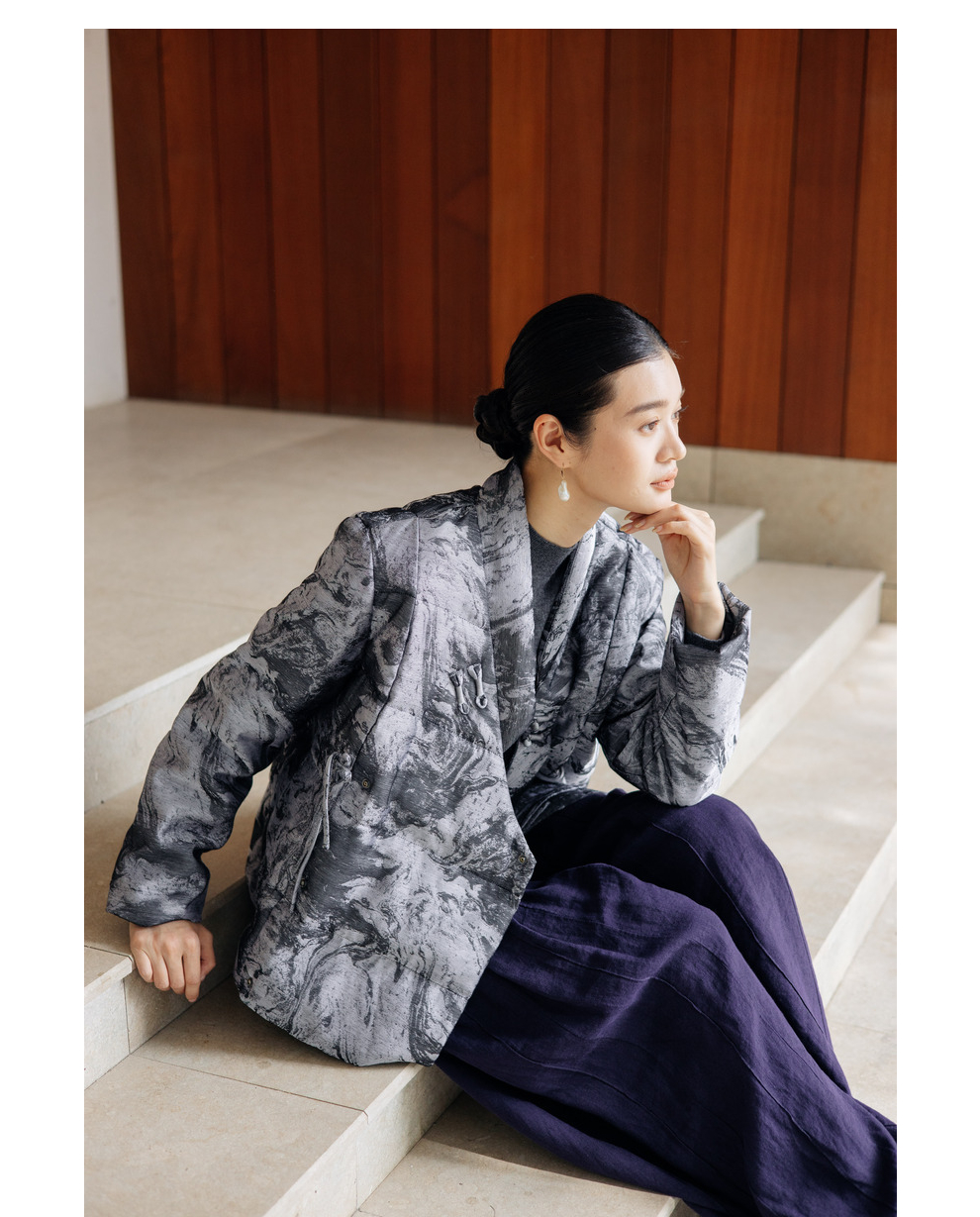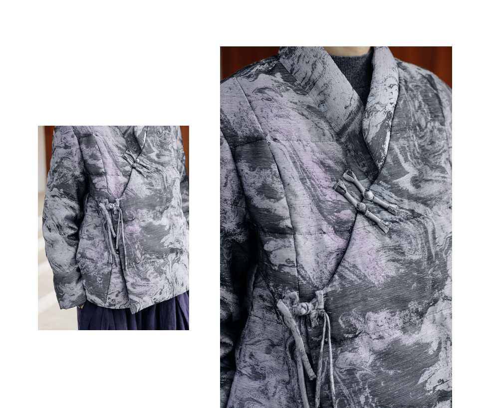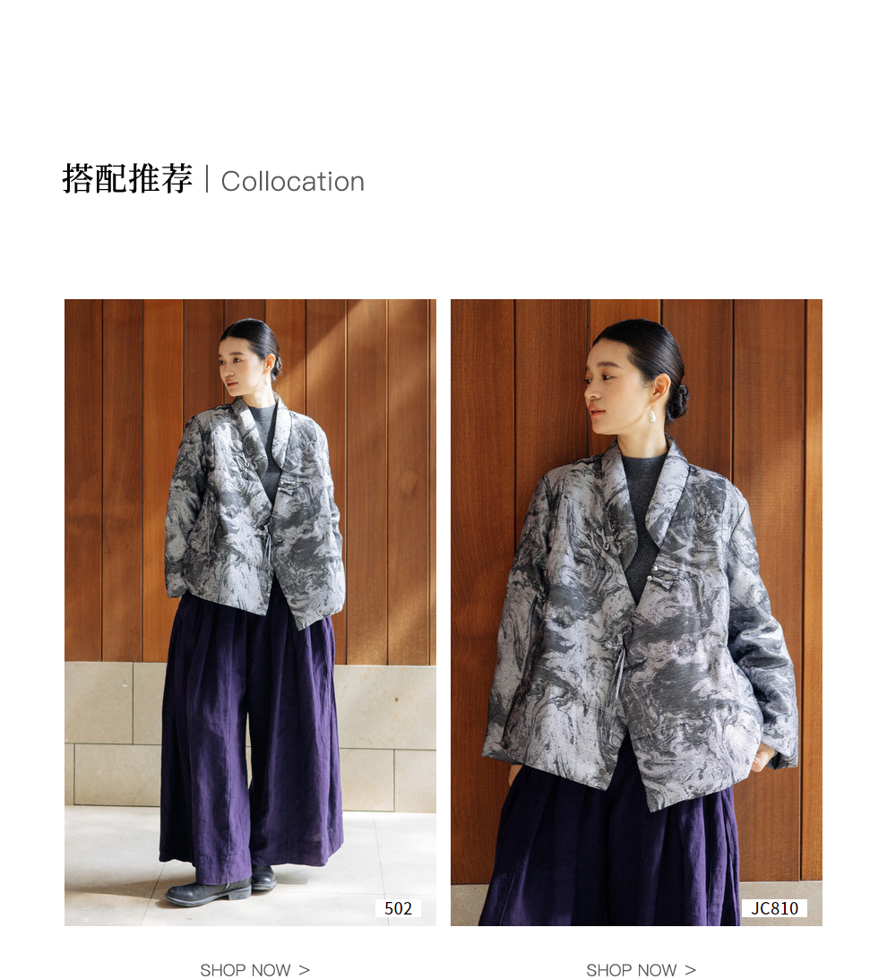 绽放旅行女装866朵/95白鹅绒冬季新中式水墨提花鹅绒短款羽绒服