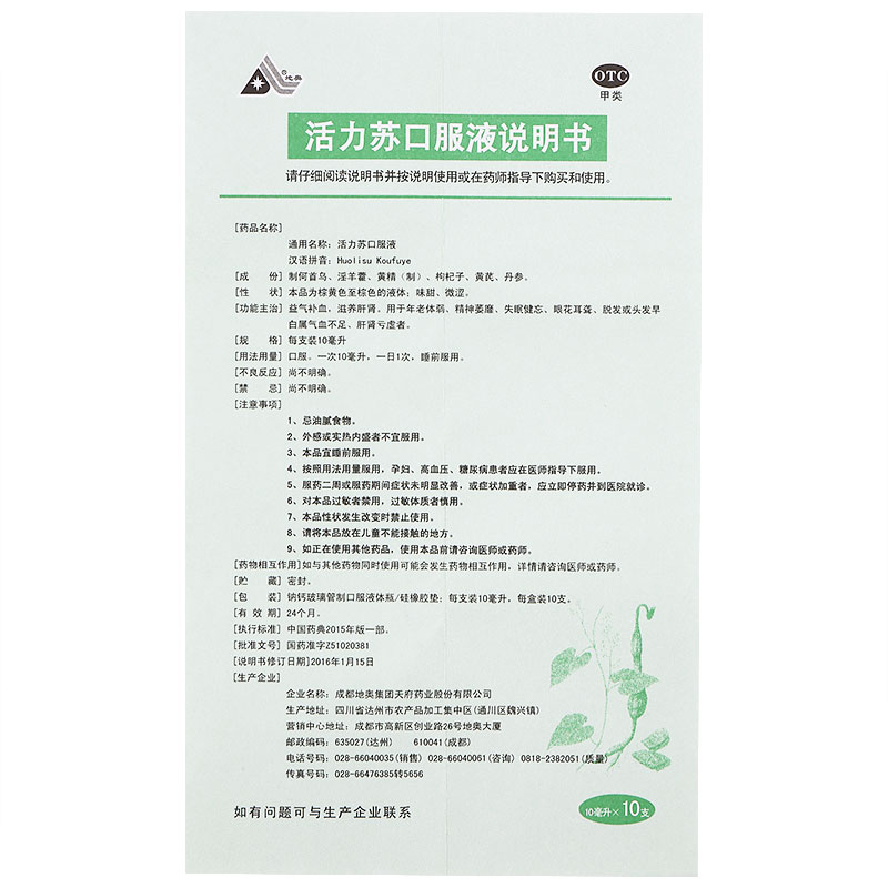 地奥 活力苏口服液10ml*10支/盒 益气补血用年老体弱脱发头发早白