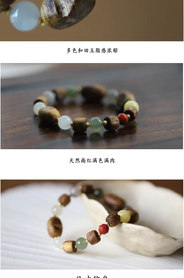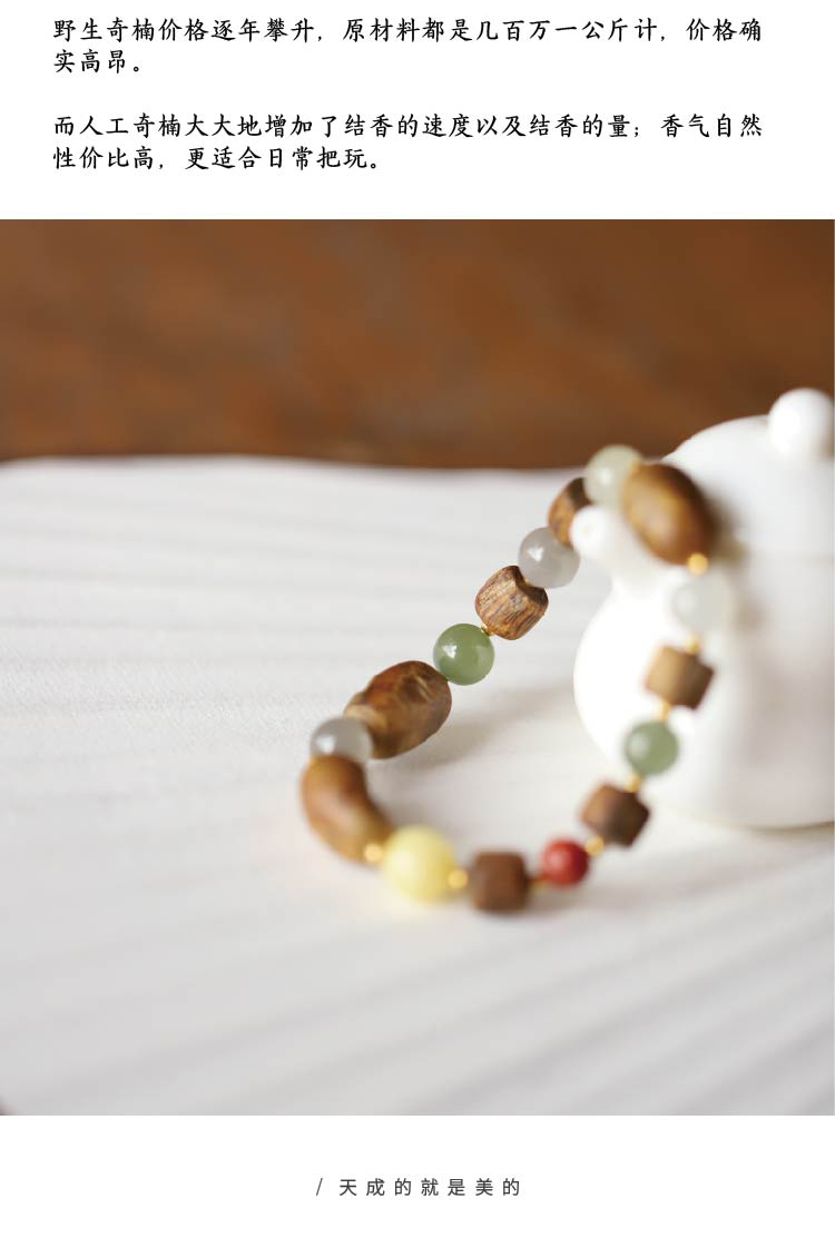米马饰物 18K金天然海南人工种植莺歌绿奇楠沉香 入门精品 多宝手钏