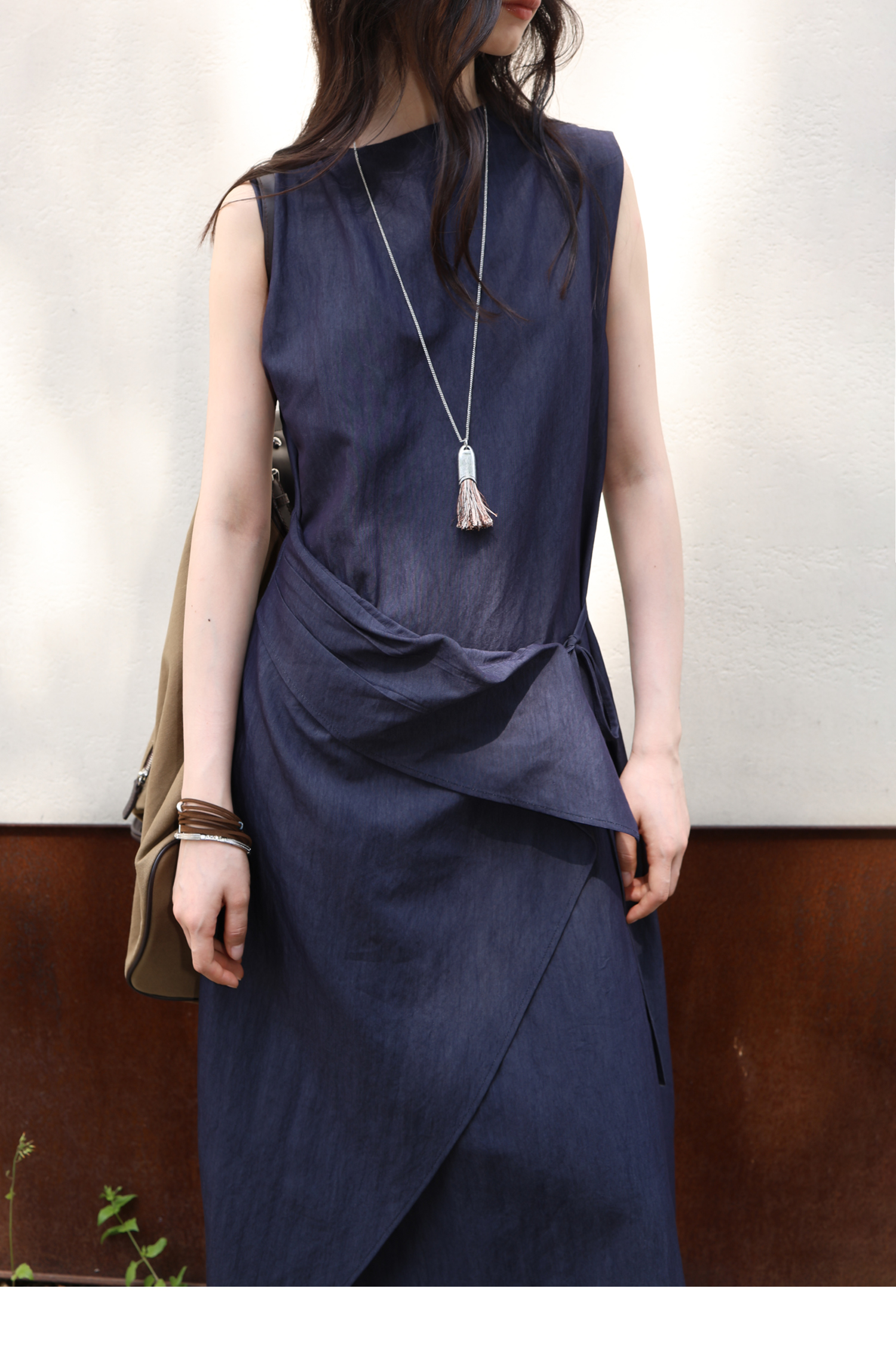 素舶 环保仿牛仔面料舒适透气通勤牛仔蓝搭片无袖背心裙