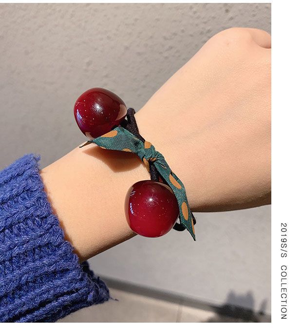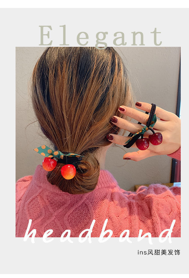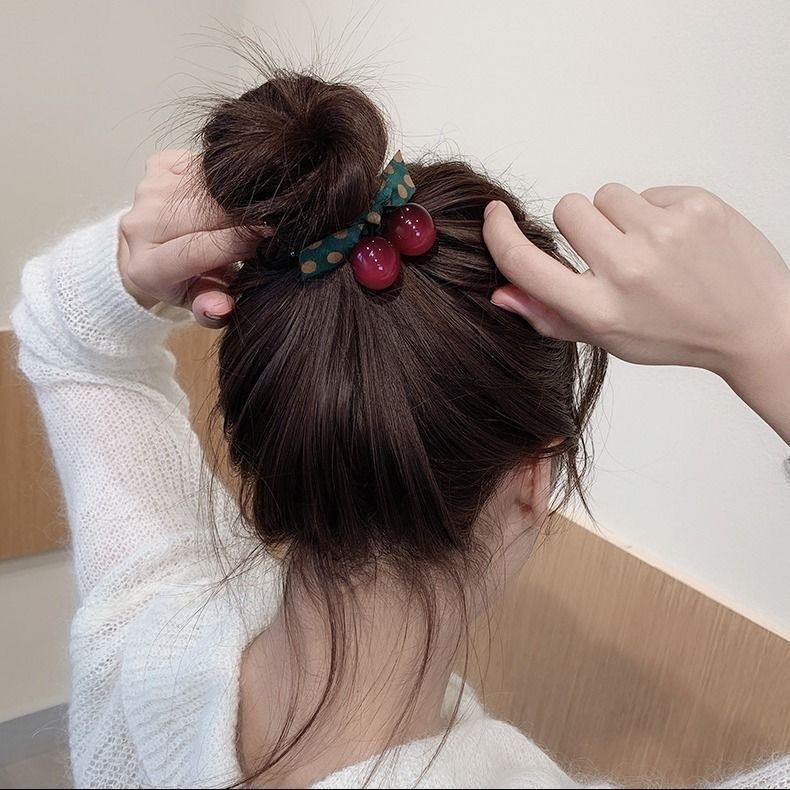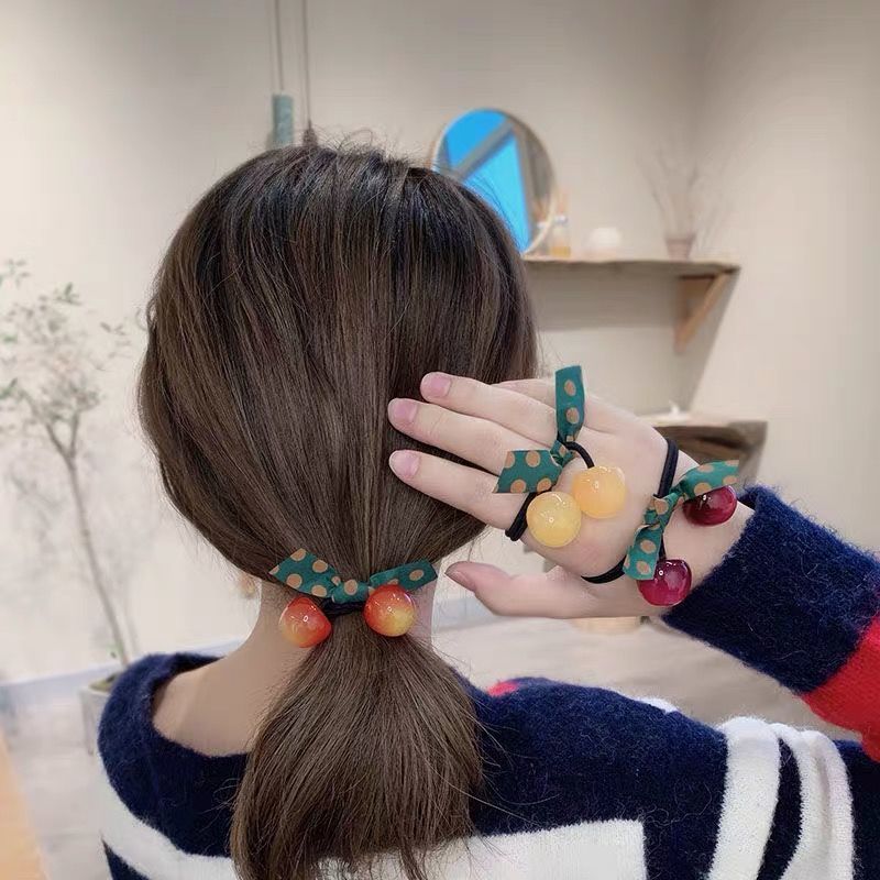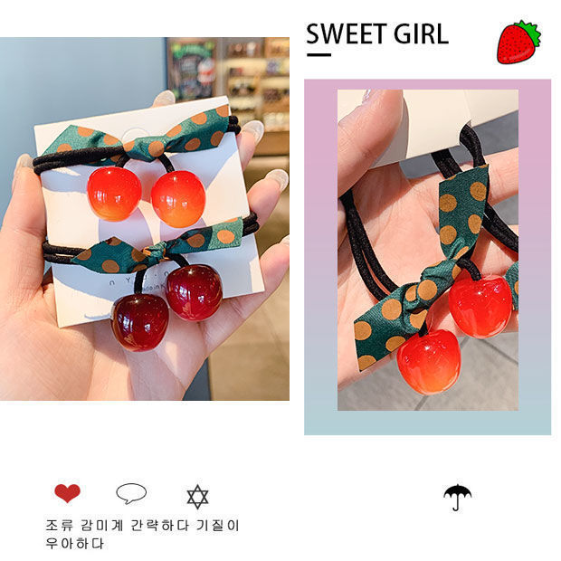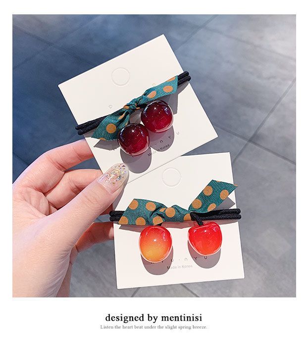 2条 韩版樱桃蝴蝶结头绳扎头发橡皮筋百搭简约发绳气质网红盘发圈发饰
