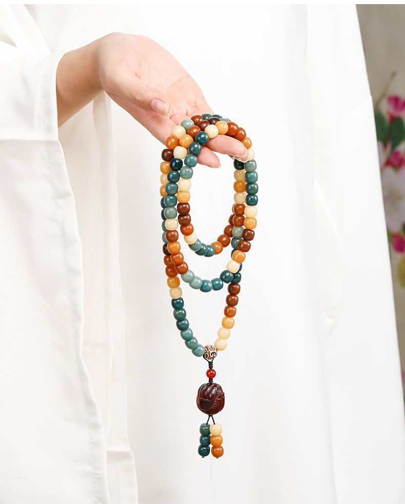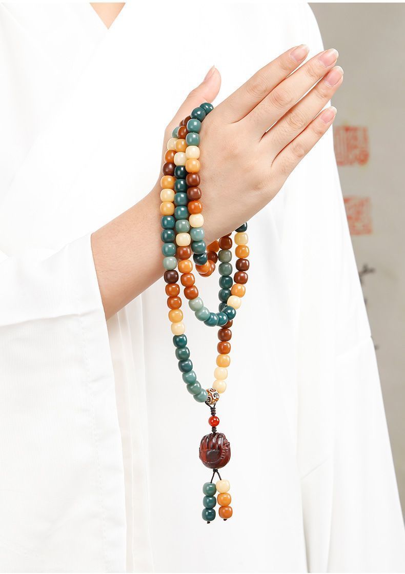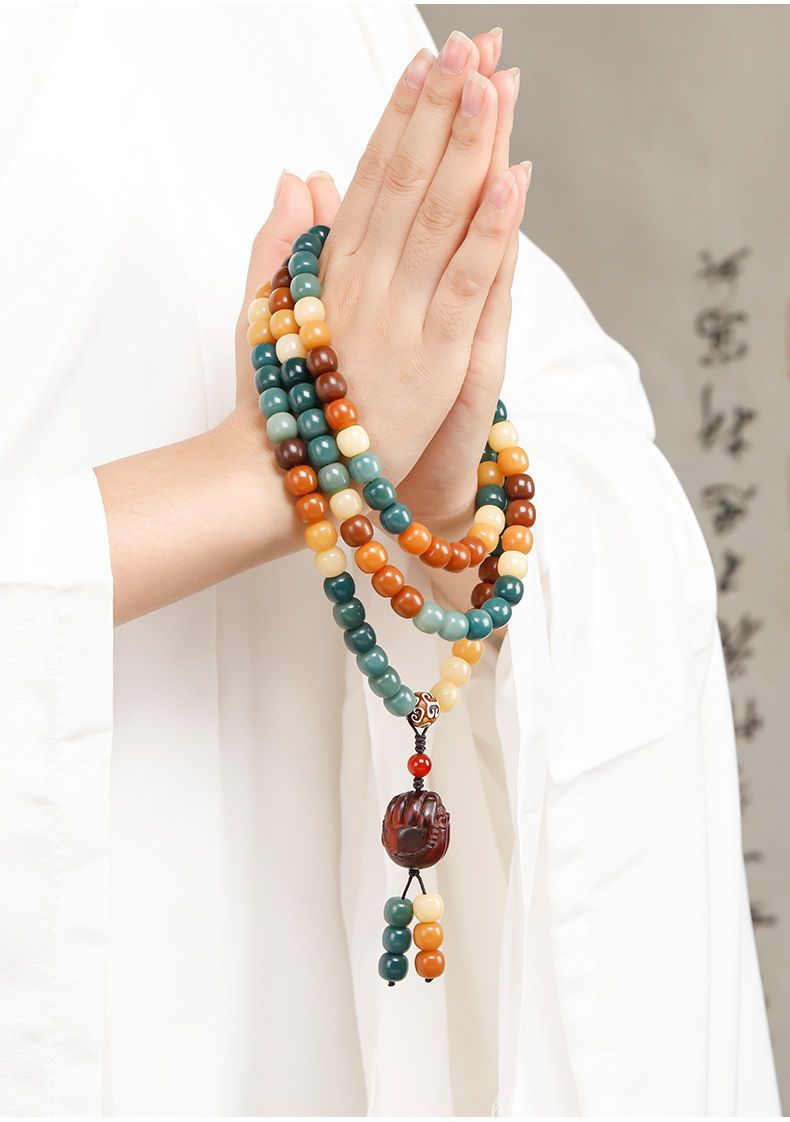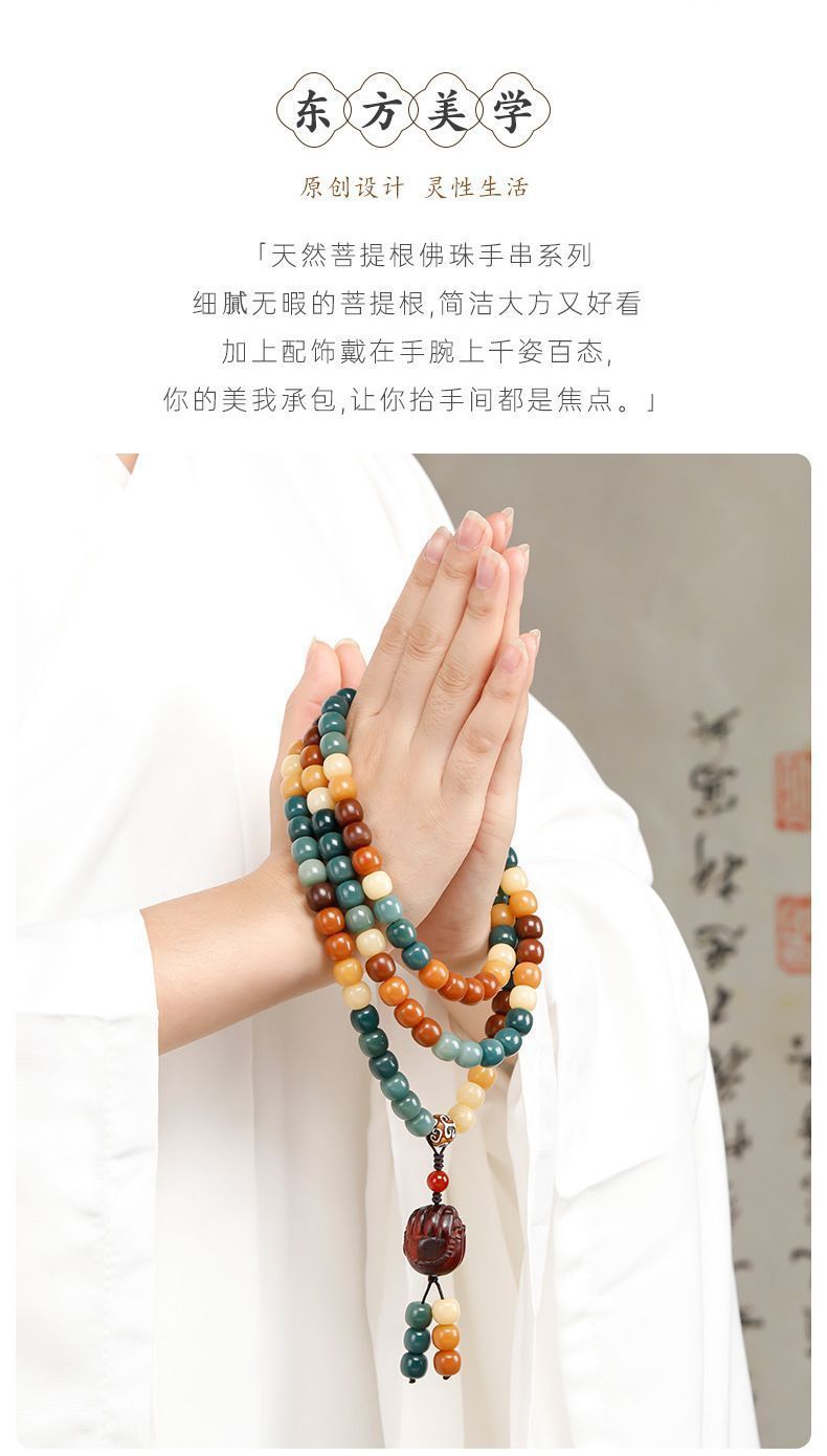 彩色菩提手串七彩菩提根手串108颗手持男文玩盘玩佛珠念珠女手链