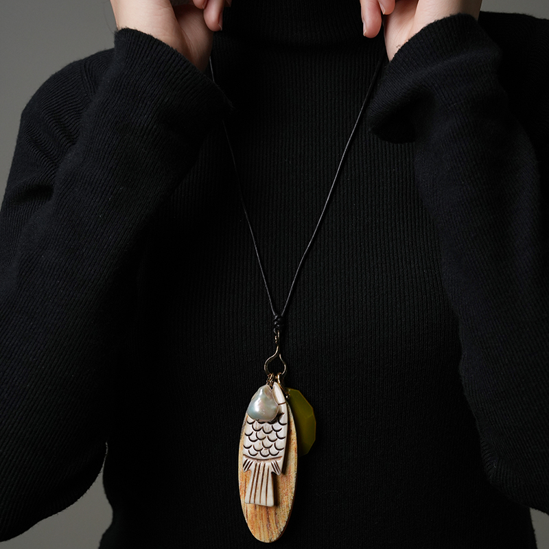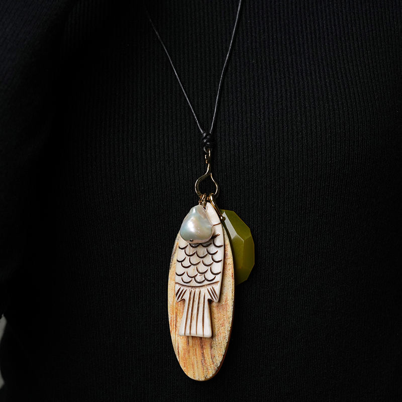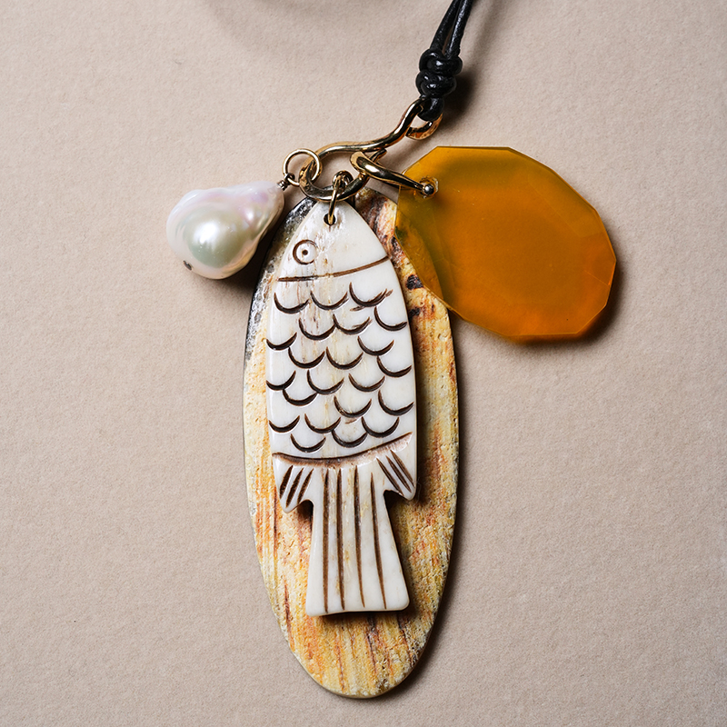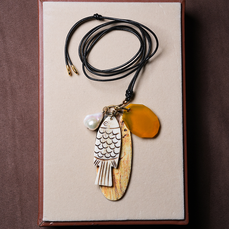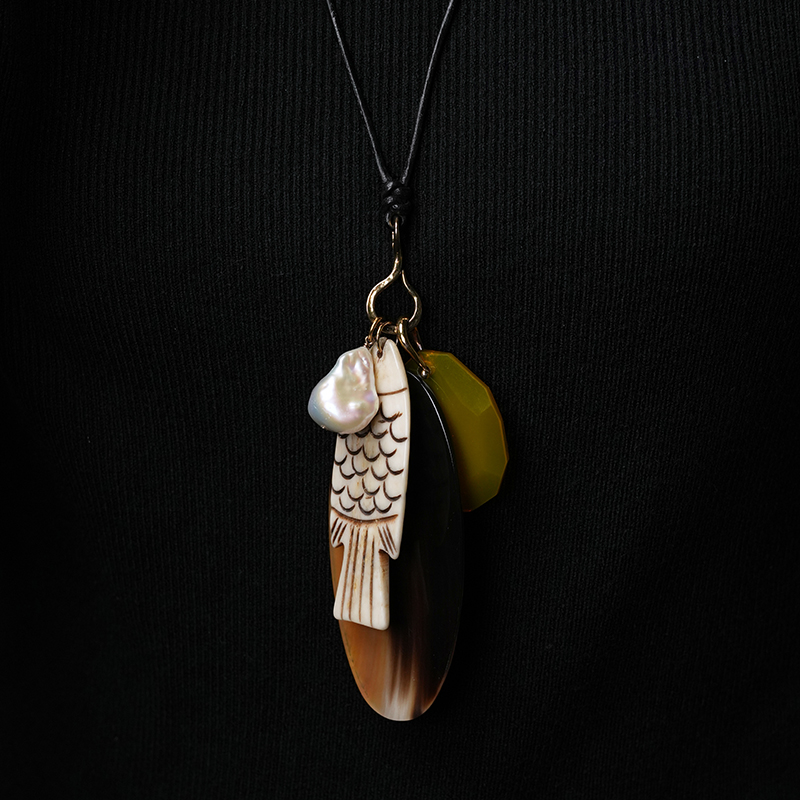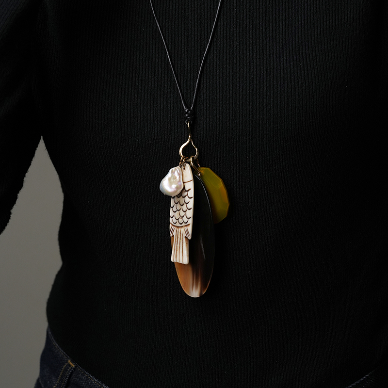 北京仓|Chan Luu-Shoal Charm-雕花骨鱼 多吊坠 长项链[美国设计师]