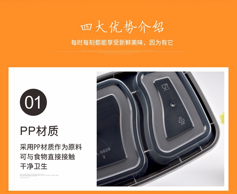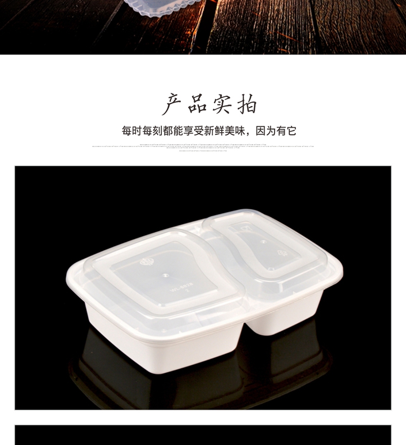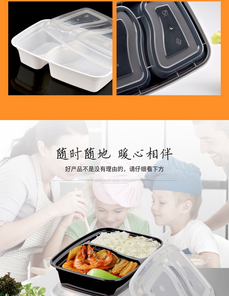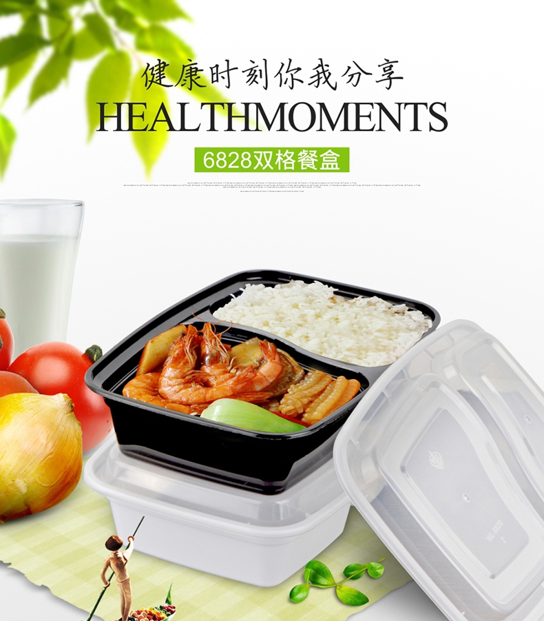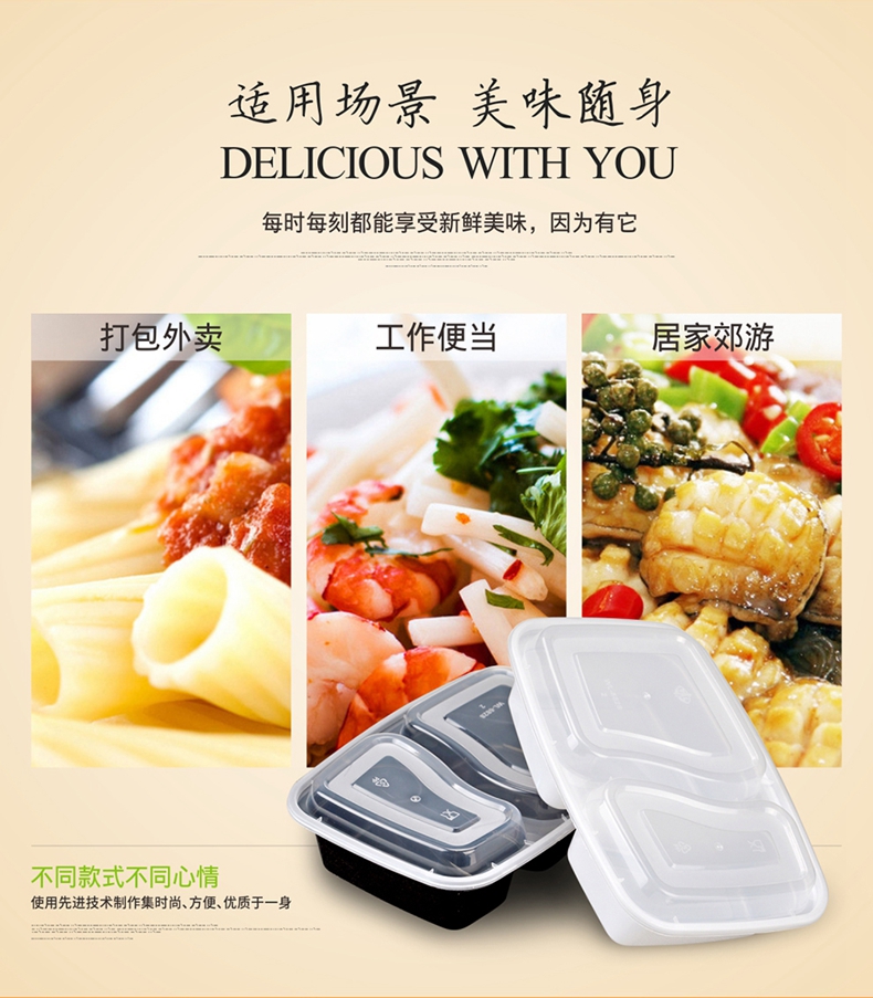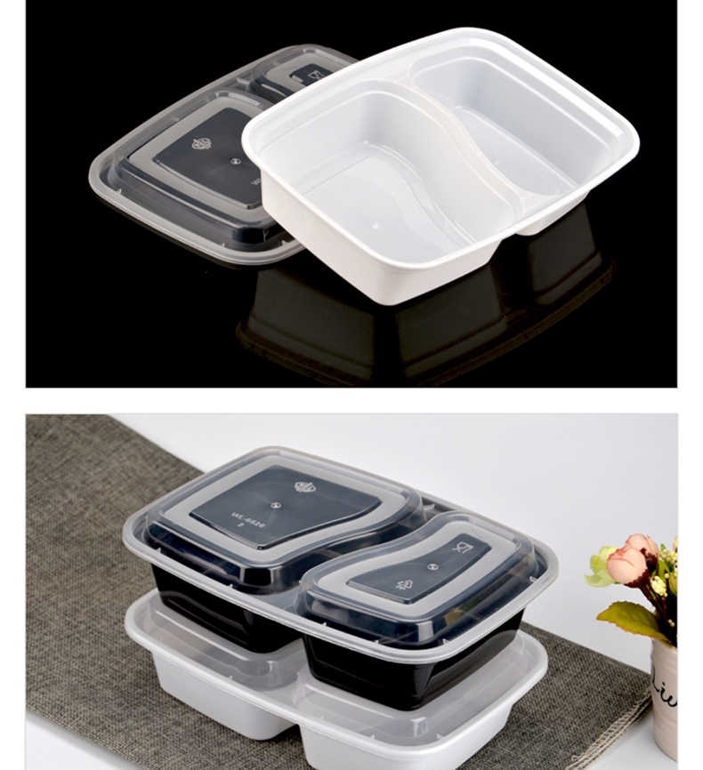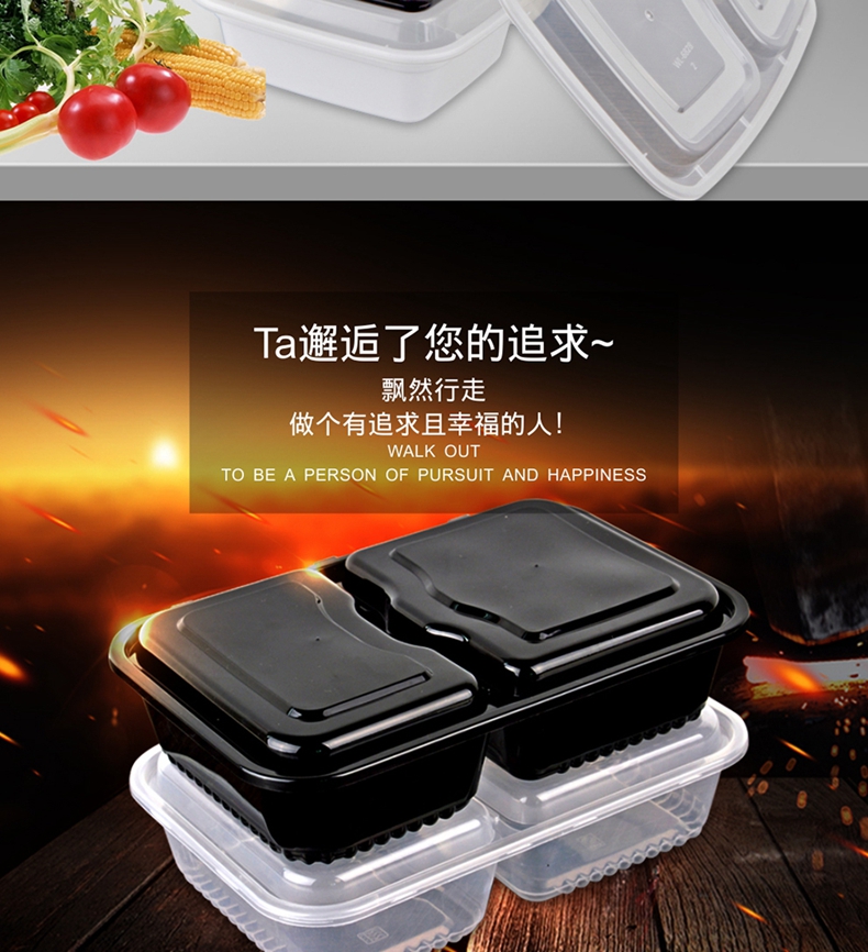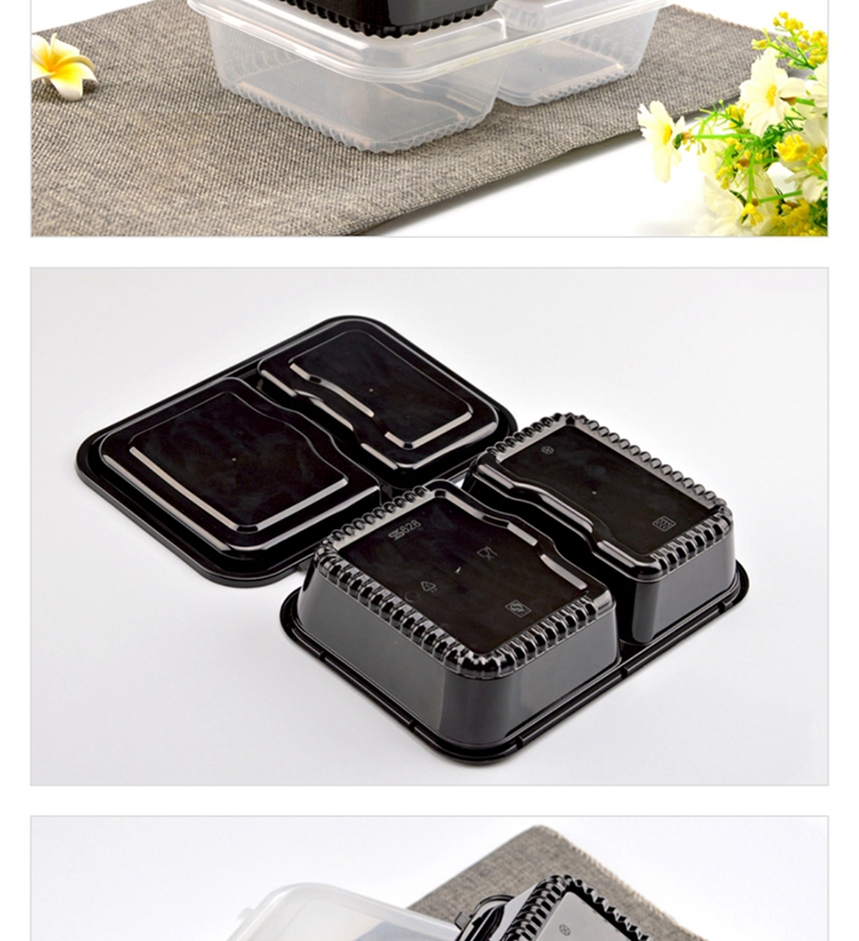 喇叭花1000ml黑色一次性饭盒餐盒双格便当盒两格打包盒带盖150套