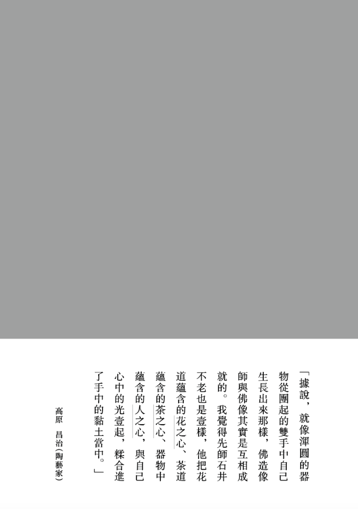 『茶器和心经的结合,于他是自洽的。在不老的手中,捧起的是陶土和信仰共造的形体,传递的是彼时彼刻他生活和生命的况味,他的作品因此有永续的生命力,在器物本身的精妙之上,确然有超越一般工匠的精神力量。』— 顾力