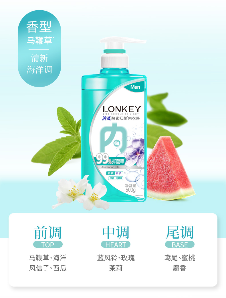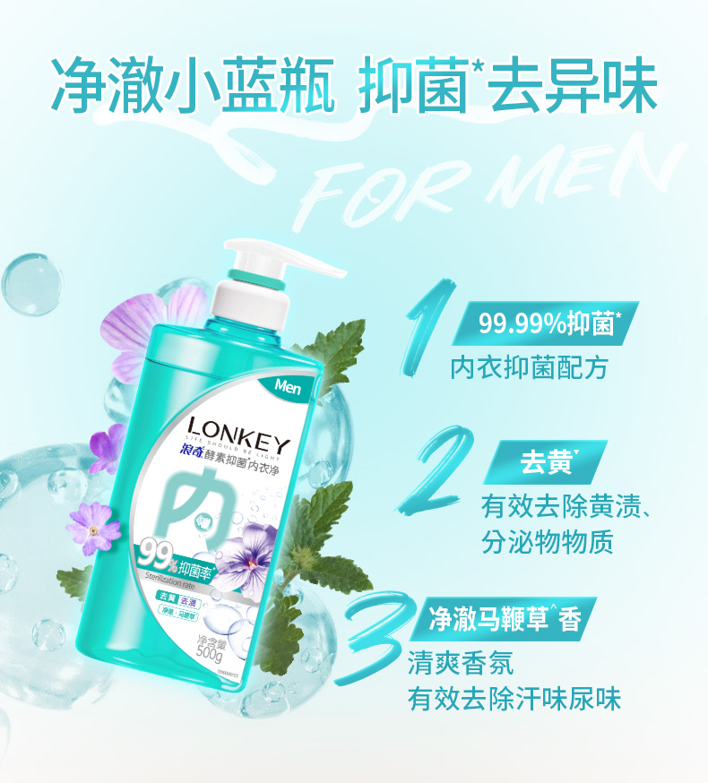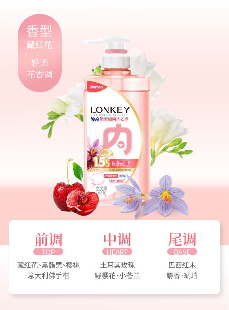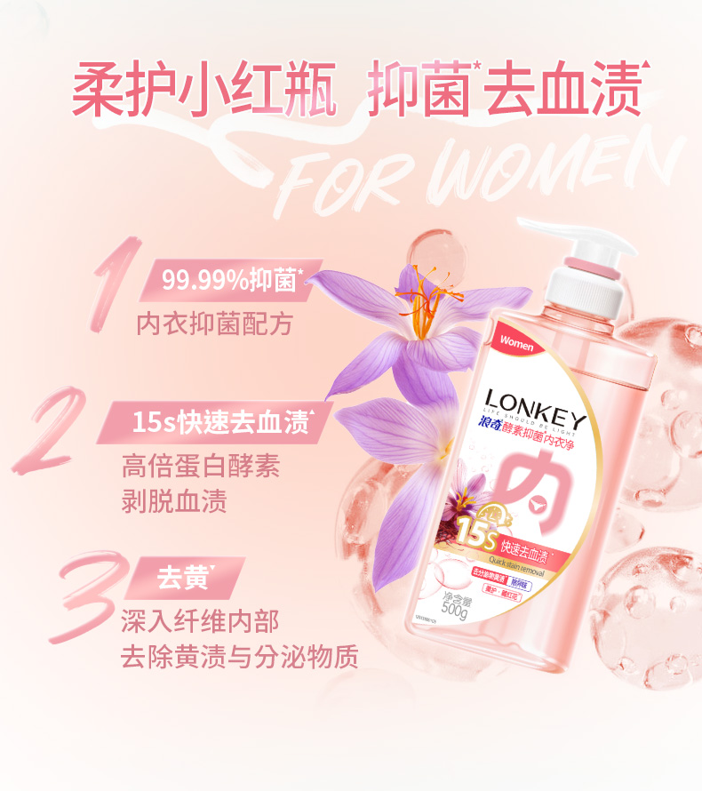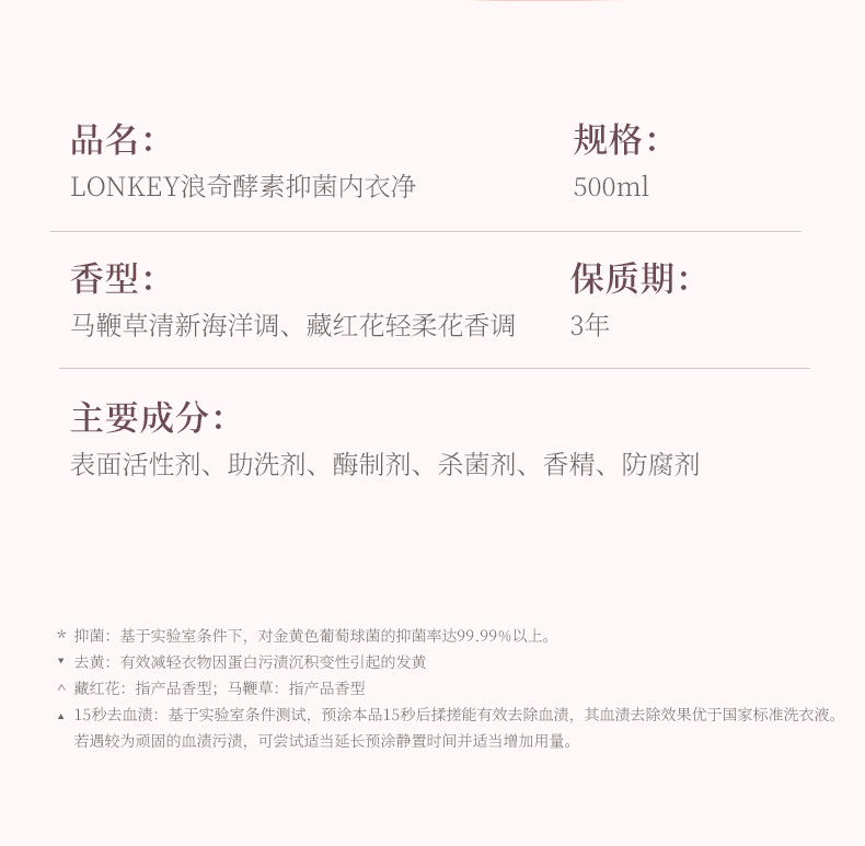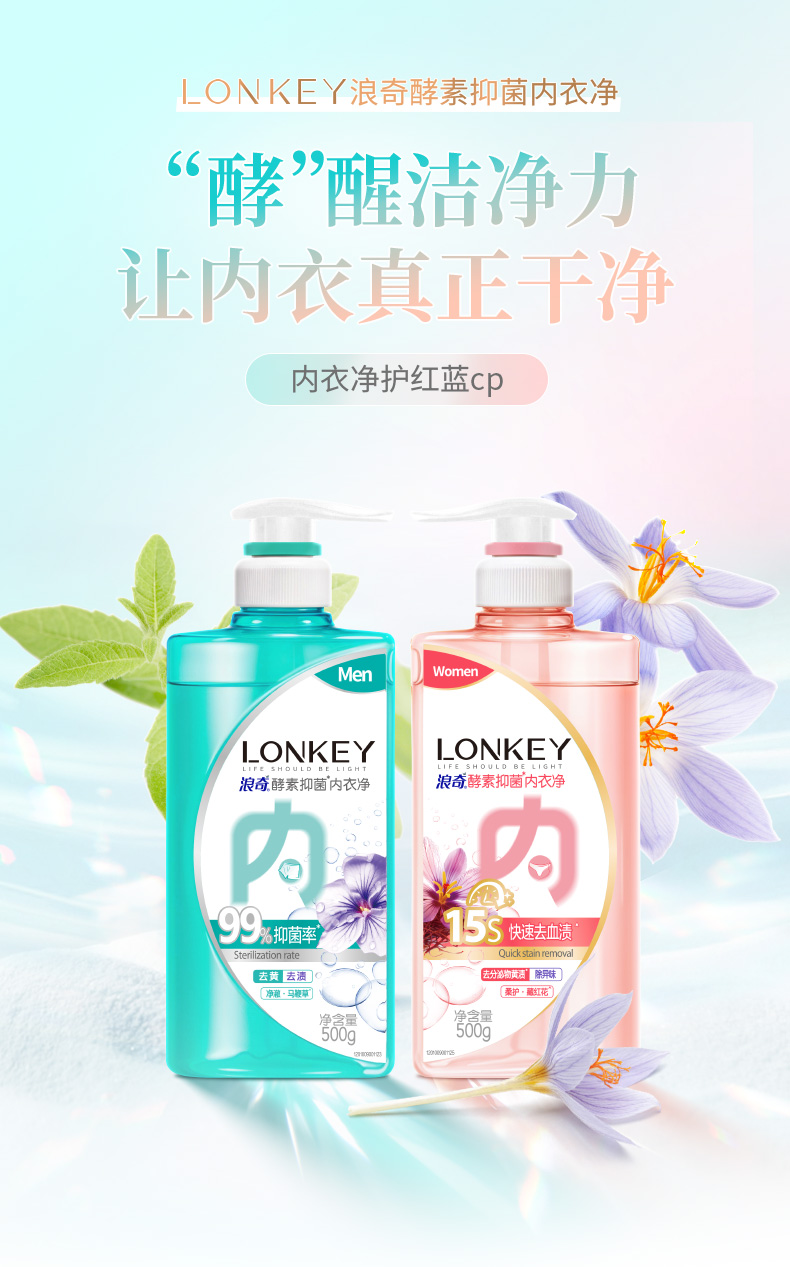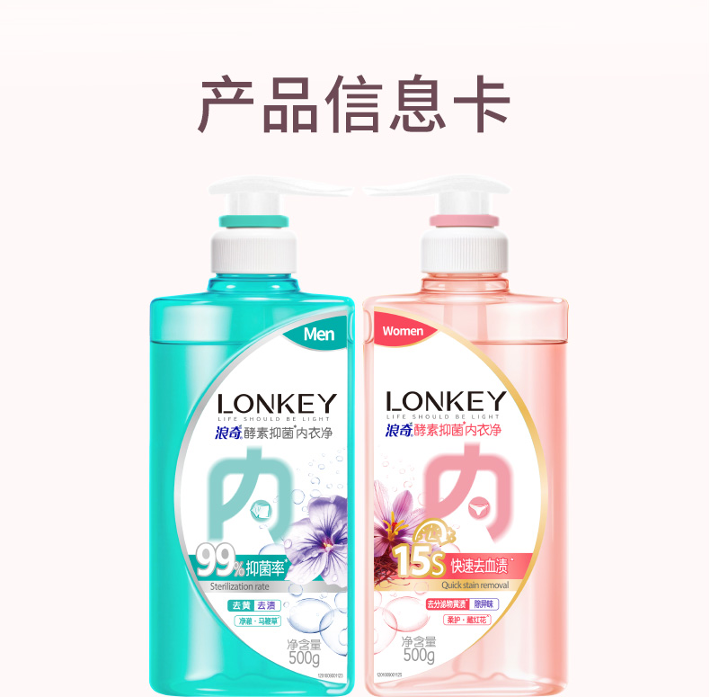 【临期】【浪奇】LONKEY浪奇男女专用内衣裤酵素手洗衣液抑菌去血渍去黄500G*2瓶装有效期:20270725