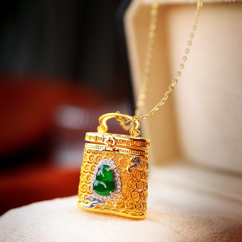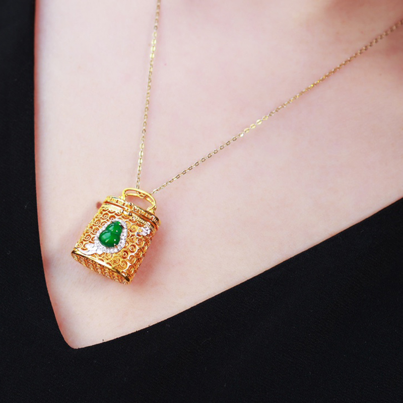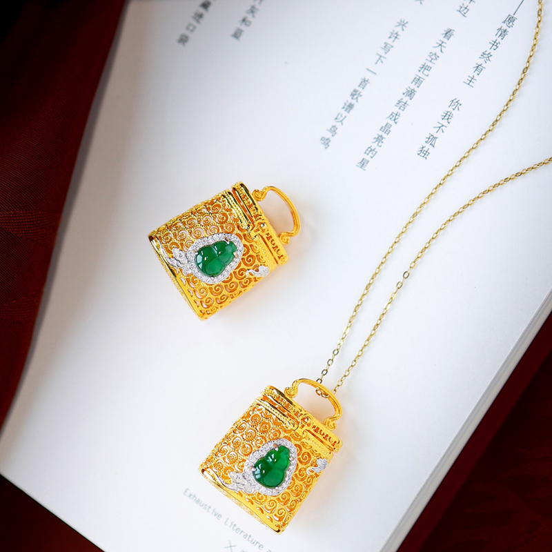 中式珠宝|翡翠葫芦花丝香囊