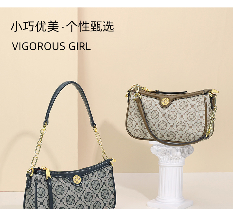【预售3天】包包女新款潮2025复古老花腋下包高级感法棍包小众女士链条单肩包L6072