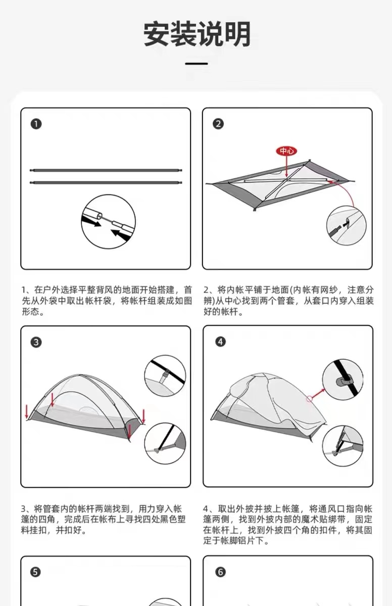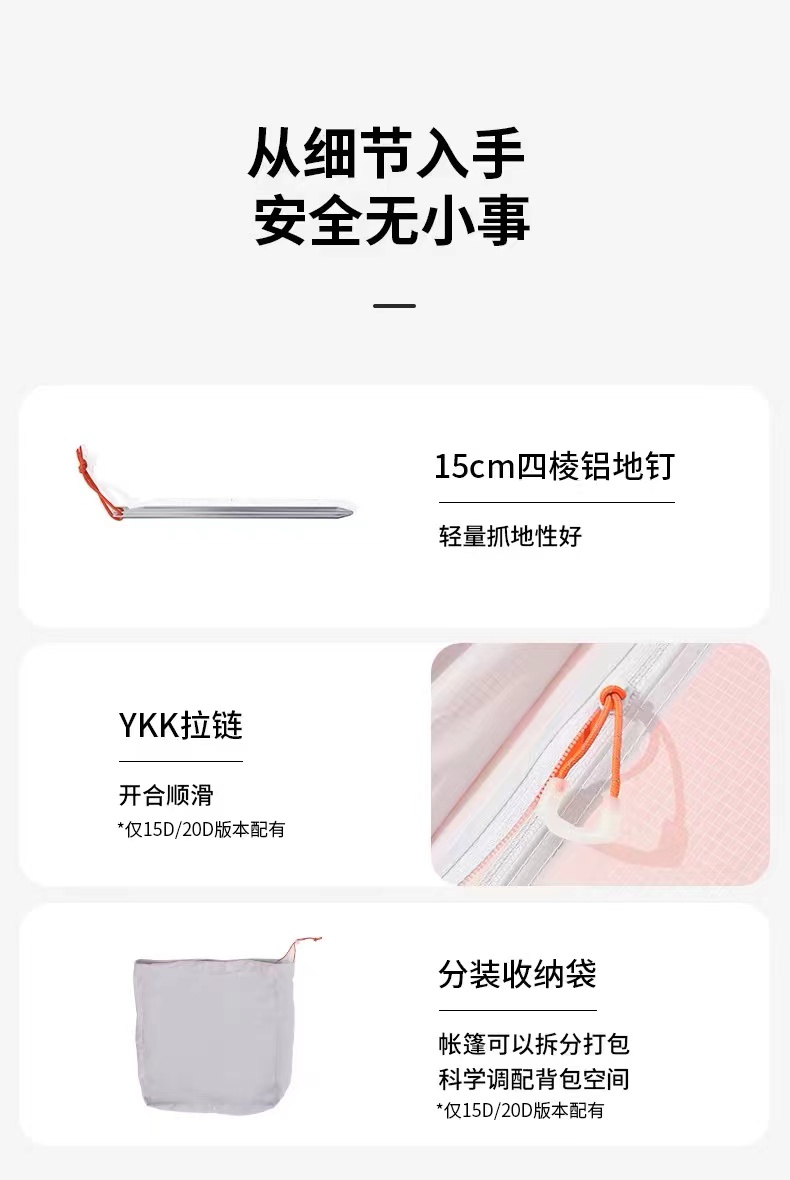 以下是露营套餐内超轻帐篷的详细说明: