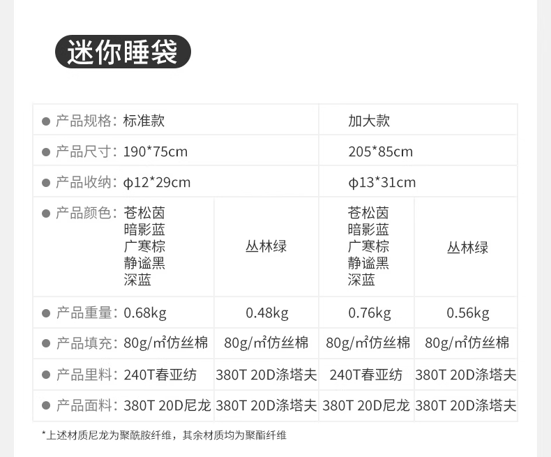 以下是套餐内丝棉睡袋详细说