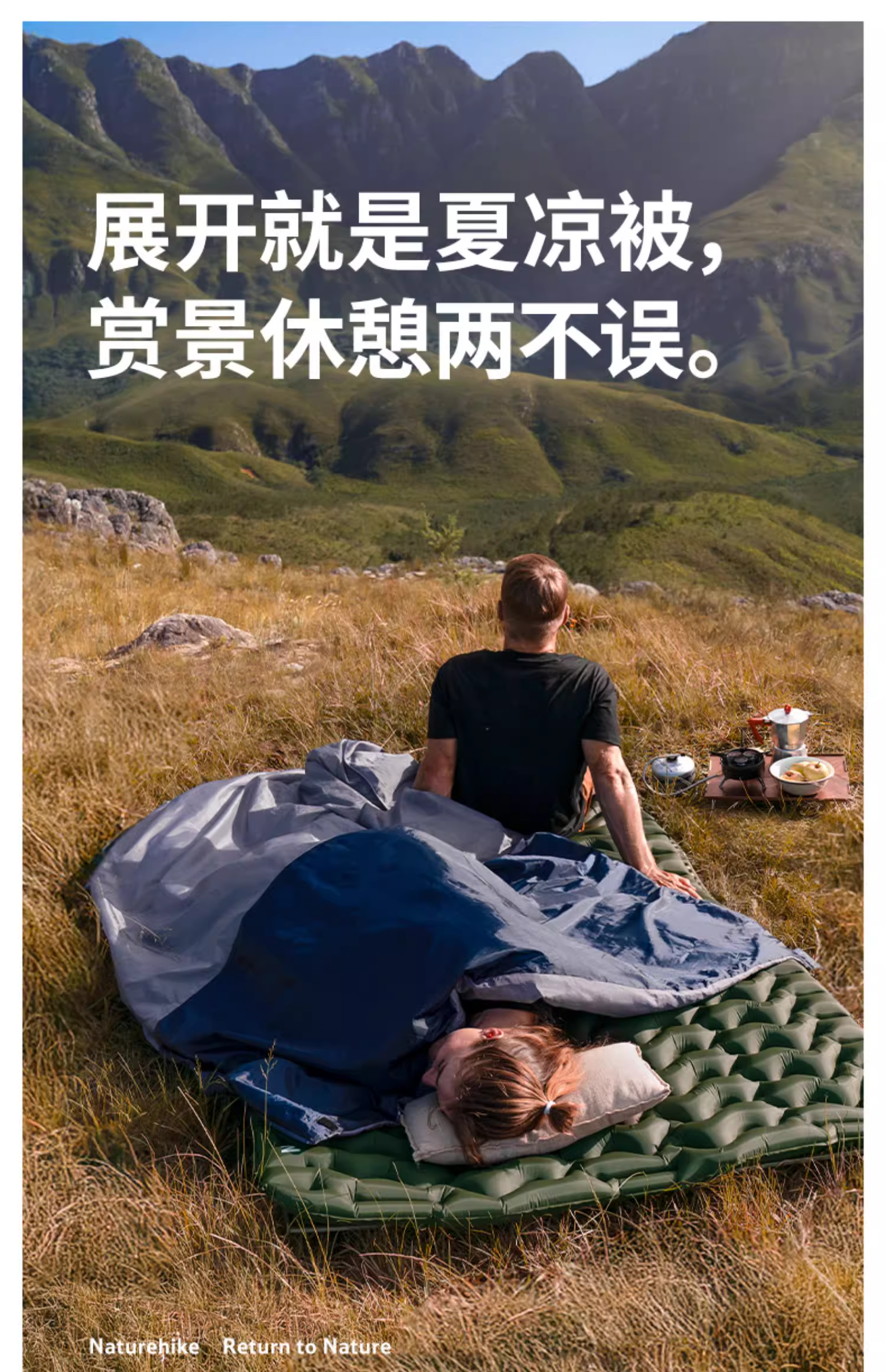普通版 小鹰露营套餐 双人、三人超轻帐篷+双人充气垫+丝棉睡袋 赠送地席