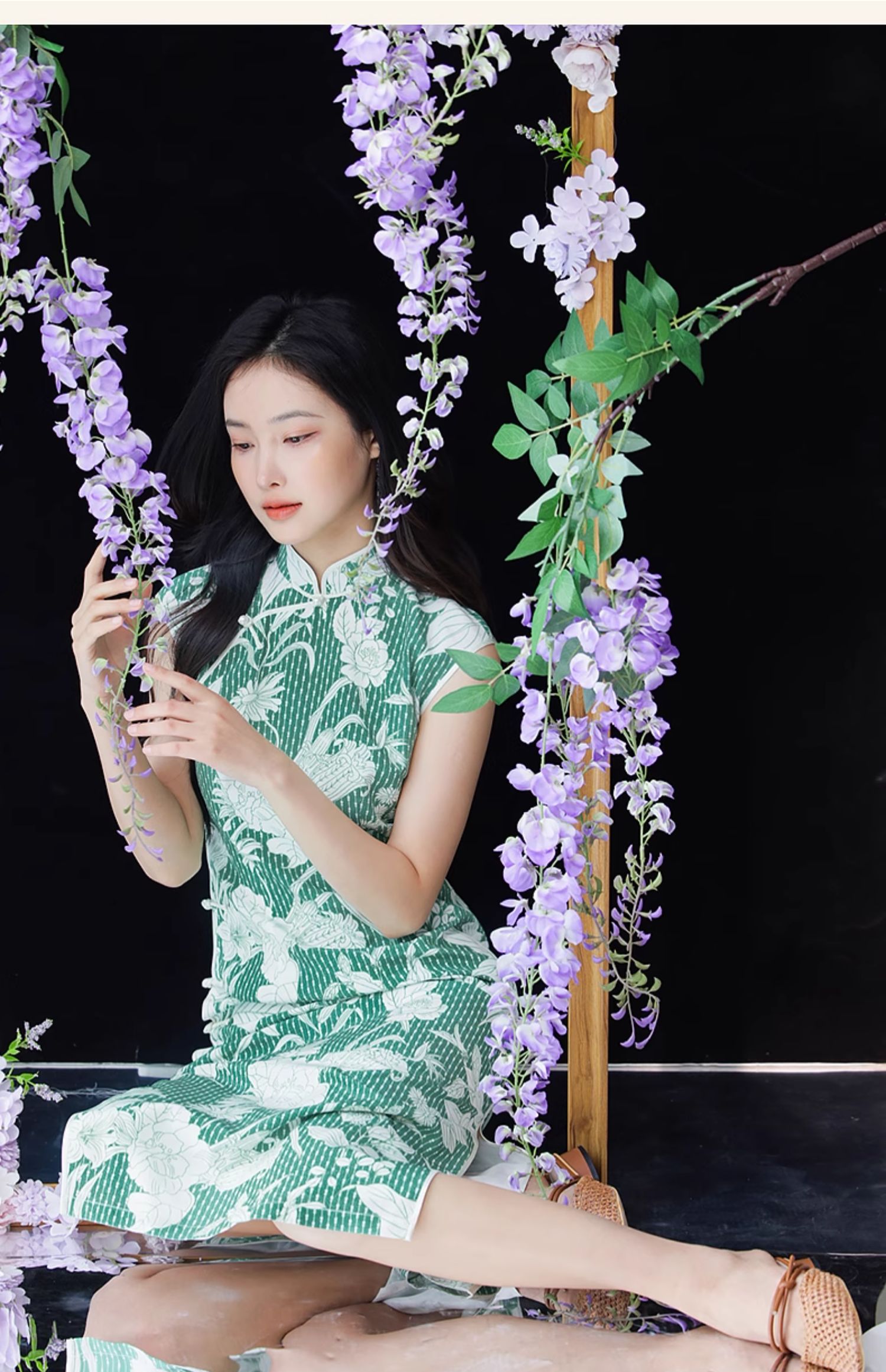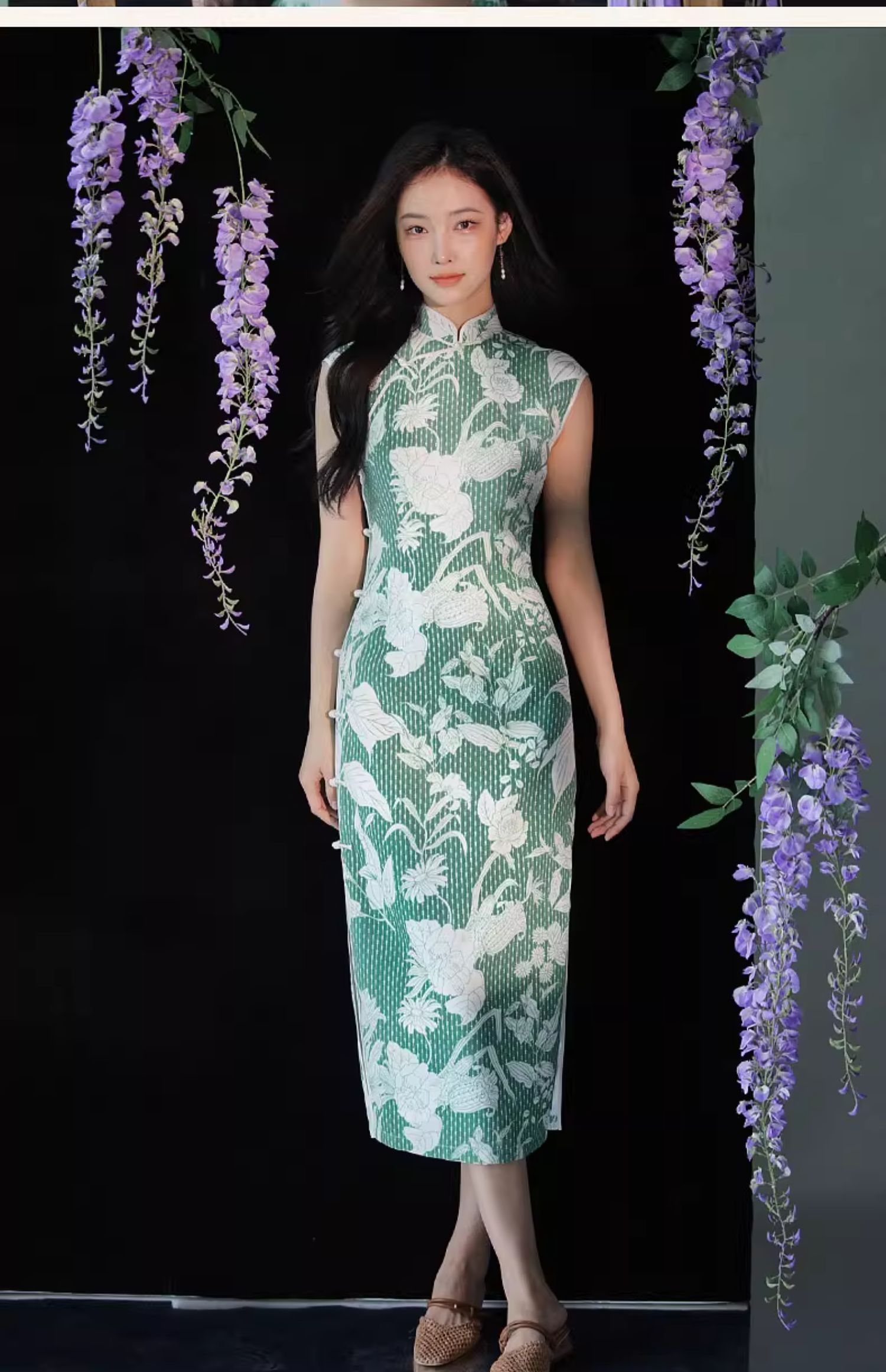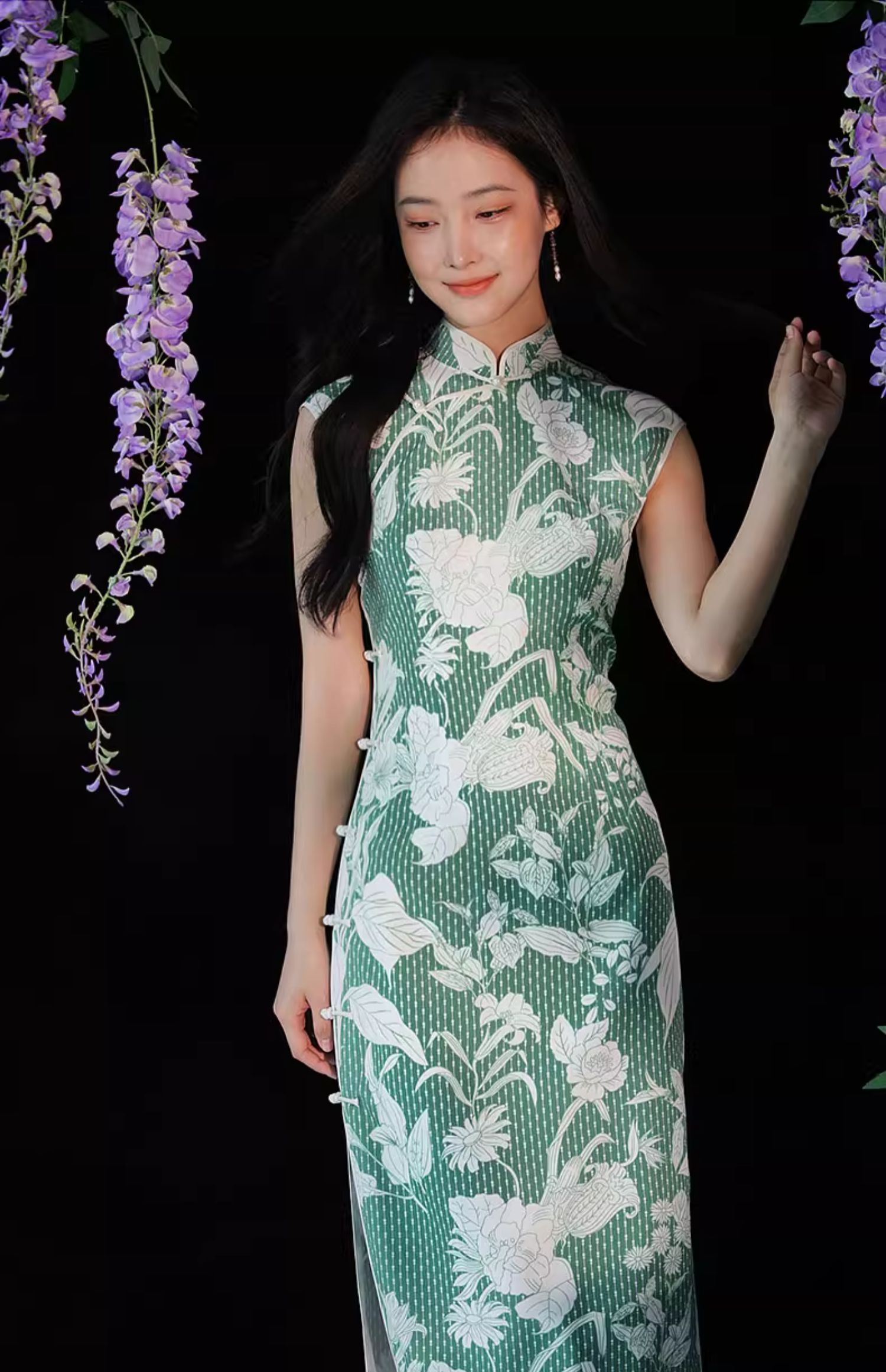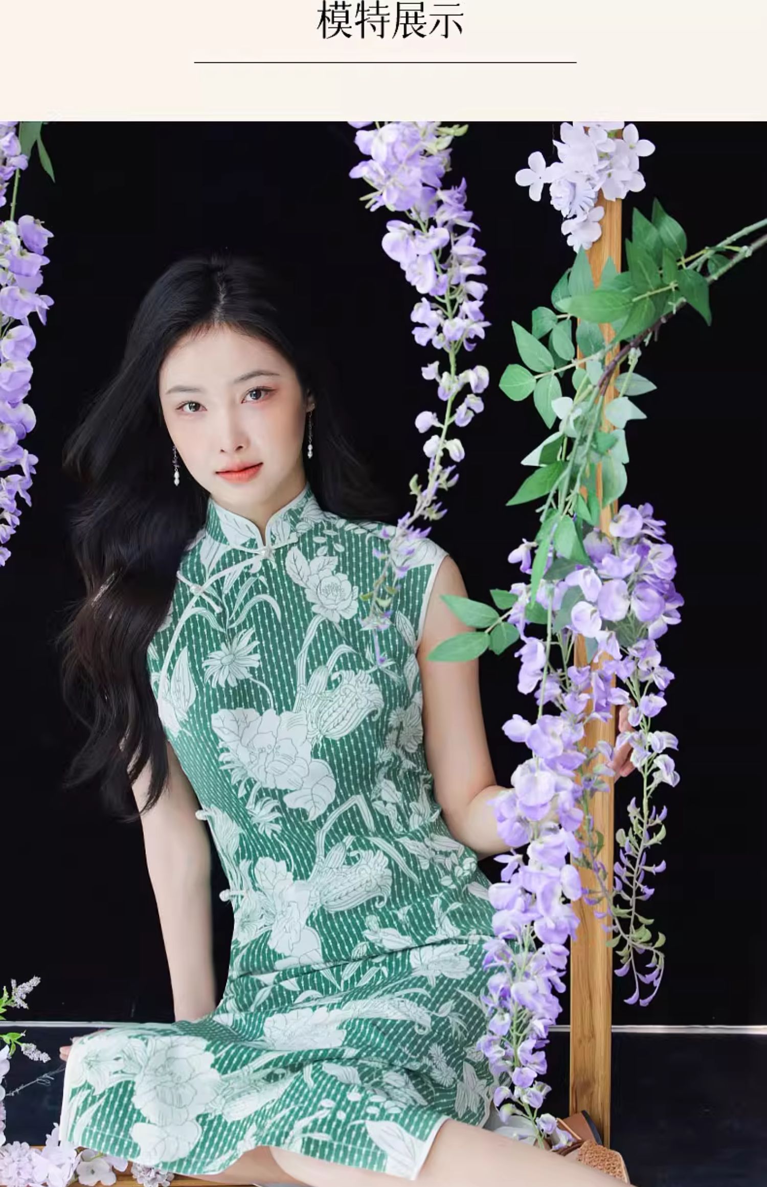 逸红颜寄梦2025夏新款清新优雅轻盈薄感真丝复古修身显瘦改良旗袍