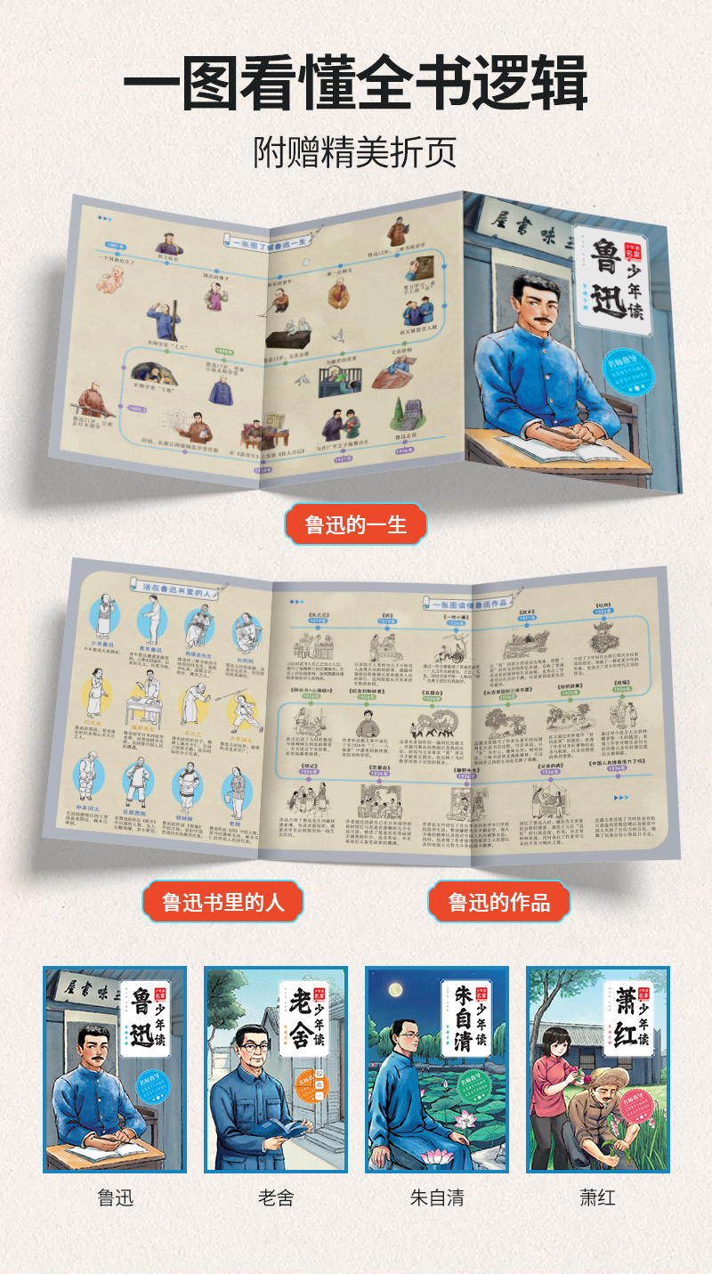 【青葫芦】【暑期阅读】少年读名家共5册 少年读鲁迅萧红朱自清老舍 7-12岁小学课外阅读