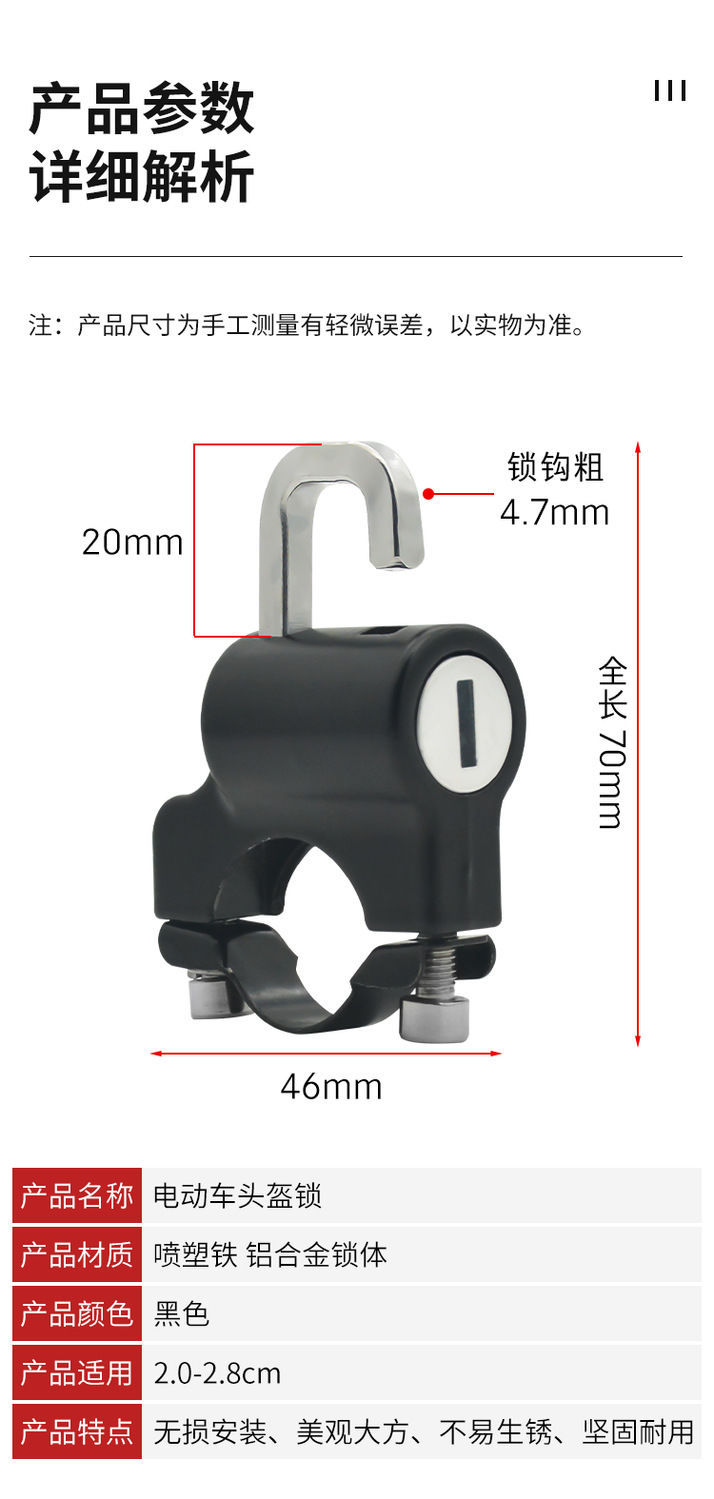 防盗头盔锁 多功能电动车锁 电瓶车锁 固定挂钩钥匙锁