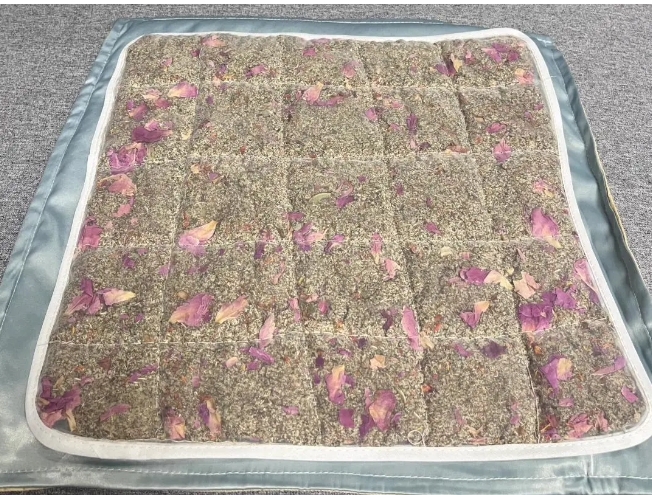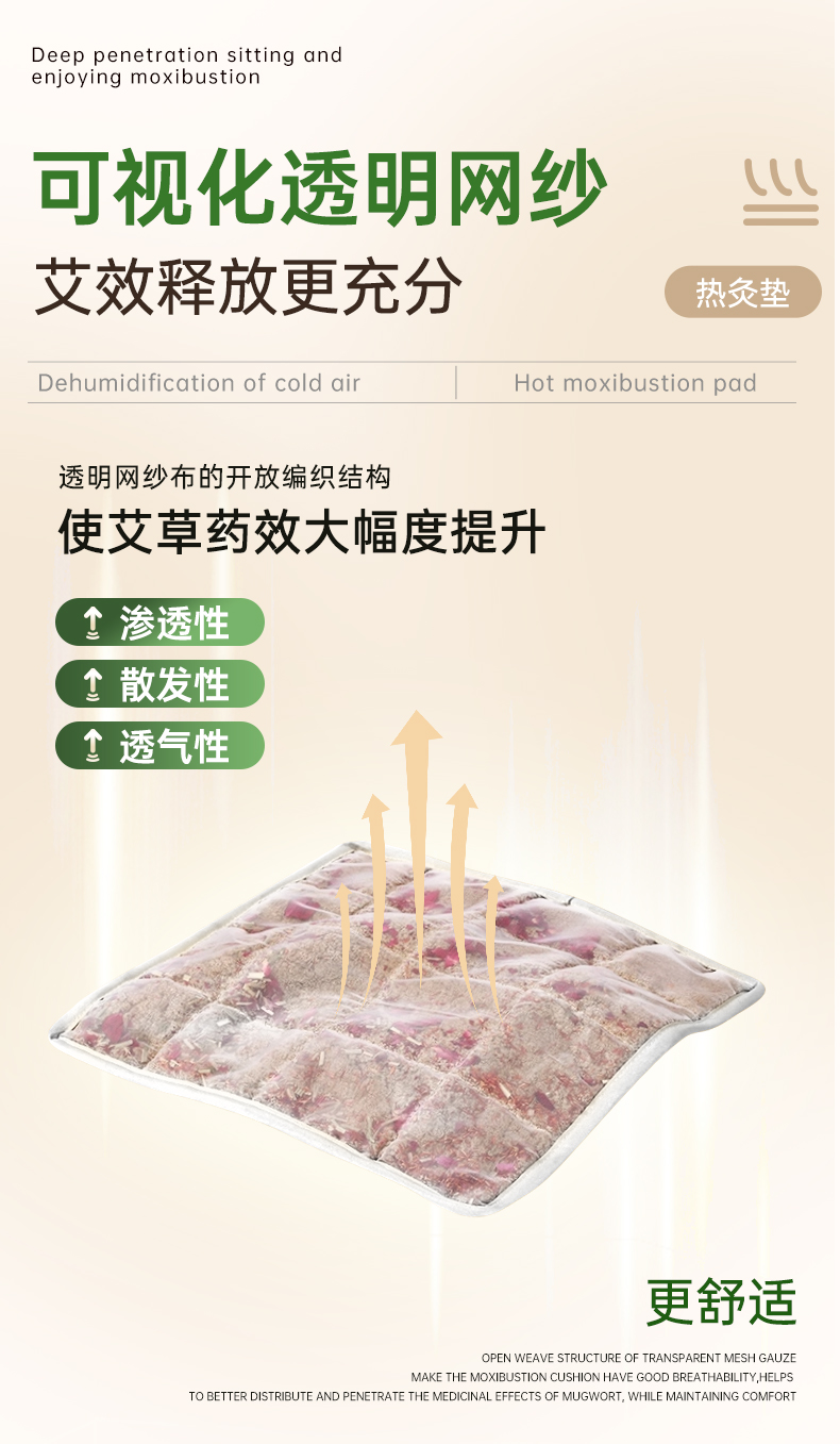 坐垫内里填充的是艾绒,拿到手就能闻到淡淡的艾草香味。
