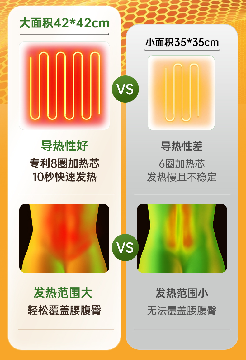 8圈加热芯,大面积铺开,让它瞬间就能热起来。踩在脚下,凉脚一会就暖起来。