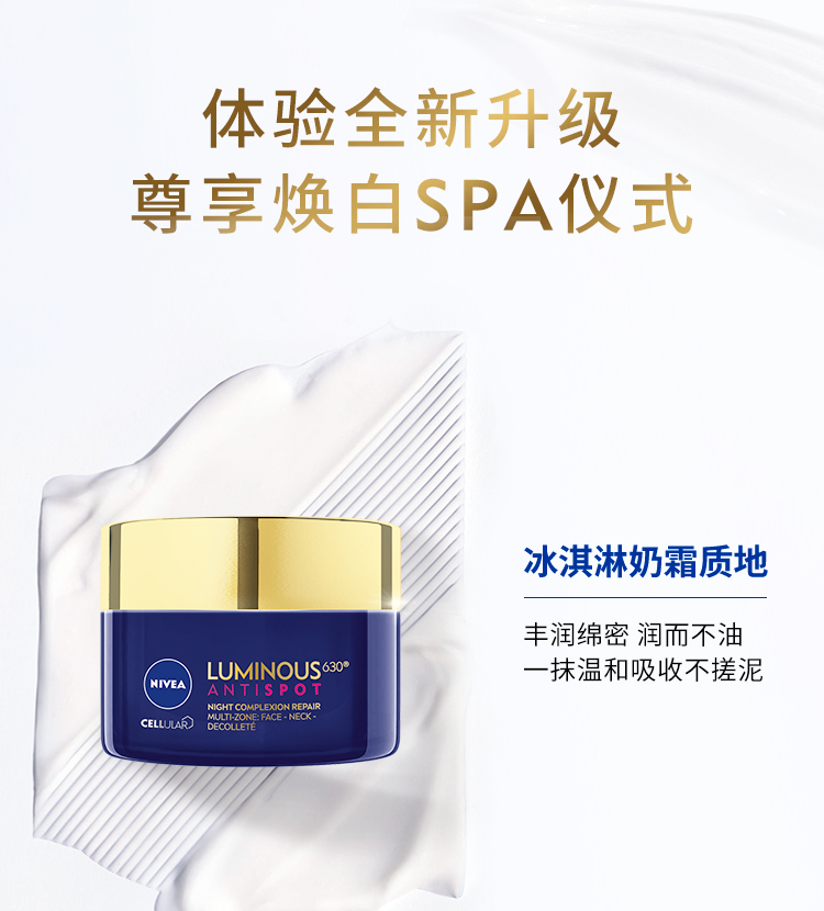 【面霜 保税发货】NIVEA妮维雅LUMINOUS630淡斑焕白修护面霜 50ml/罐