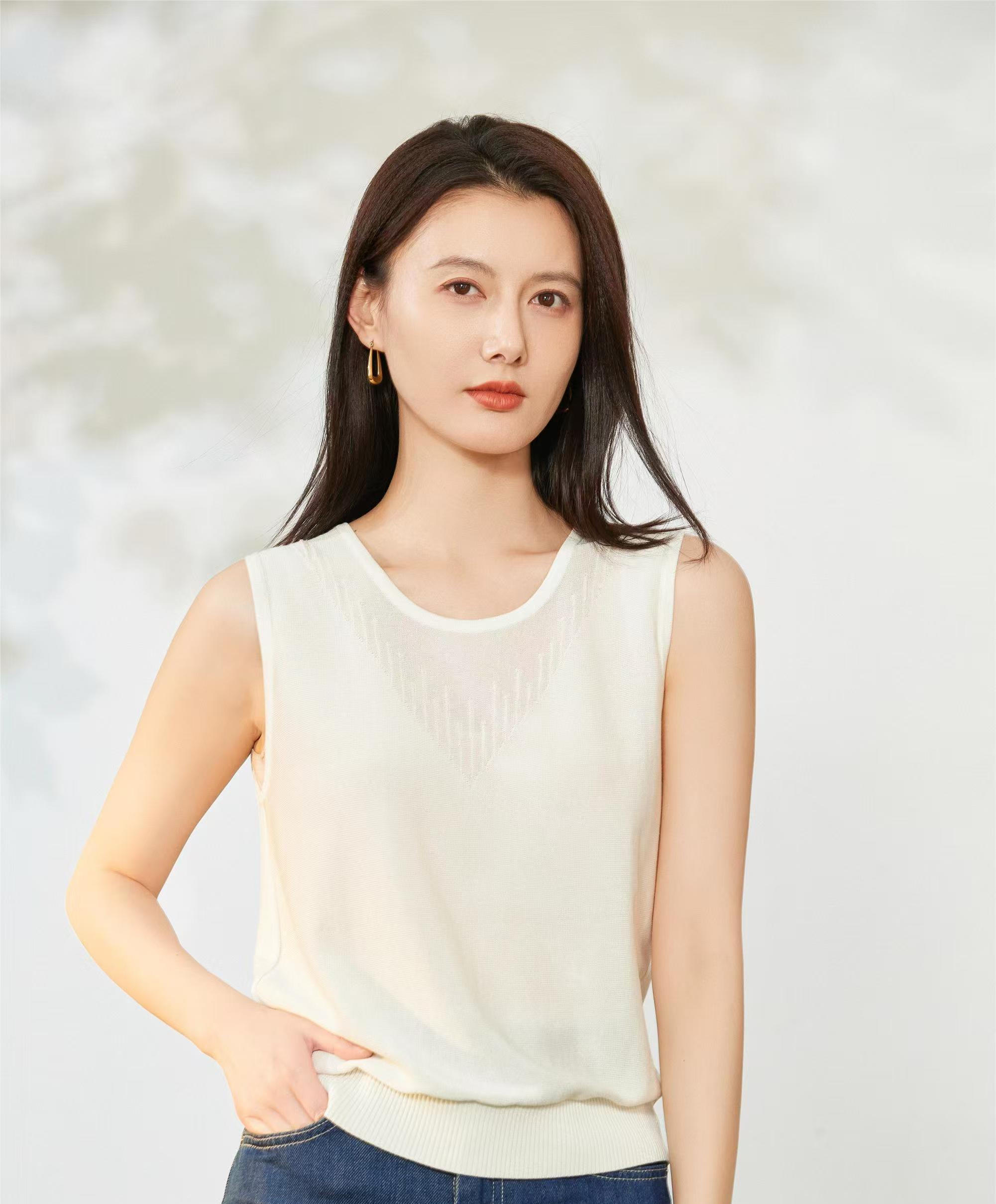 伯妮斯茵 | 简约通勤风 白色圆领无袖针织背心 春夏内搭外穿透气上衣 HJ3E02