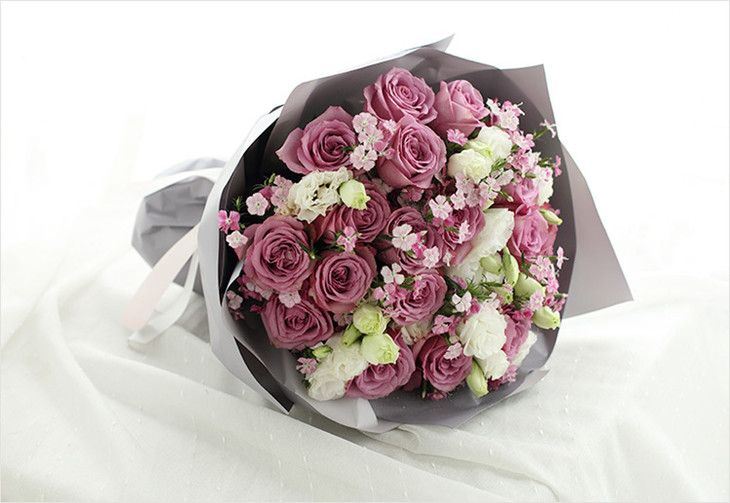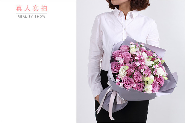 冷美人紫玫瑰19枝、搭配,白洋桔梗,相思梅