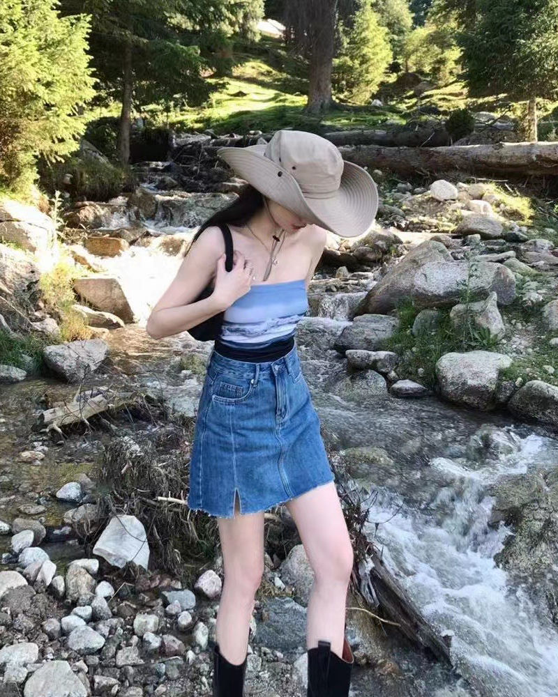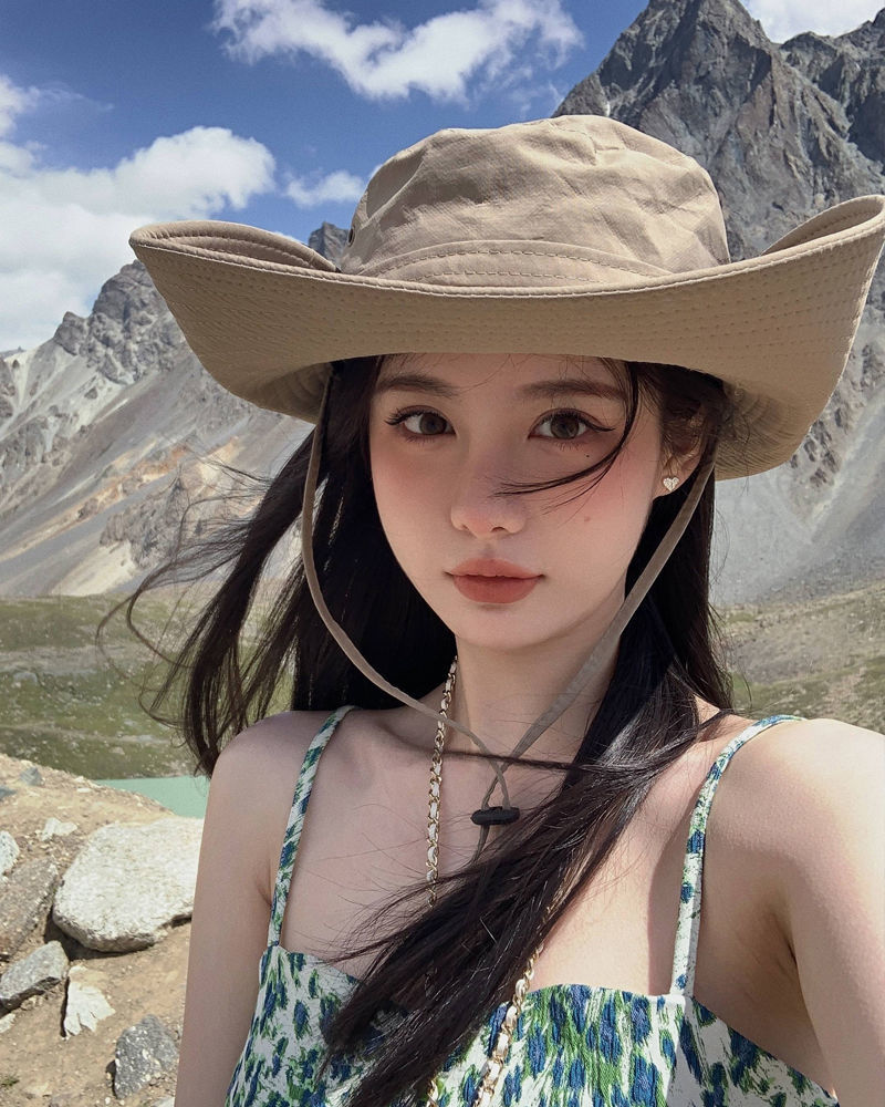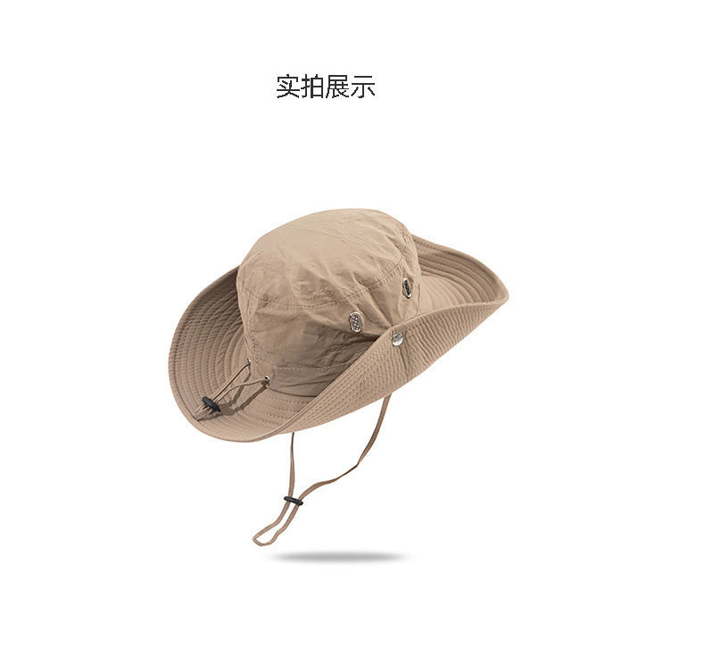 日系潮牌抽绳渔夫帽子男女夏季透气防晒户外登山钓鱼帽西部牛仔帽